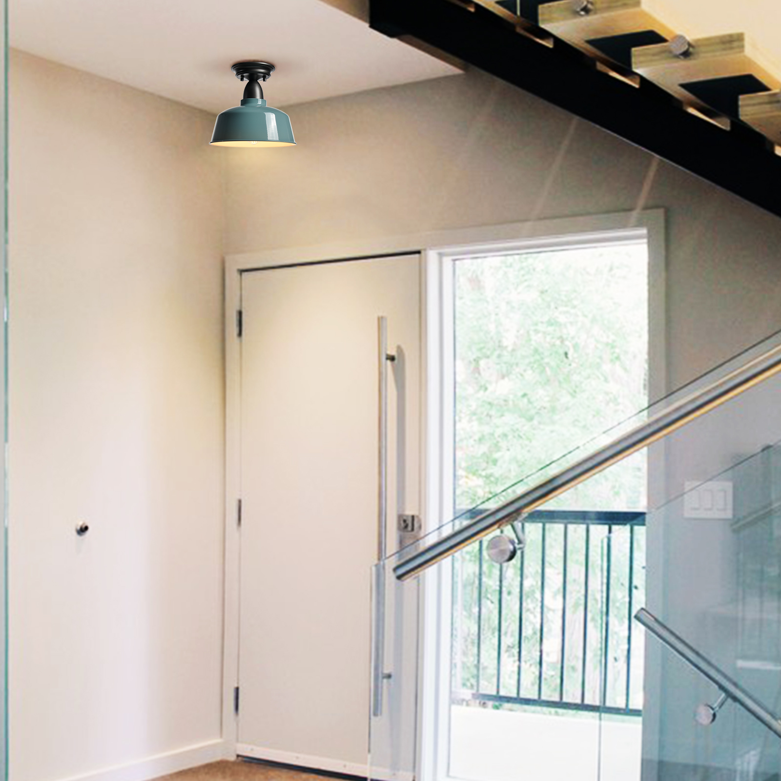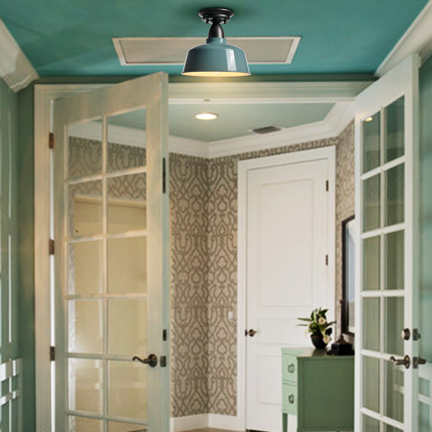 This ceiling light fixture’s canopy and lamp holder are coated in a dark gray finish while its barn shade flaunts a pale turquoise finish. Its mix of finish encompasses both a dash of drama and a touch of rusticity, yet maintains an industrial edge. Its pale turquoise lampshade gives your home a snappy look and a glamorous, refreshing vibe. It sports a durable pale turquoise finish and a barn shade to bring a bit of factory-inspired elements to your living space. Its dark gray finish offers a stark contrast to the pale turquoise finish and adds alluring eye appeal to the space.