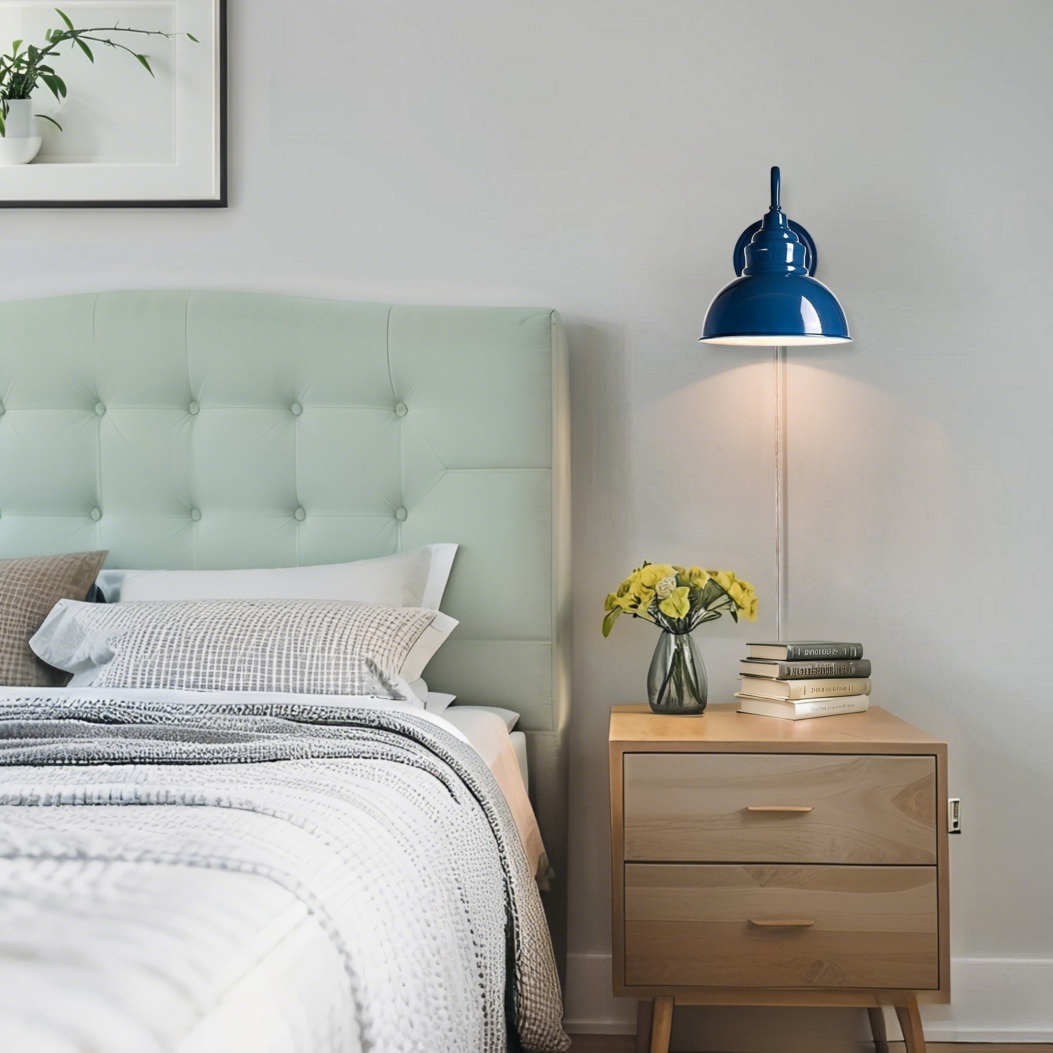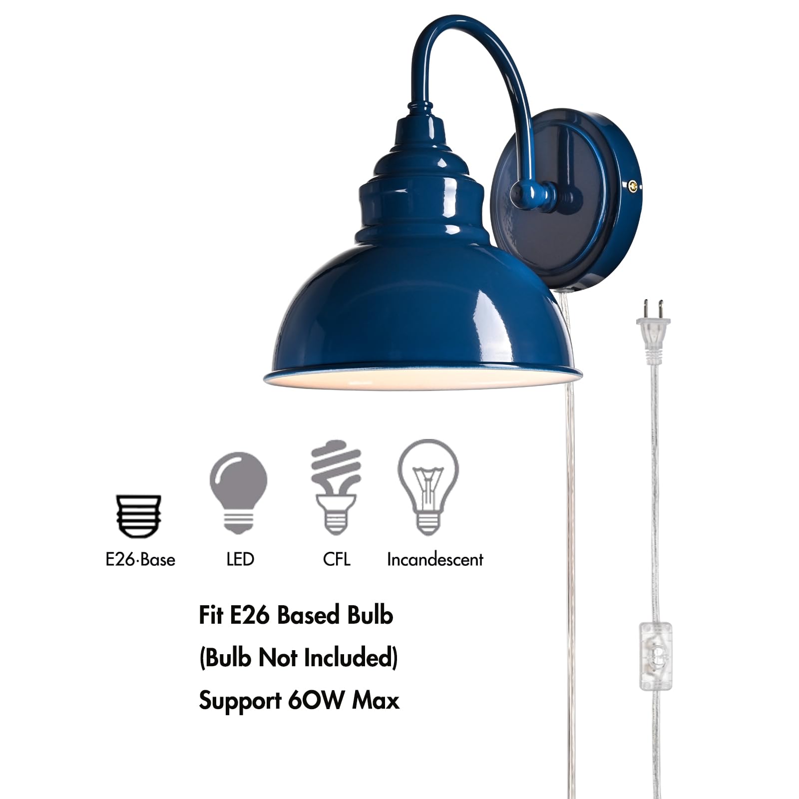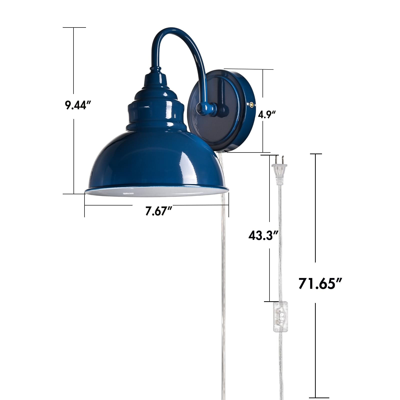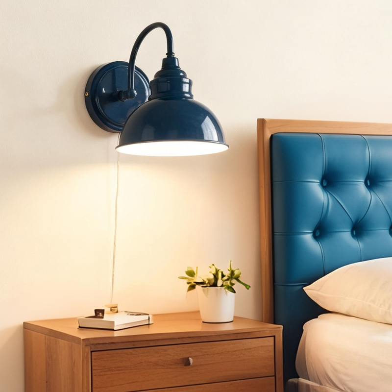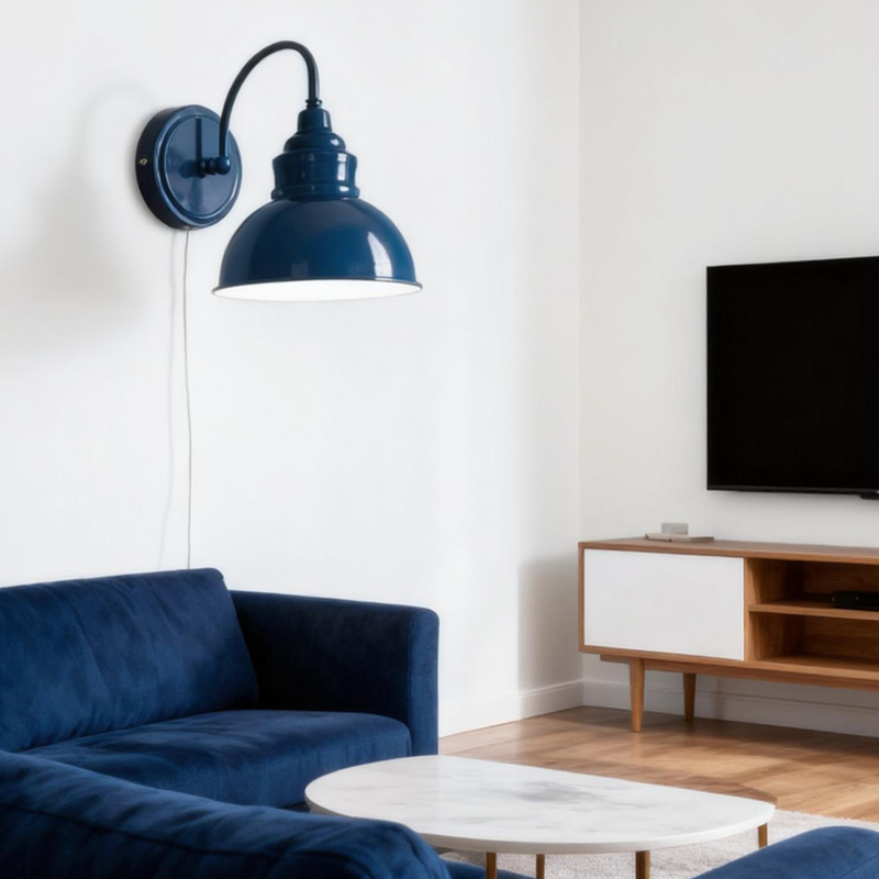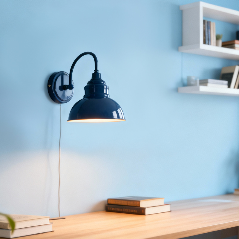 Boasting a rustproof blue finish, the modern gooseneck wall sconce brings a touch of modern sophistication to your living space. The wall light’s dome shade shows off a white finish on the inner surface. The white interior of the dome shade helps reflect the light. A mix of finishes encompasses both a dash of drama and a touch of modernity, yet maintains an industrial edge. Its blue dome shade rounds out the design and elevates your interior with a touch of geometry. Its blue finish gives your home a snappy look and a glamorous, refreshing vibe. Its blue finish offers a stark contrast to the white finish and adds alluring eye appeal to the space. It comes with a 71.65-inch plug-in cord to suit your lighting needs.