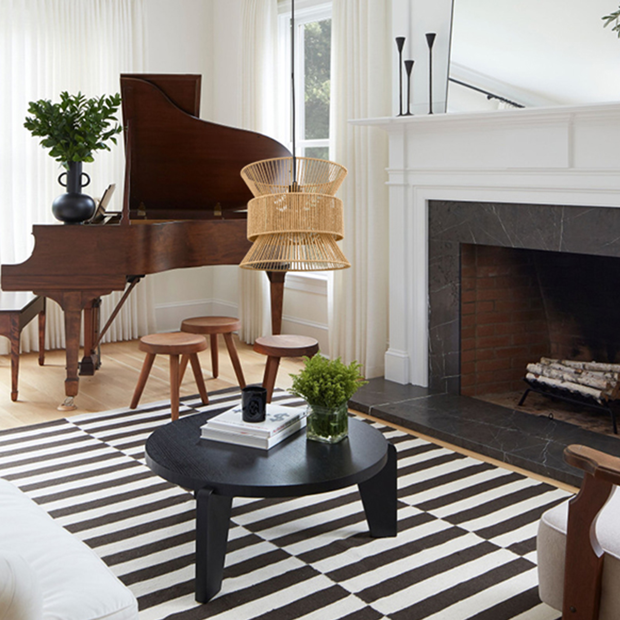 Expertly crafted with paper strings, the plug-in pendant light helps the space achieve an organic aesthetic. Its lampshade flaunts a sepia hourglass-inspired inner shade that is encircled and protected by a sepia rounded outer drum shade, providing a ton of eye appeal to the space. Its lamp holder, switch, and plug-in cord give your living space a touch of urban sophistication with a black finish. The light fixture sports hand-woven details on the paper string lampshade, serving as a refreshing sight to the space. A charming glow shines through the airy shade, creating intriguing light effects. It comes with an adjustable 17-foot braided plug-in cord.