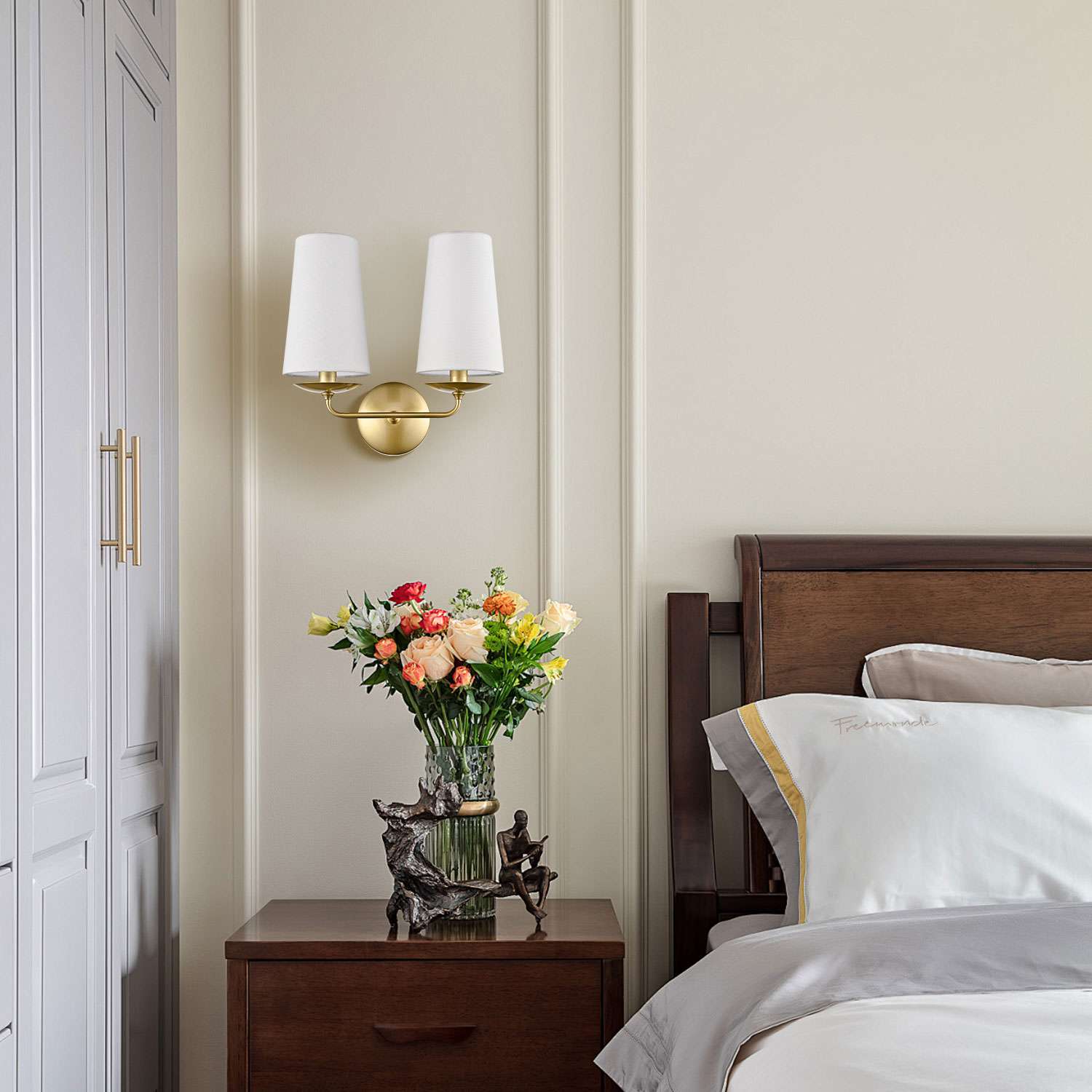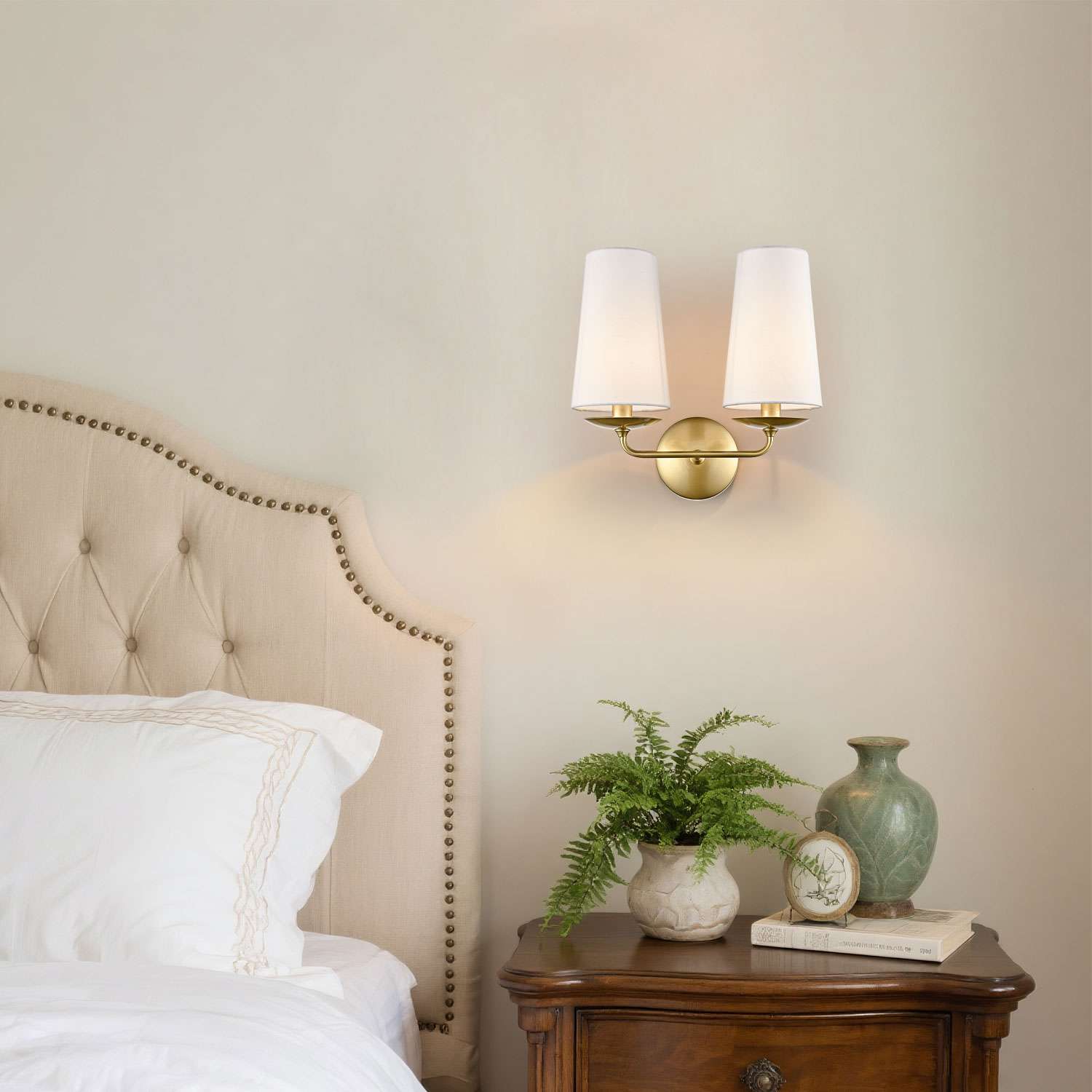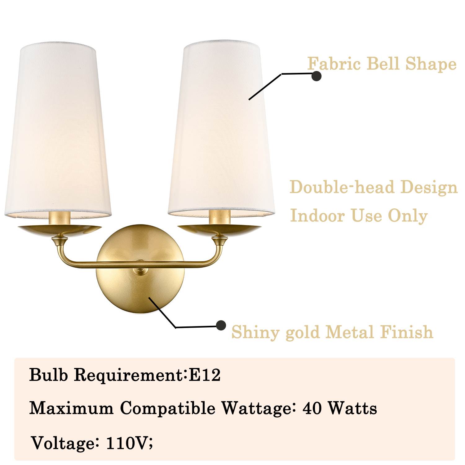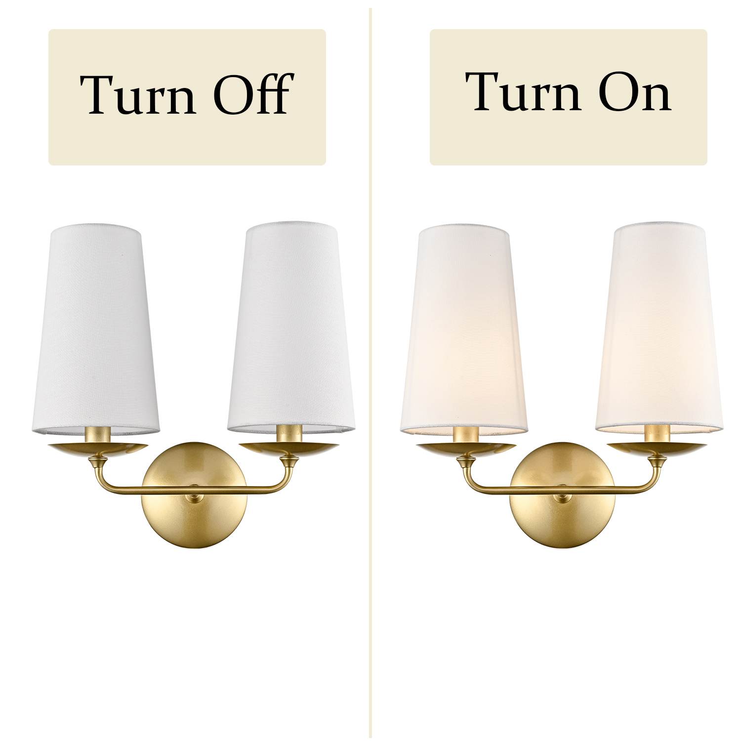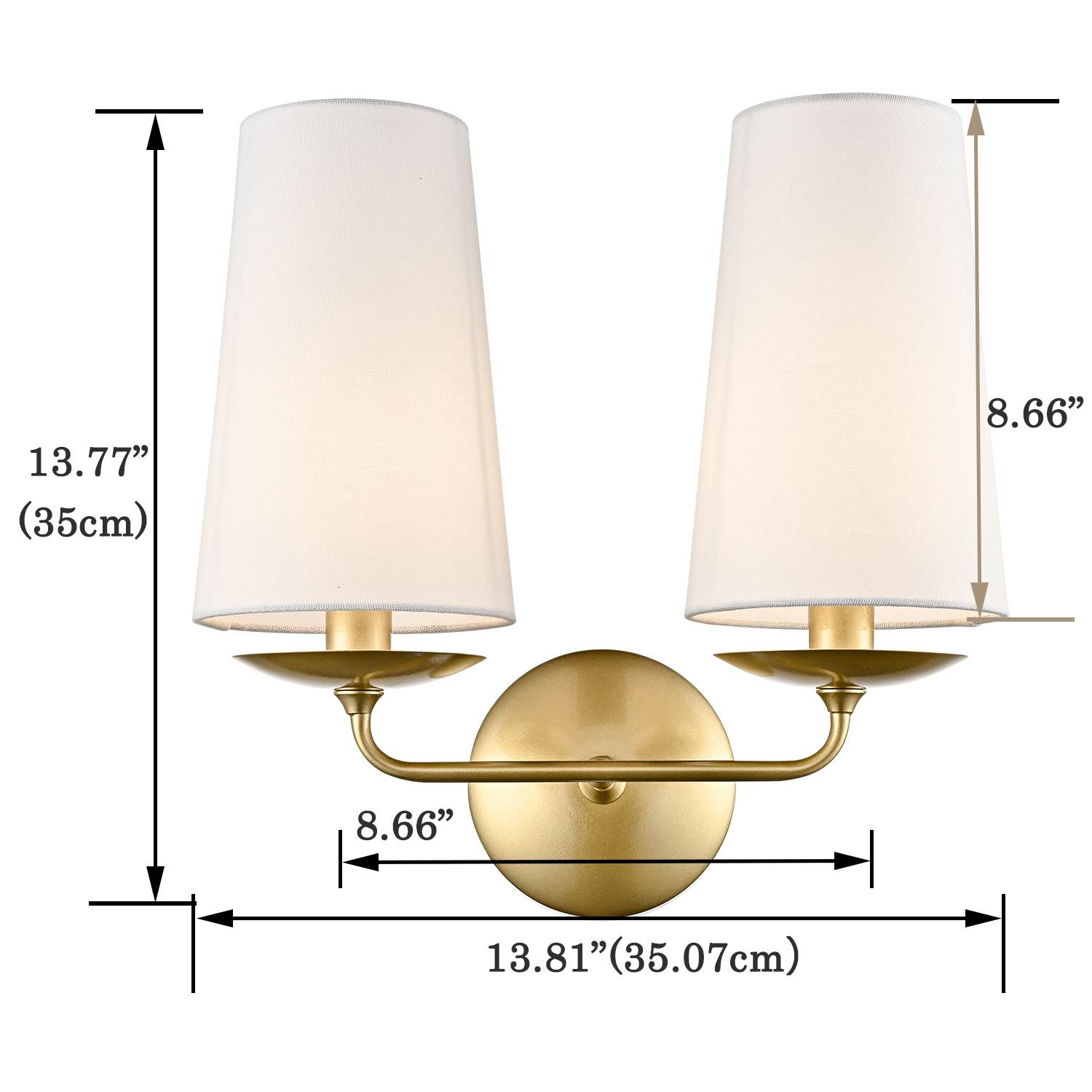 The gold wall sconce’s canopy, lamp holders, and arm flaunt a rustproof shiny gold finish, sprucing up your interior with a bit of metallic pizzazz. Its elongated white linen cone shades cast an enchanting aura of elegance and make for a tasteful statement in your home. The light pouring through the linen lampshades is gently muted and fills the room without any glare. Its white linen cone shades contrast the gold finish and add alluring visual interest to the living area. It is an awesome addition to your living space with its gleaming finish.