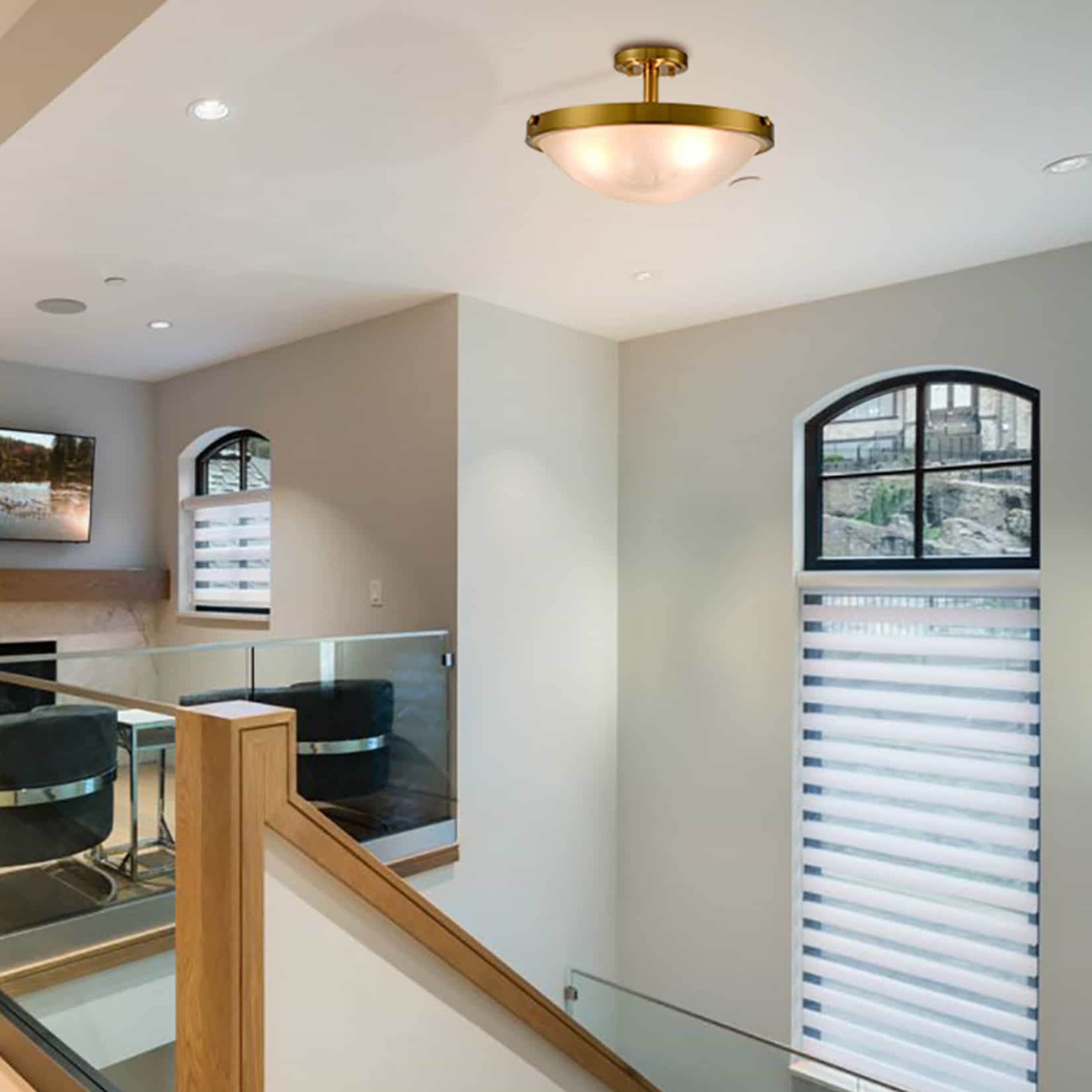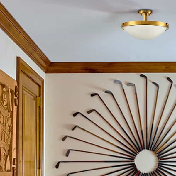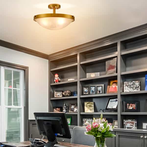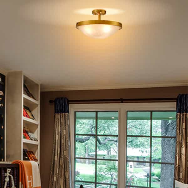The flush mount ceiling light is dressed in brass finish, revitalizing your living space with its a touch of glitz. Featuring exquisite workmanship, the metal canopy and lamp holder of the ceiling light are solid and durable.
