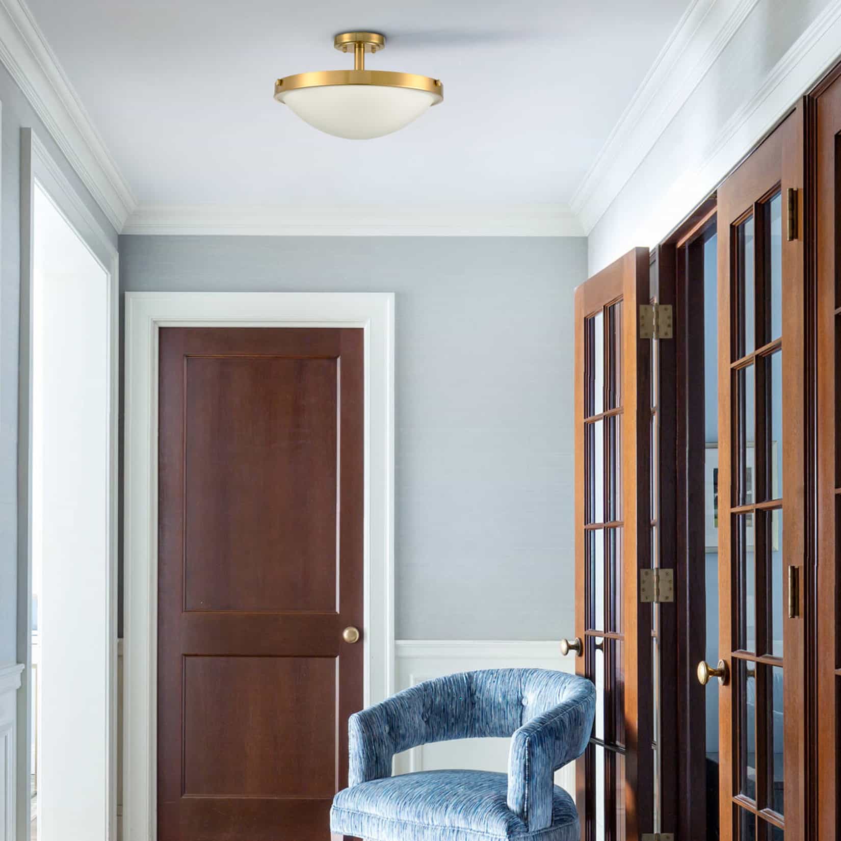 The media could not be loaded. Classic & simple semi-flush mount. Warm & brassy in color, this light is the perfect replacement fixture for your outdated boob light! Easy to install & with 3 60watt bulbs, you have a lovely warm & effectively bright light tone. Already gotten a couple compliments on mine!