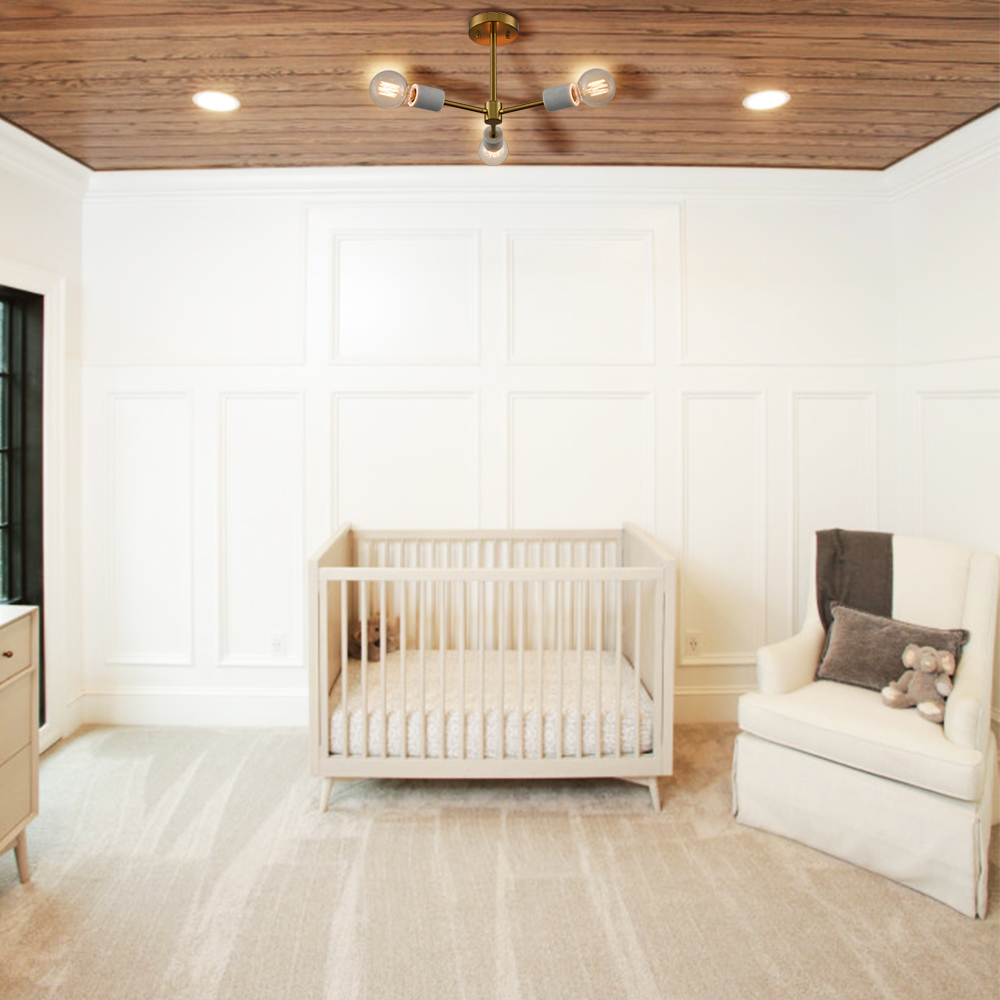 The 3-light sputnik ceiling lighting’s canopy, hanging rod, and arms sport an electrophoretic brass finish, making your home fizz with a pop of personality. Its lampholders are accented with a white finish with marbling. A mix of finishes encompasses both shiny accent and mid-century elements, yet maintains an industrial edge. It is inspired by the look of a fan, with the exposed bulbs and arms taking the place of the blades. The white lamp holders contrast the brass finish, adding a ton of eye appeal and enhancing the piece's visual depth and beauty even further. It can be a new showpiece for your bar, bedroom, dining room, entryway, foyer, hallway, kids room, kitchen, and living room.