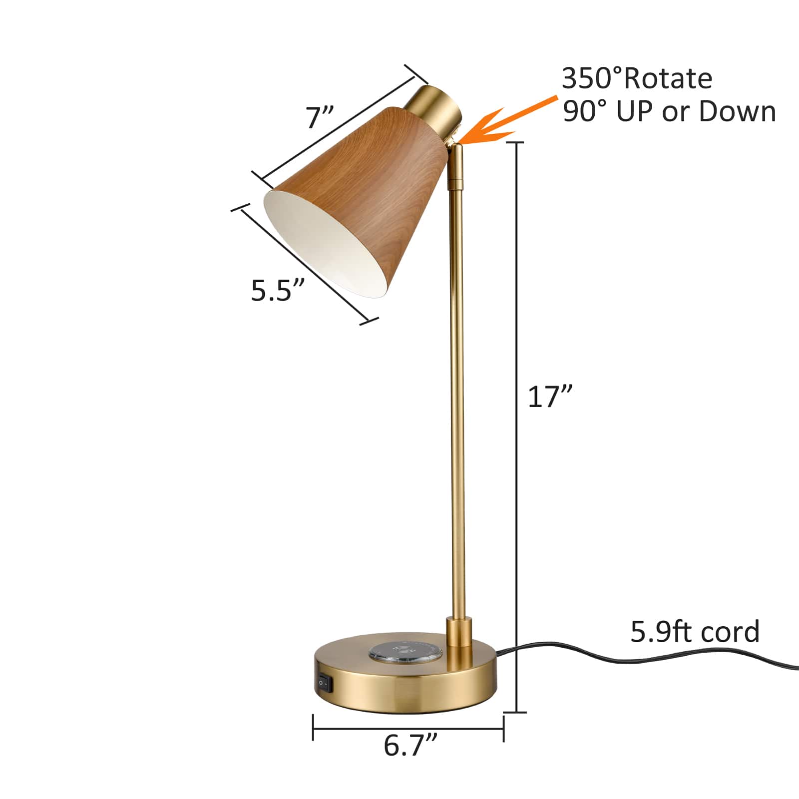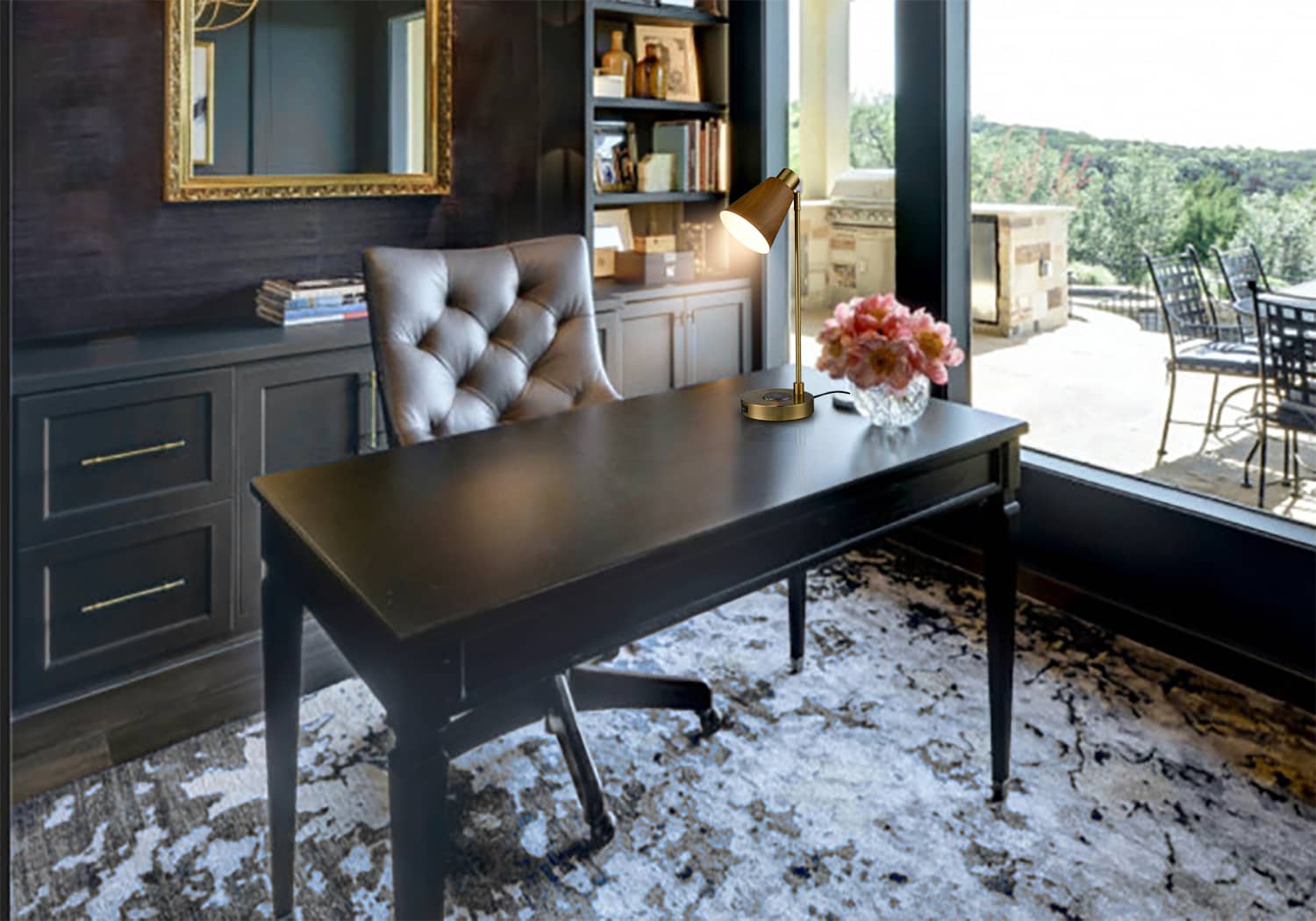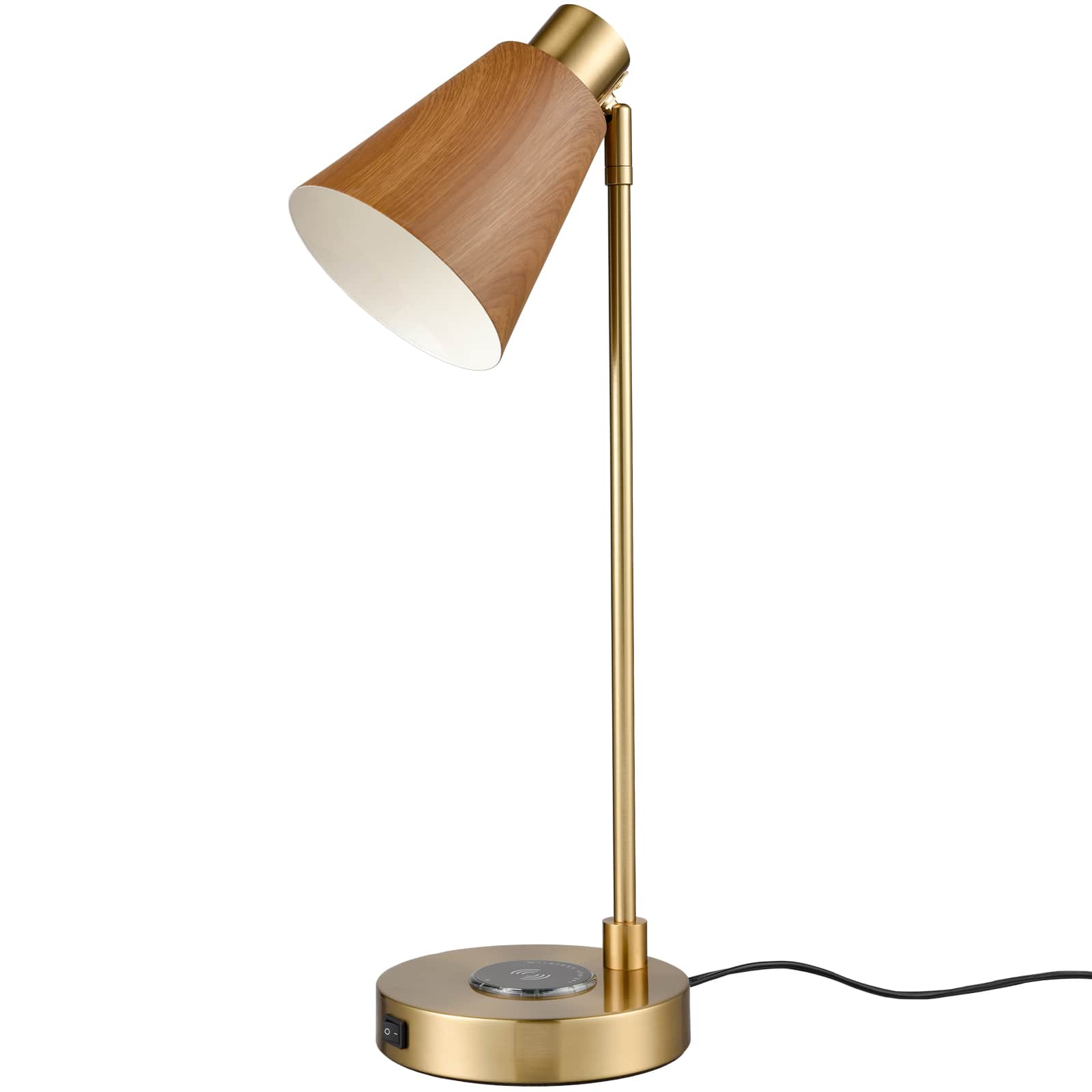 The desk lamp’s lampholder, stem, and base are finished in electrophoretic brass while its cone shade boasts a tawny faux wood finish. Its beautiful dual finish makes an modern yet rustic statement in the interior.