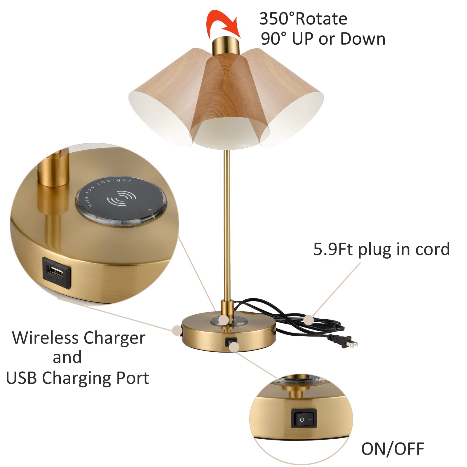 It comes with a 5V/1A wireless charger and a 5V/2A USB charging port. It serves to charge any Qi-enabled devices by simply placing the devices on the top of the base. Compatible with one 40-watt E26-based bulb (NOT included).