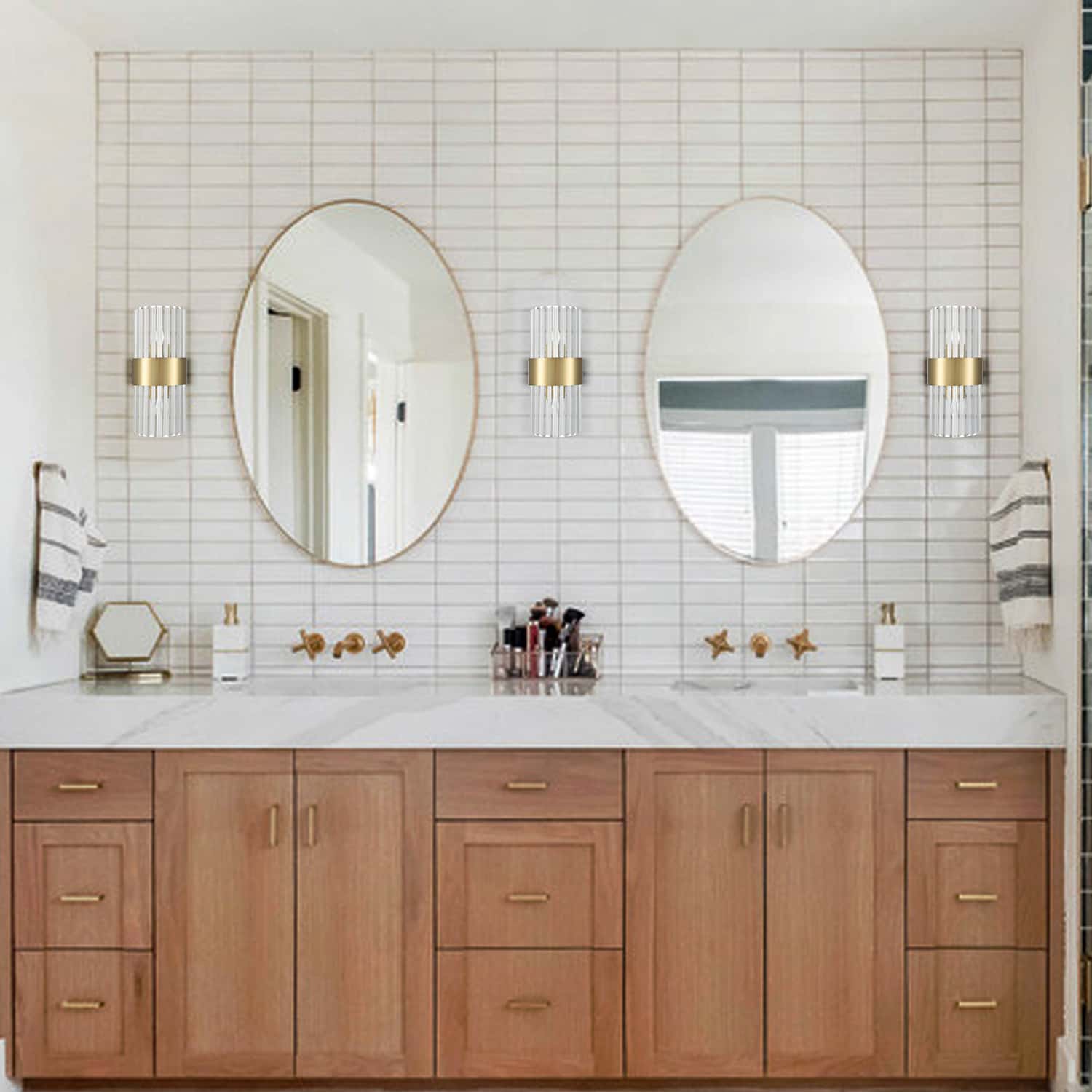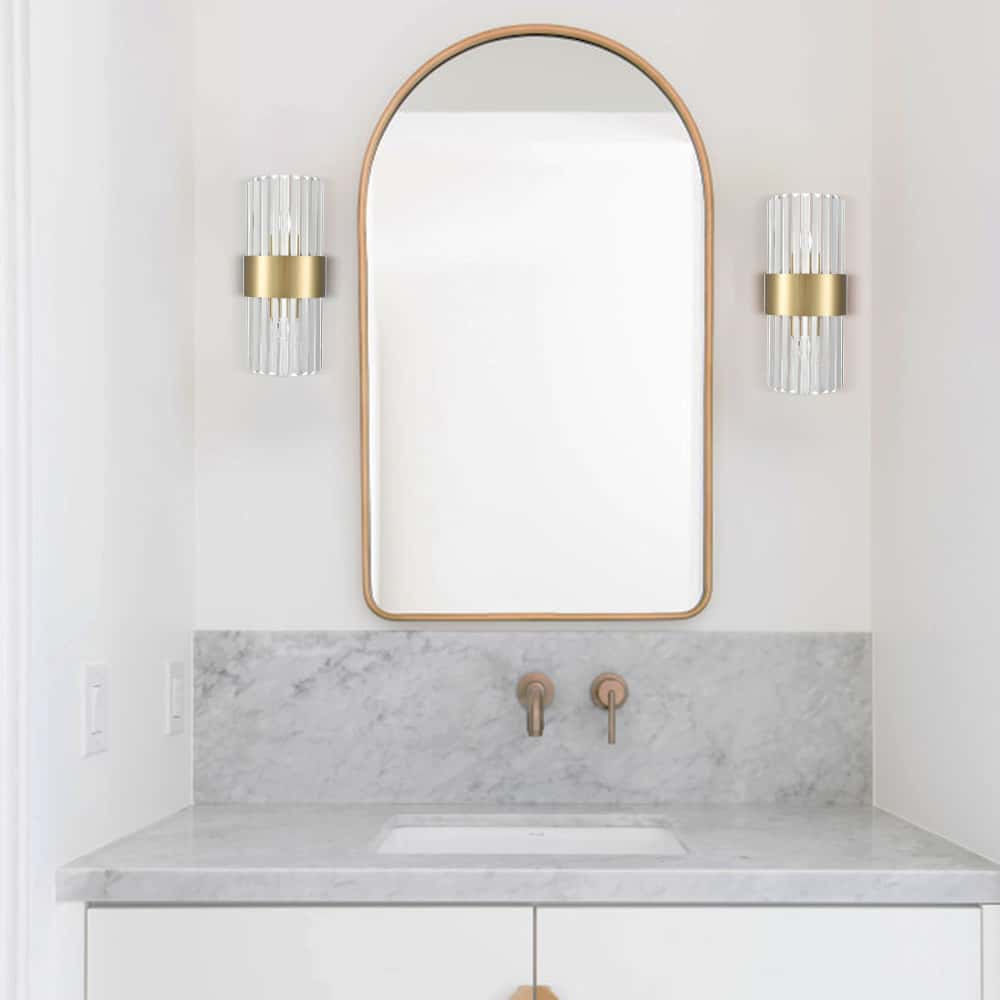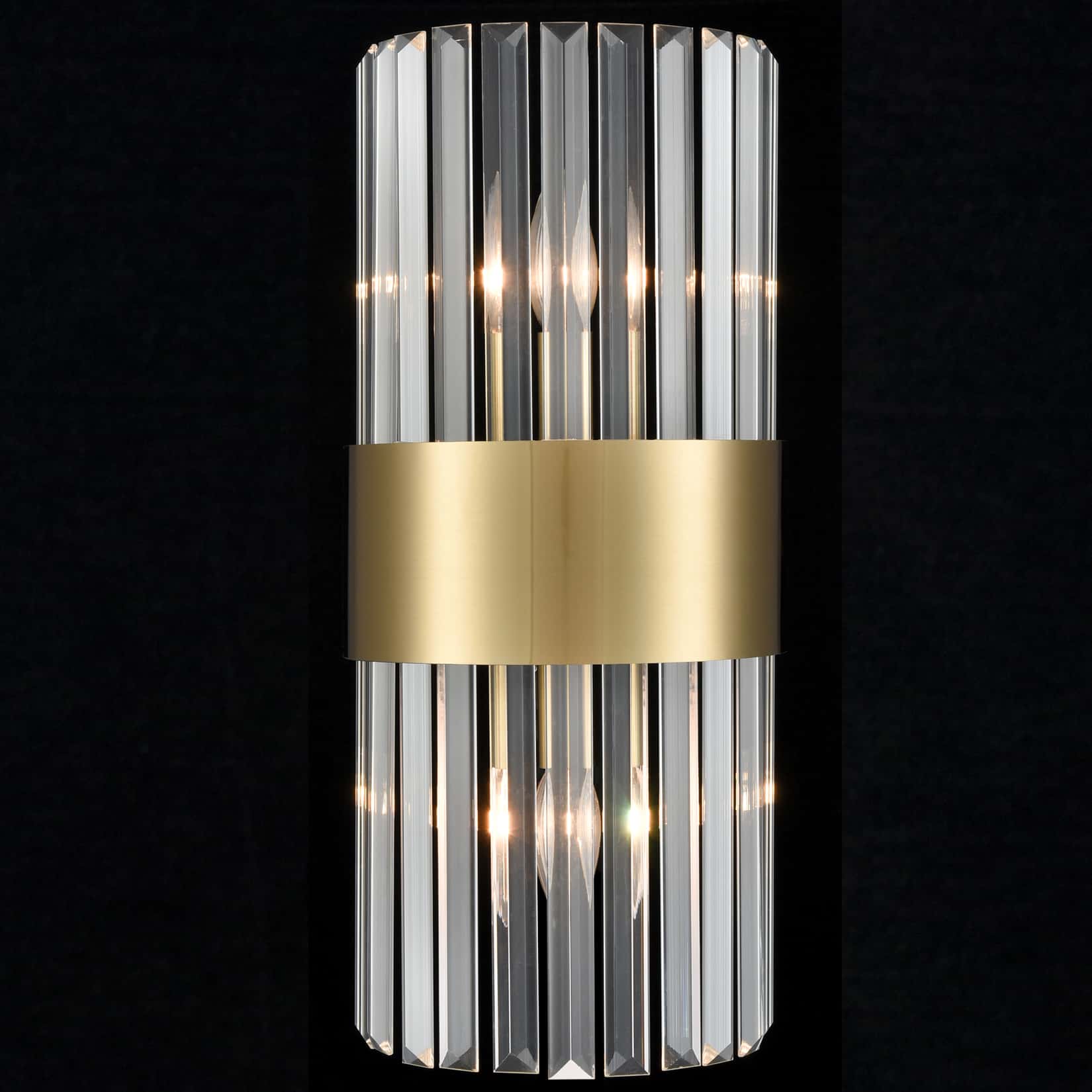 The wall sconce is dressed in an electroplated titanium gold finish, pepping up your living space with a bit of bling. Featuring an impressive design, two rows of shiny clear glass rods at same lengths make a radiant statement in your interior.