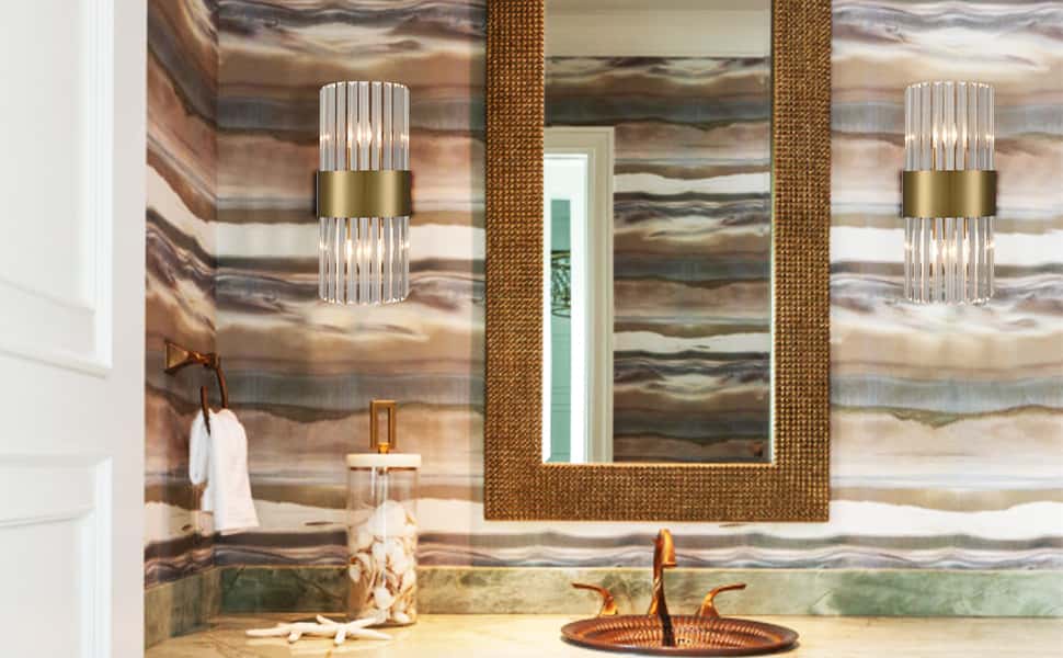 The wall sconce is dressed in an electroplated titanium gold finish, pepping up your living space with a bit of bling. Featuring an impressive design, two rows of shiny clear glass rods at same lengths make a radiant statement in your interior.