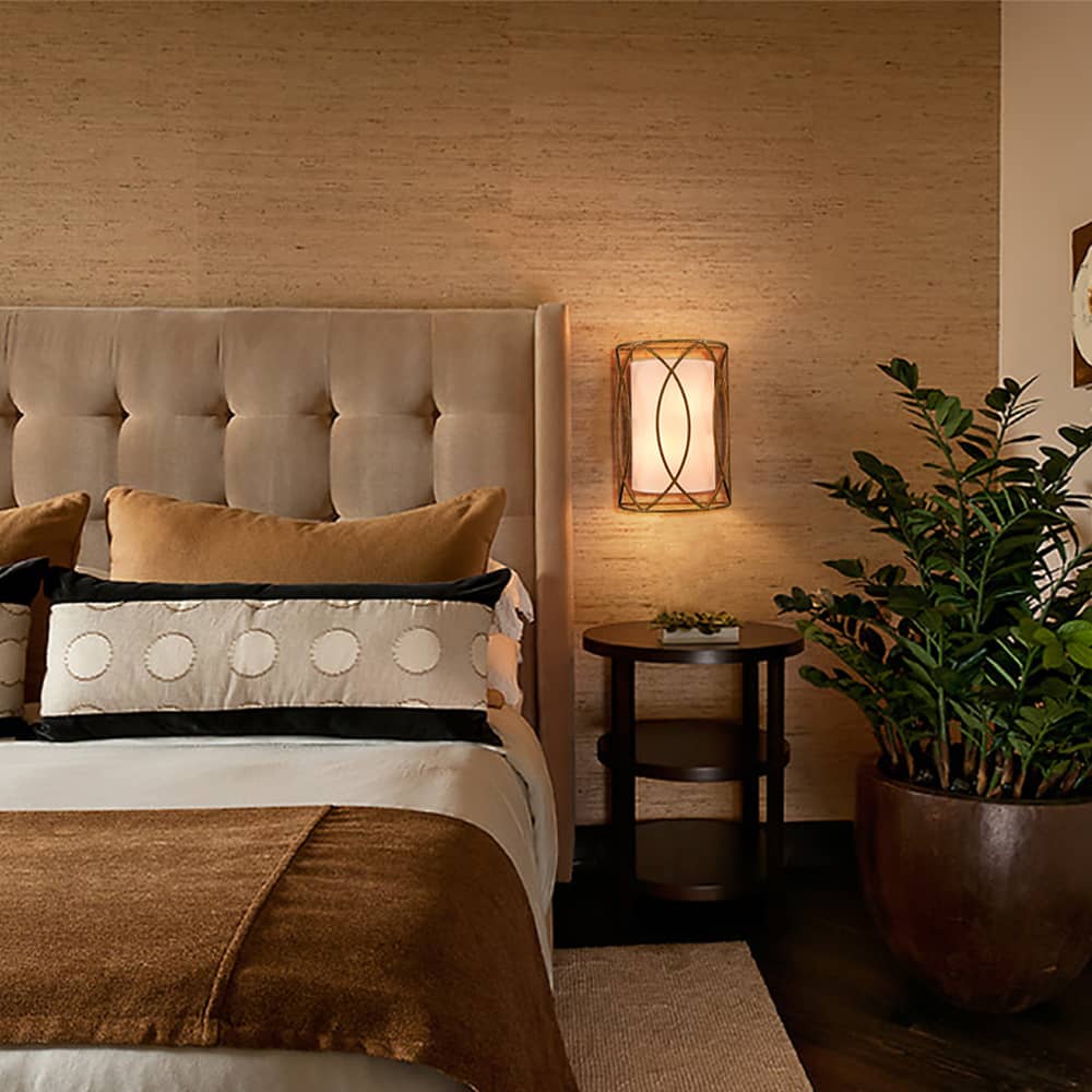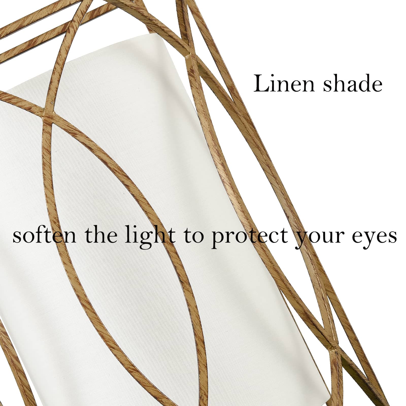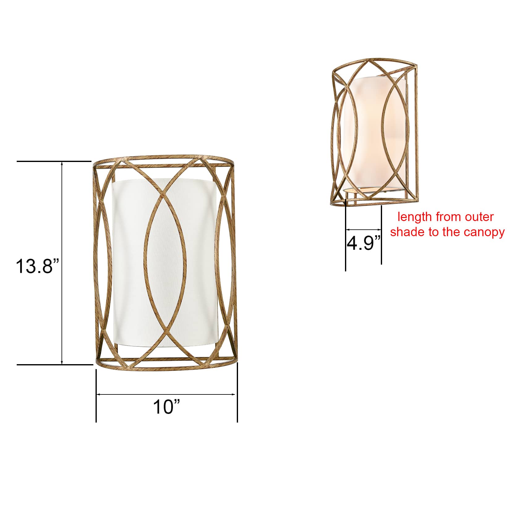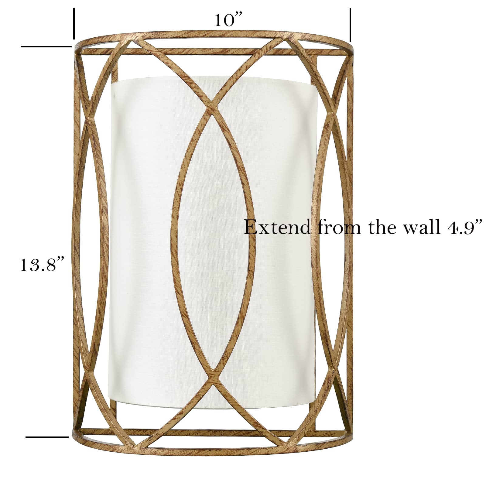 Finished in antique brass, the wall sconce spruces up your interior with metallic shimmer. It flaunts an elongated open drum shade that showcases a linked oval design, offering a dramatic look that is guaranteed to grab more than just a few glances. The wall sconce’s metal drum shade encases and protects another beige linen drum shade, making for a stunning piece of art and adding visual interest to your living space. The wall sconce is an eye-catching addition to your home with its shiny finish.
