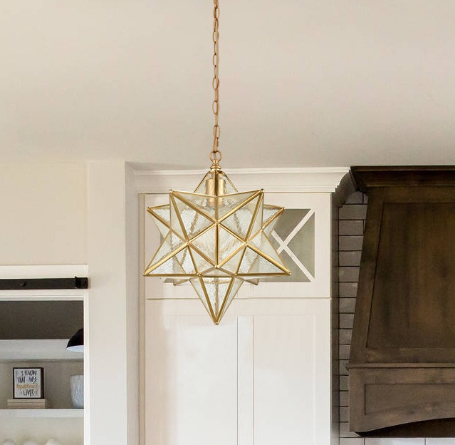 Inspired by the ancient wit, this brass Moravian star pendant light is made of fun, delicacy and aestheticism. Brass endowed it with a sense of glamour, seeded glass makes it more dreamy, and exquisite craftsmanship vitalized it