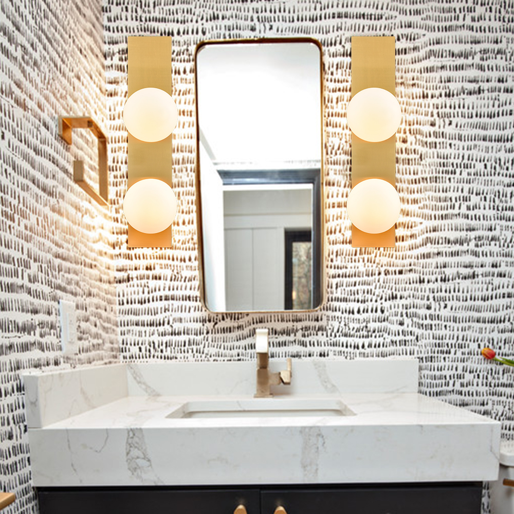 The 2-light mid century modern brass wall sconce provides the perfect blend of mid-century classic and contemporary elements and completes the aesthetic with an elegant touch. The glass shades contrast and compete with the brass finish, adding a ton of eye appeal and enhancing the piece's visual depth and beauty even further.