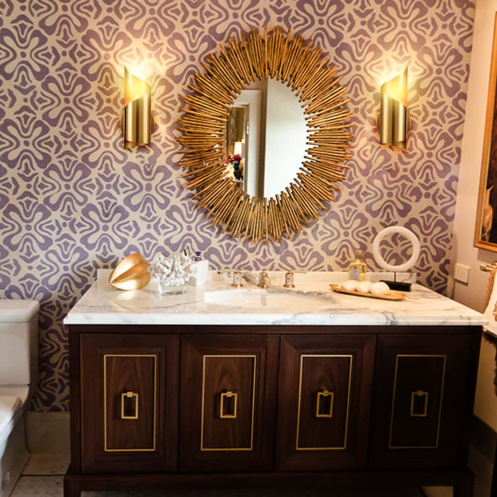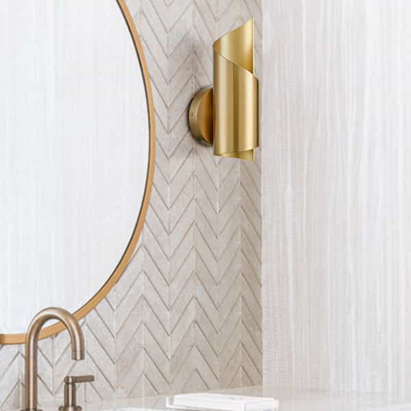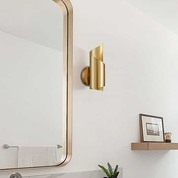 The wall lamp is dressed in brass finish, lighting and decorating your living space with modern style and unique shape.
