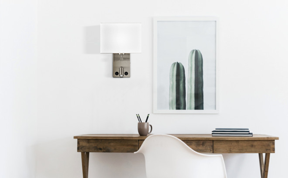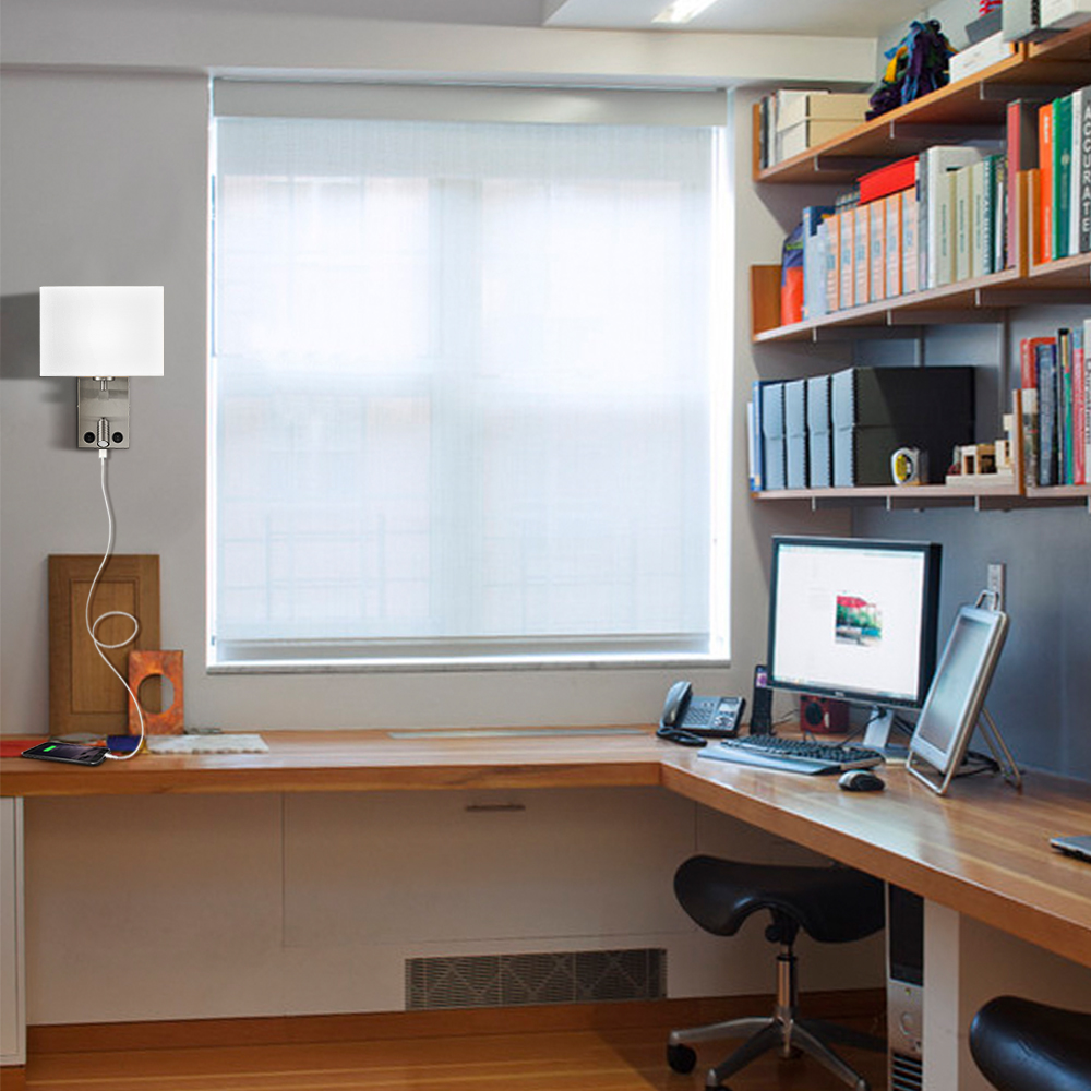 Fitted with a USB charging port with 5Vdc/2.1A output, the white fabric wall sconce can be used for charging mobile phones from the world's largest brands such as Samsung and Iphone even when the light is off. When they are not used for charging, the standby power is less than 0.1W.