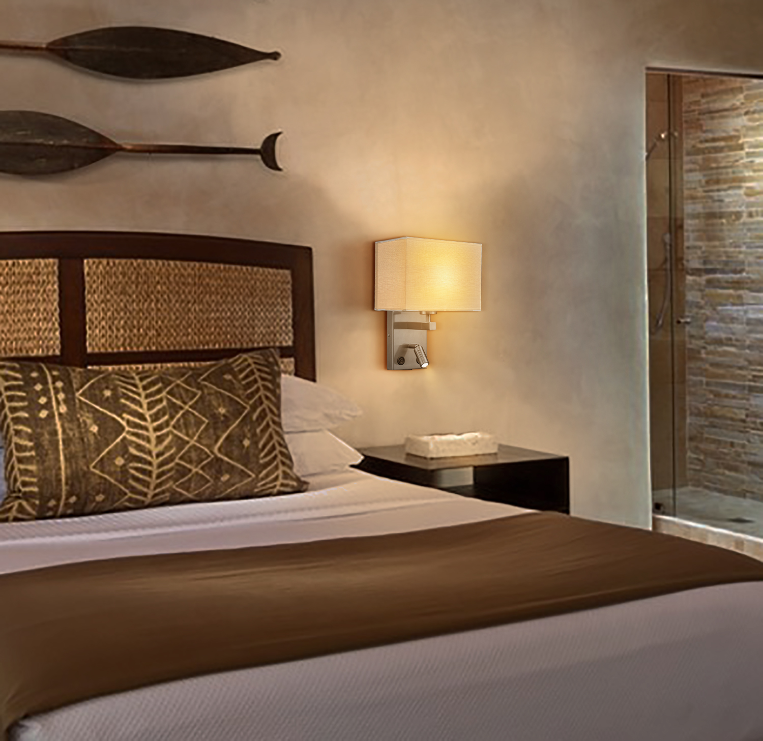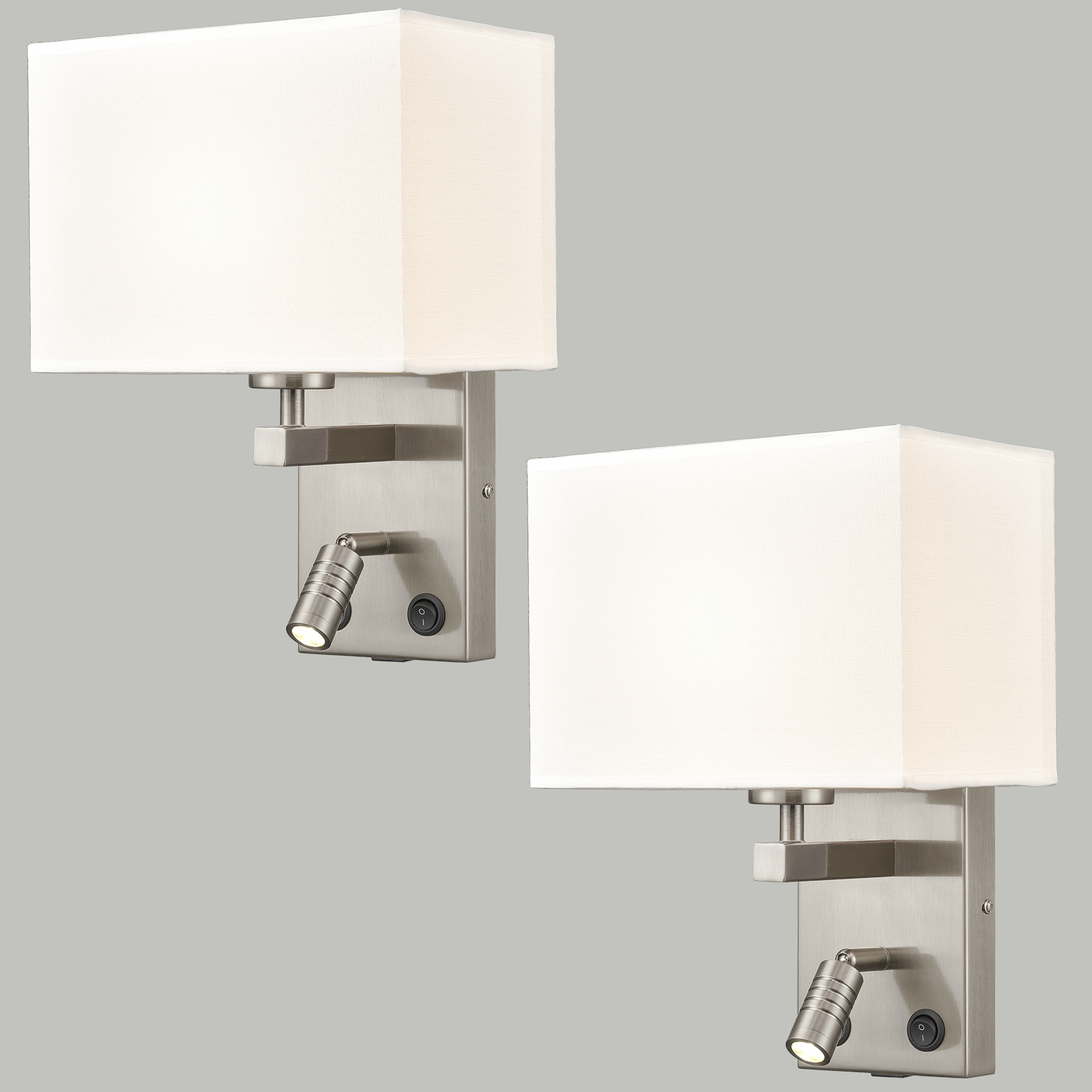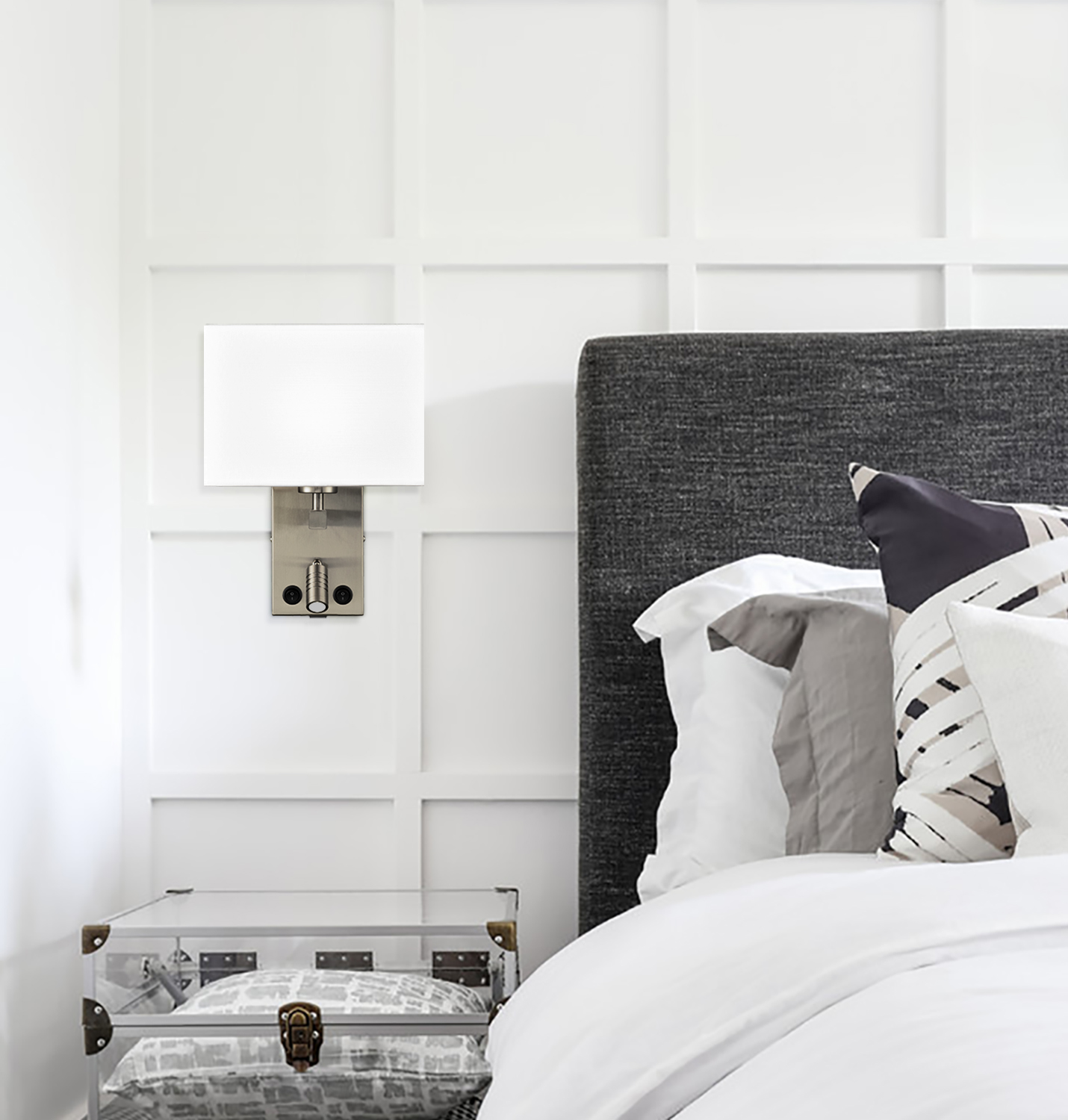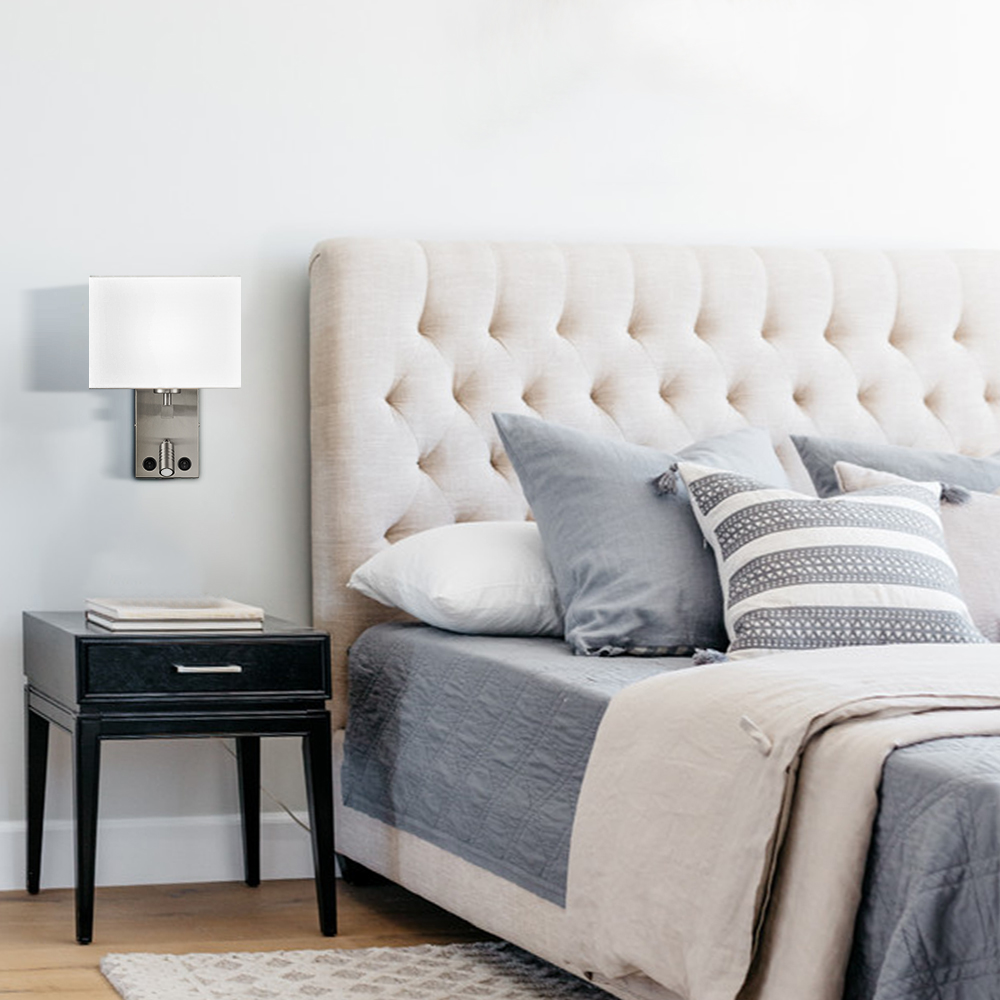 The light pouring through the fabric shades is gently muted and distributed evenly, filling the space without any glare. Featuring 80 CRI, 4000K color temperature, and 130LM, the 1.5W LED night lights attached to the wall sconce are flicker-free and are able to serve as a light source for reading, photo shooting, and drawing focus to artwork.