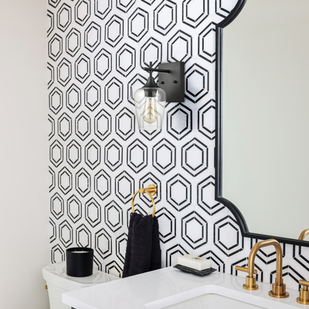 Industrial Clear Glass Wall Sconces Matte Black Bathroom Wall Lights