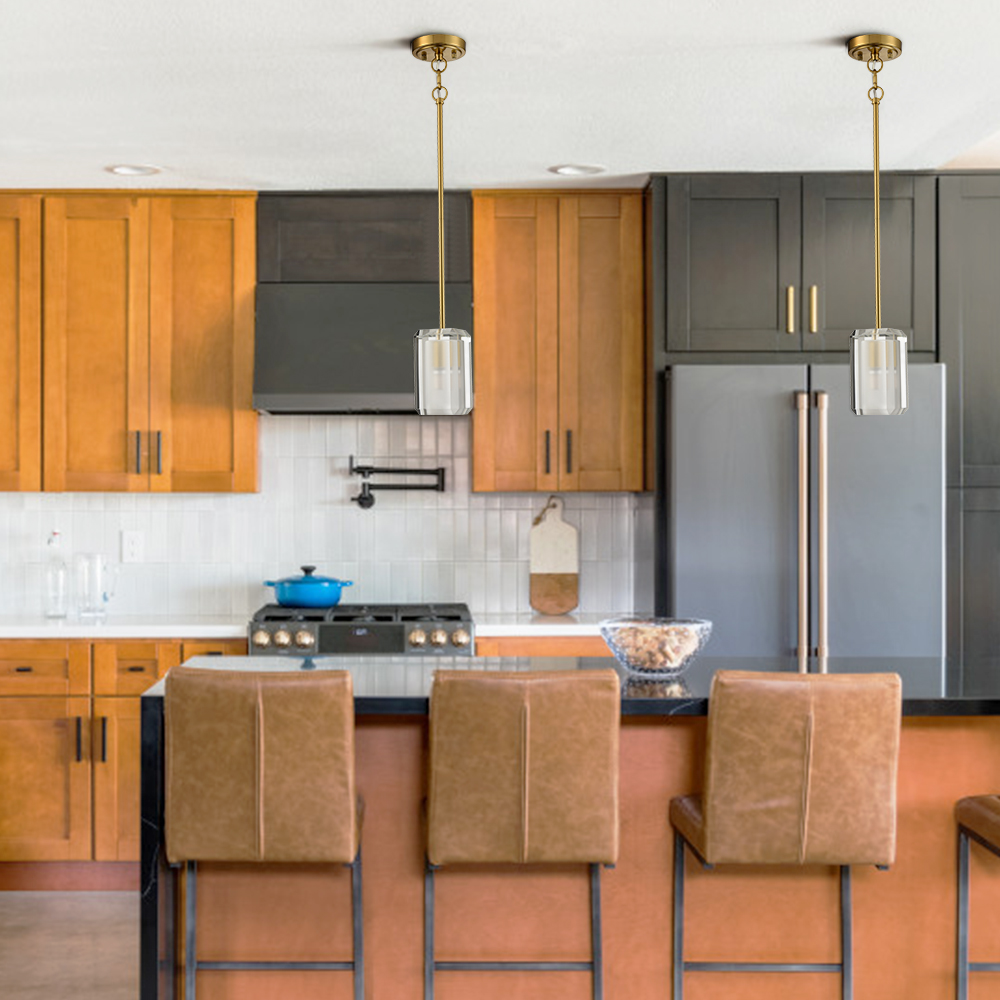 The crystal pendant light fixture sports a rustproof electrophoretic gold finish, perking up your interior with a touch of glitz. Its crystal lampshade shows off one outer clear crystal glass shade and one inner frosted crystal glass shade. Its cylinder crystal lampshade draws the eye upward to a beautiful display of crystal and metal. It catches the light to create a beautiful dazzling effect as well as provide generous ambient illumination to your living space. It has all the style, charisma, and drama required to catch everybody’s eyes. It comes with four 10.6-inch rods to suit your different lighting needs.