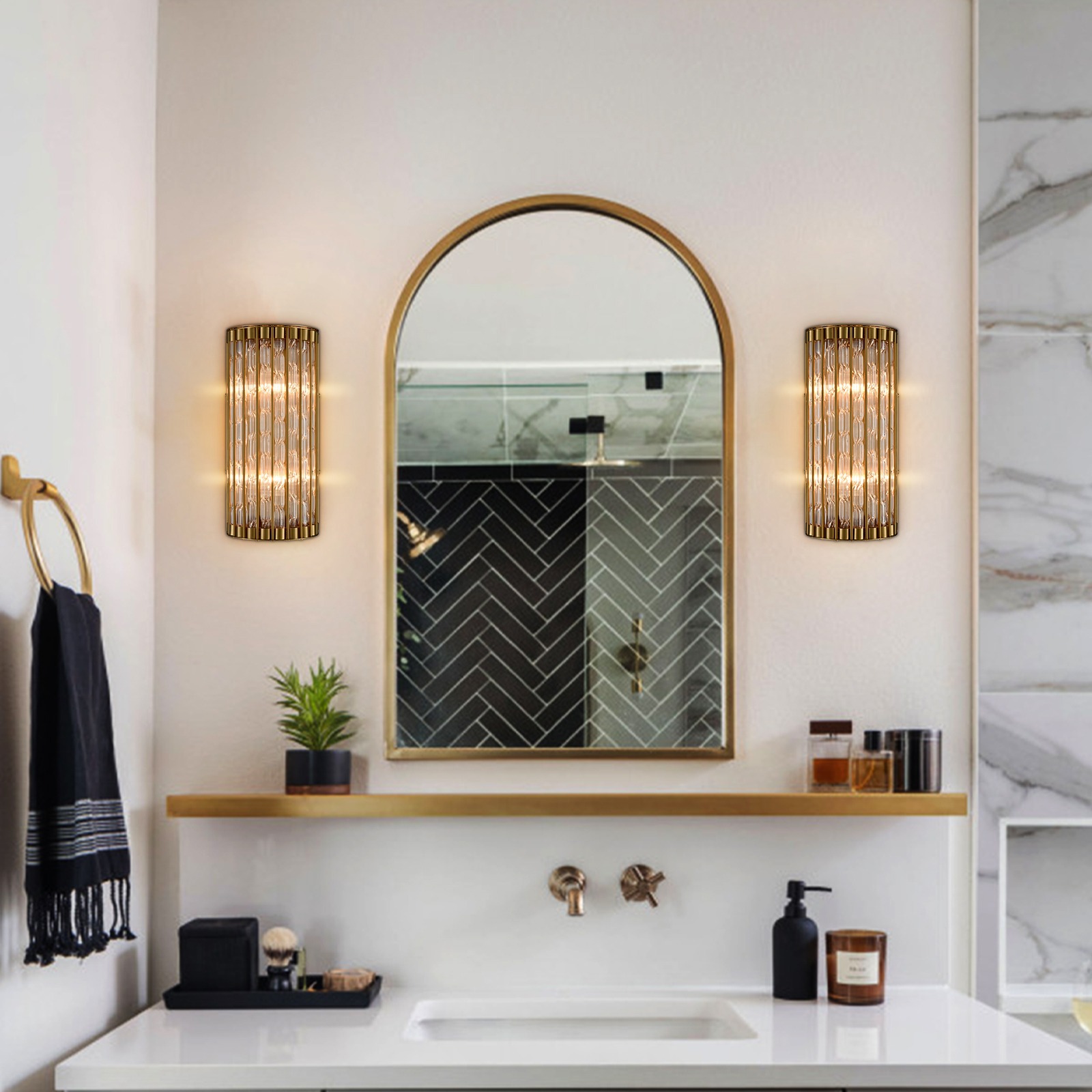 The wall sconce comes with 2 E12-base sockets which are compatible with a variety of bulb types: LED, INCANDESCENT, CFL.