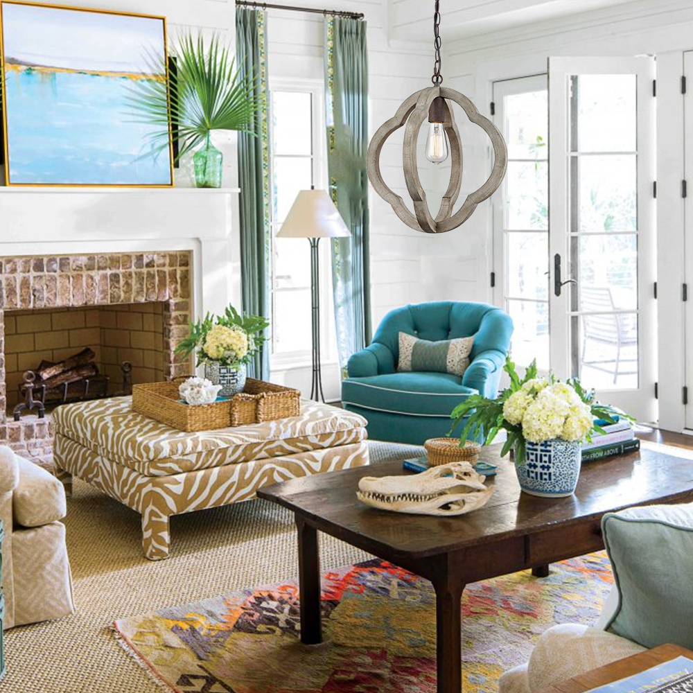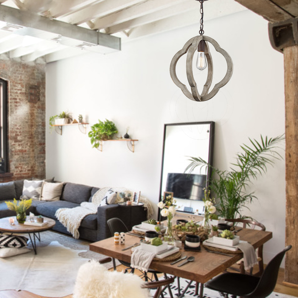 The wooden pendant light features E26 base socket which is compatible with a variety of bulb types: LED, INCANDESCENT, CFL.