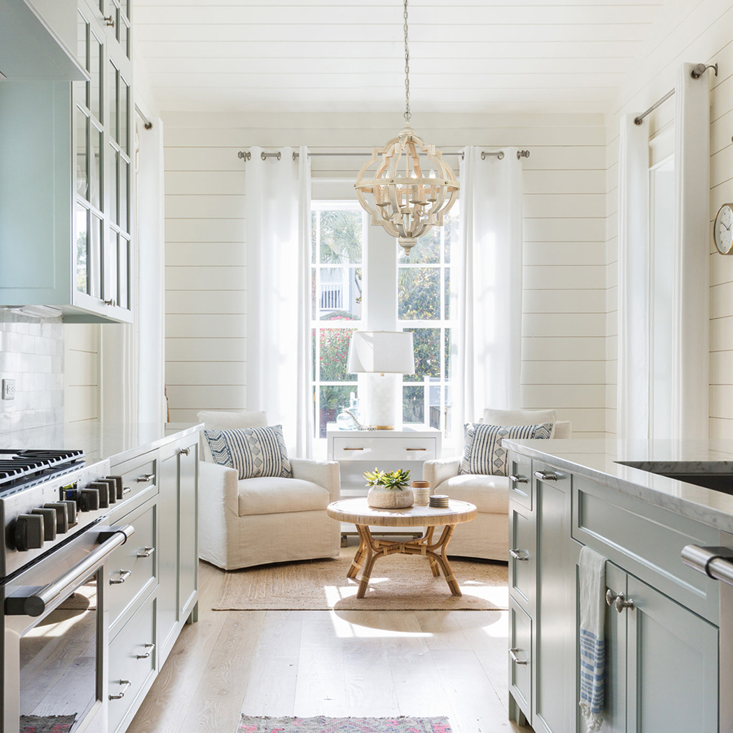 The wooden pendant light features 6 E12 base socket which is compatible with a variety of bulb types: LED, INCANDESCENT, CFL.