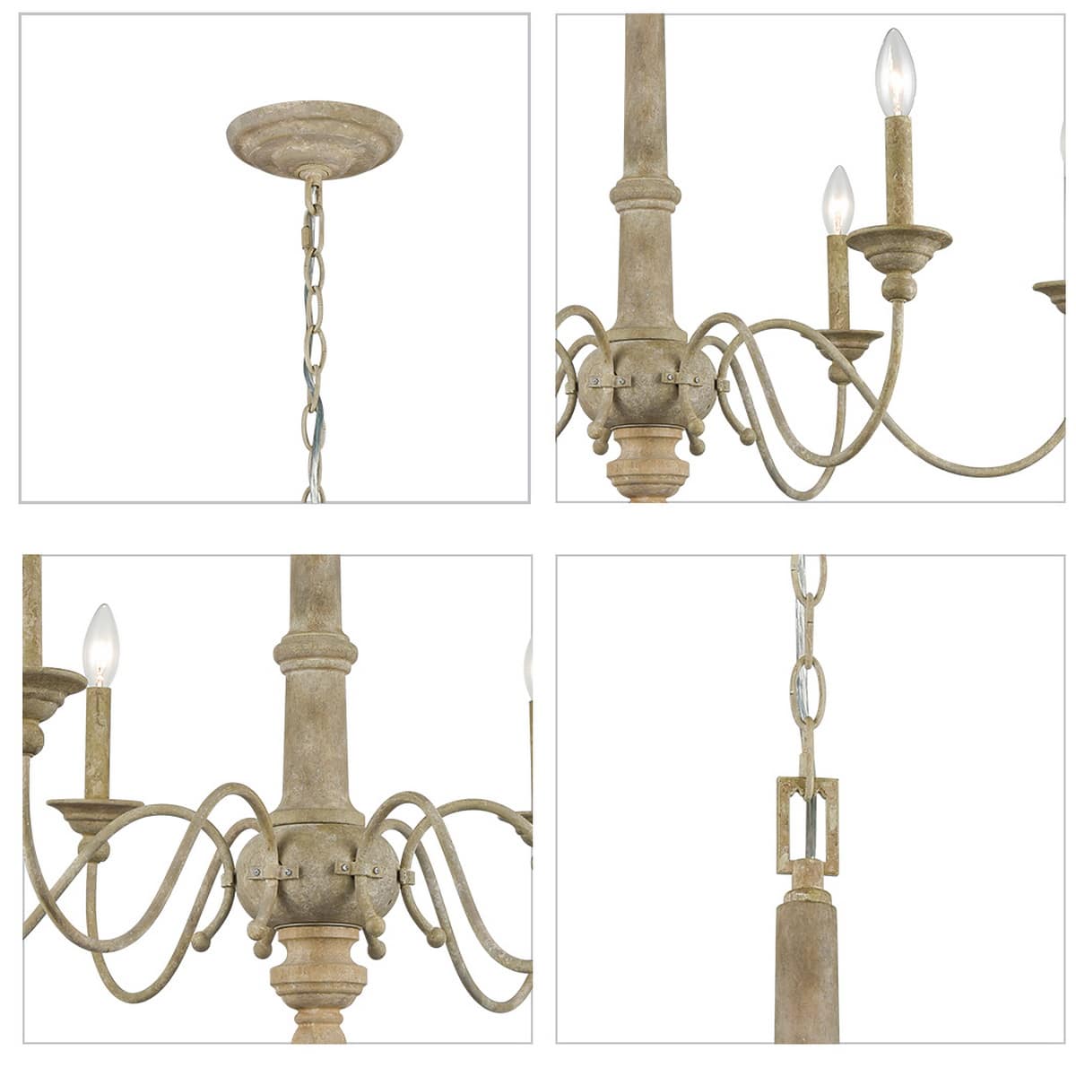 Featuring on scrolled metal arms with straw-like finish, accented with wooden element, this candle chanderlier adds old century look.