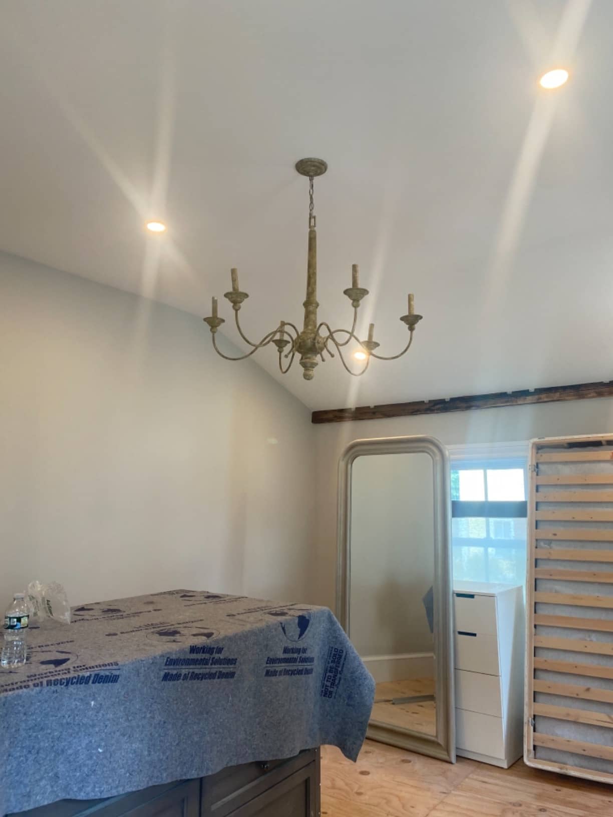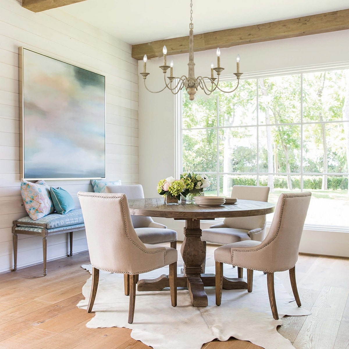 Simple and elegant farmhouse chandelier on a budget! My husband put this together and hung it up in under 2 hours.