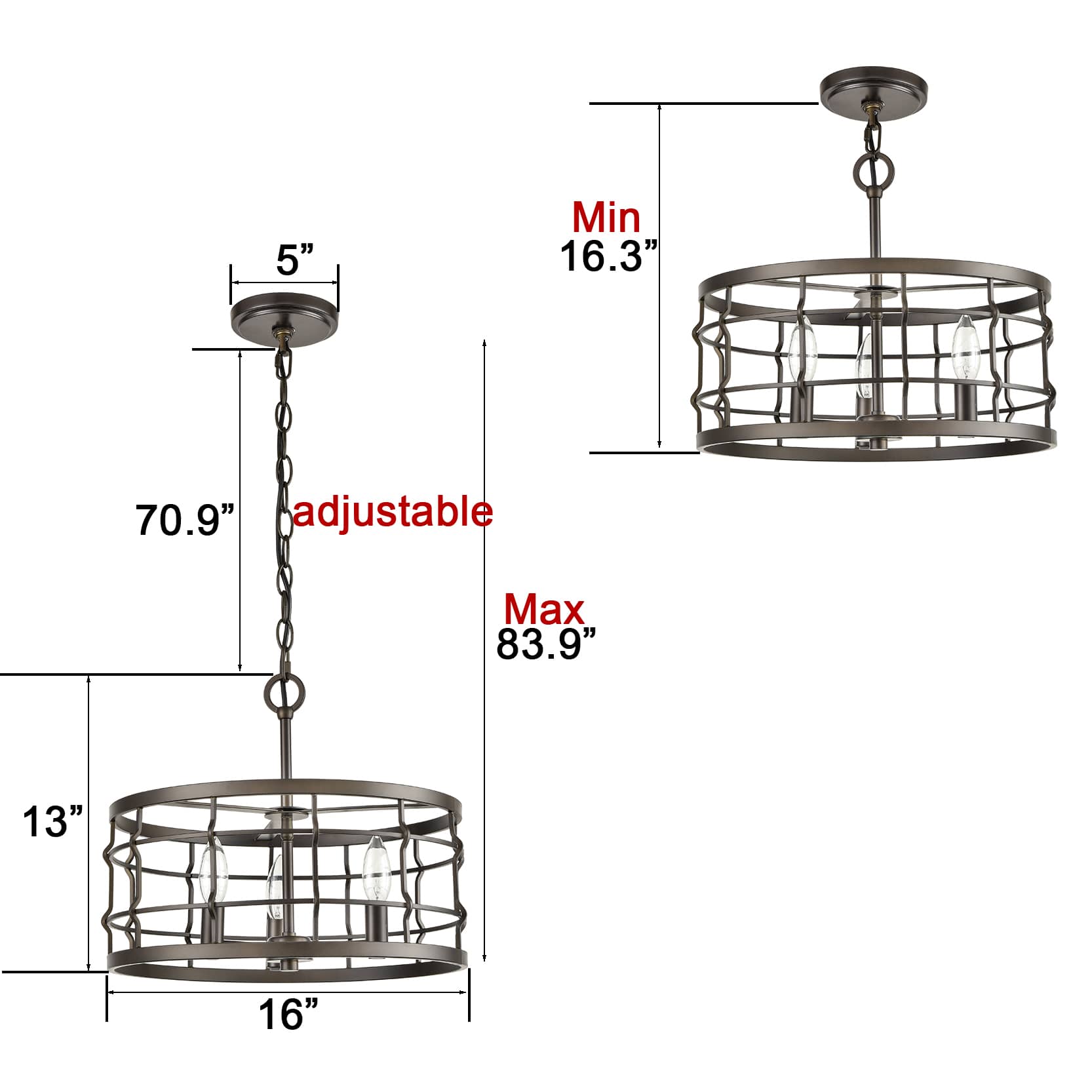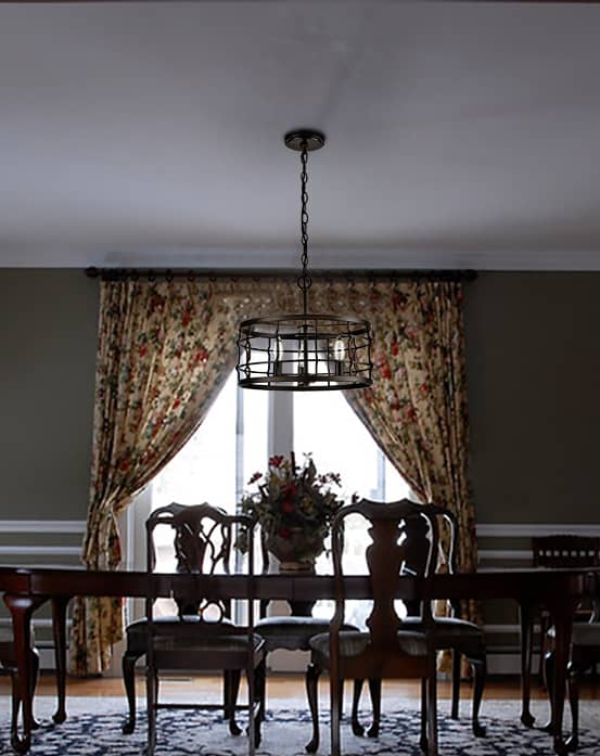 Being finished in terra brown, the chandelier introduces an industrial-inspired charm to your interior. A myriad of metal wires crisscross to form a caged drum silhouette, bringing a unique touch of character to the living area. Its open and airy drum shade encircles three exposed candelabra-inspired lights inside. The light fixture’s airy design allows the lights to shine through freely, adding visual interest and character to your living space. It is a stunning addition to your home with its farmhouse appeal. This is the perfect fixture to transform your dining room, entryway, foyer, kitchen, and living room.