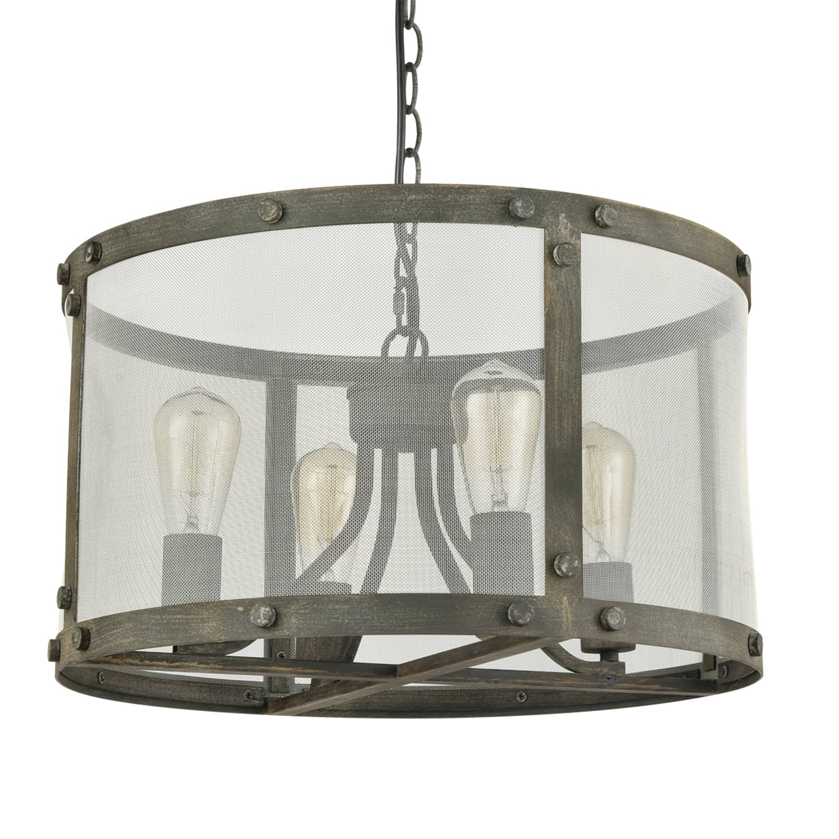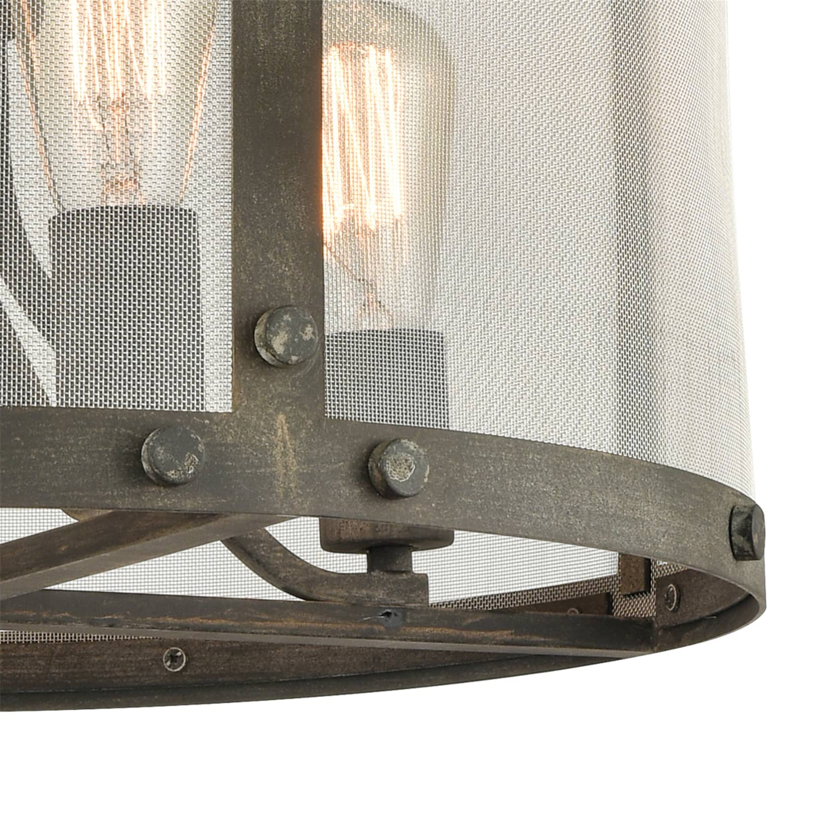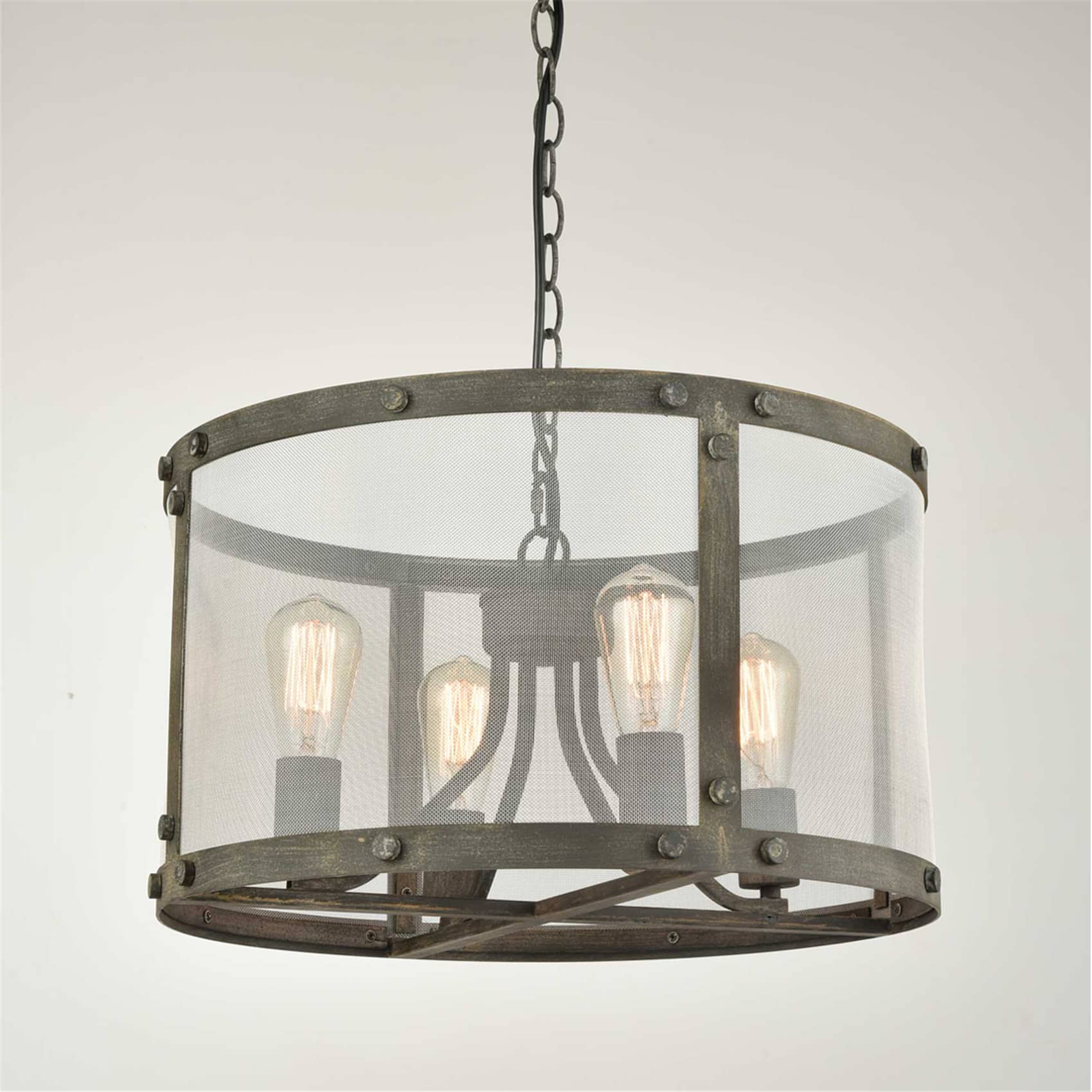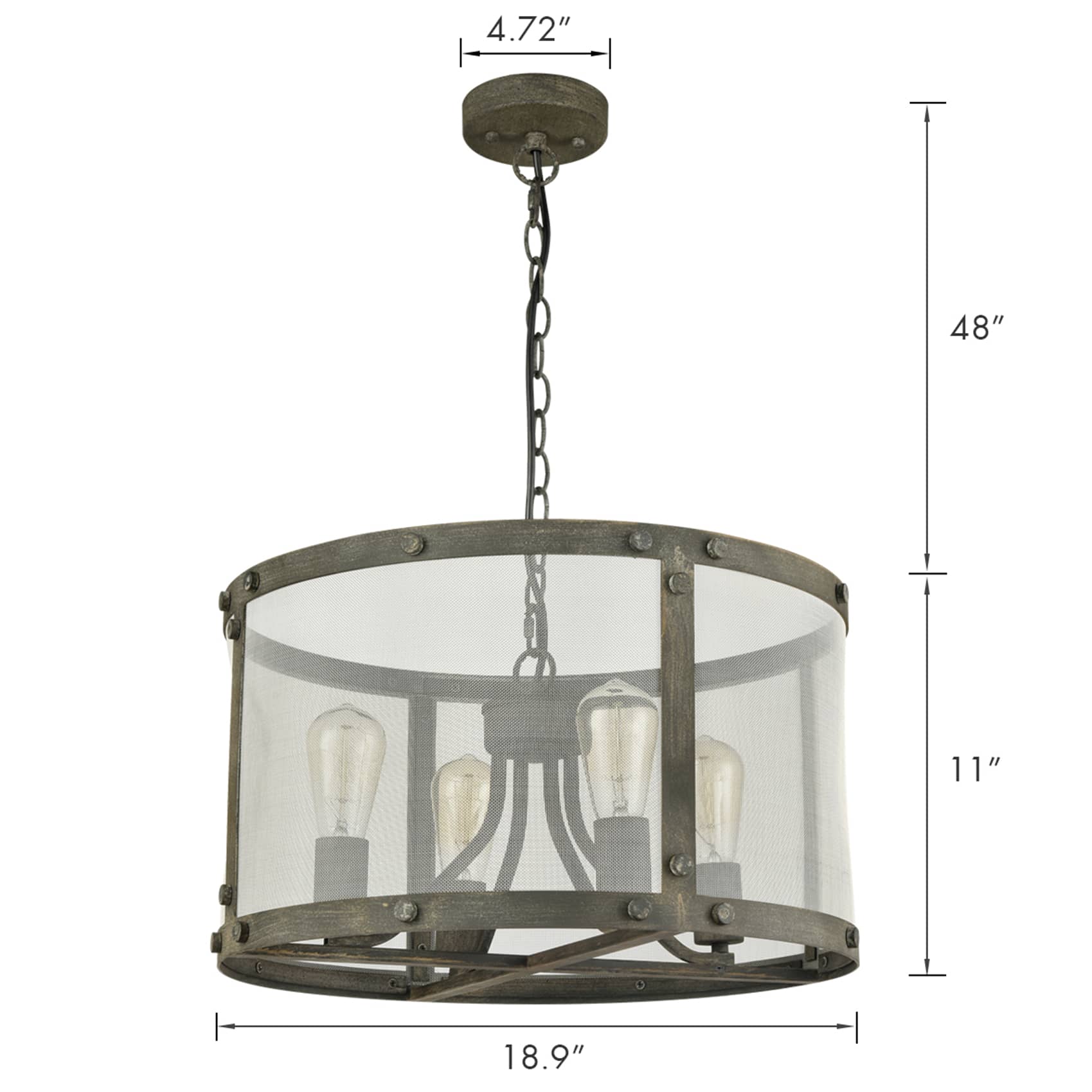 The rustic pendant light is dressed in a hand-painted dark charcoal gray finish, making a rustic statement in your home decor. Its drum shade brings a dash of understated elegance to your living space. The drum shade is accented with stainless steel wire mesh, exuding a factory-inspired flair to round out the design.