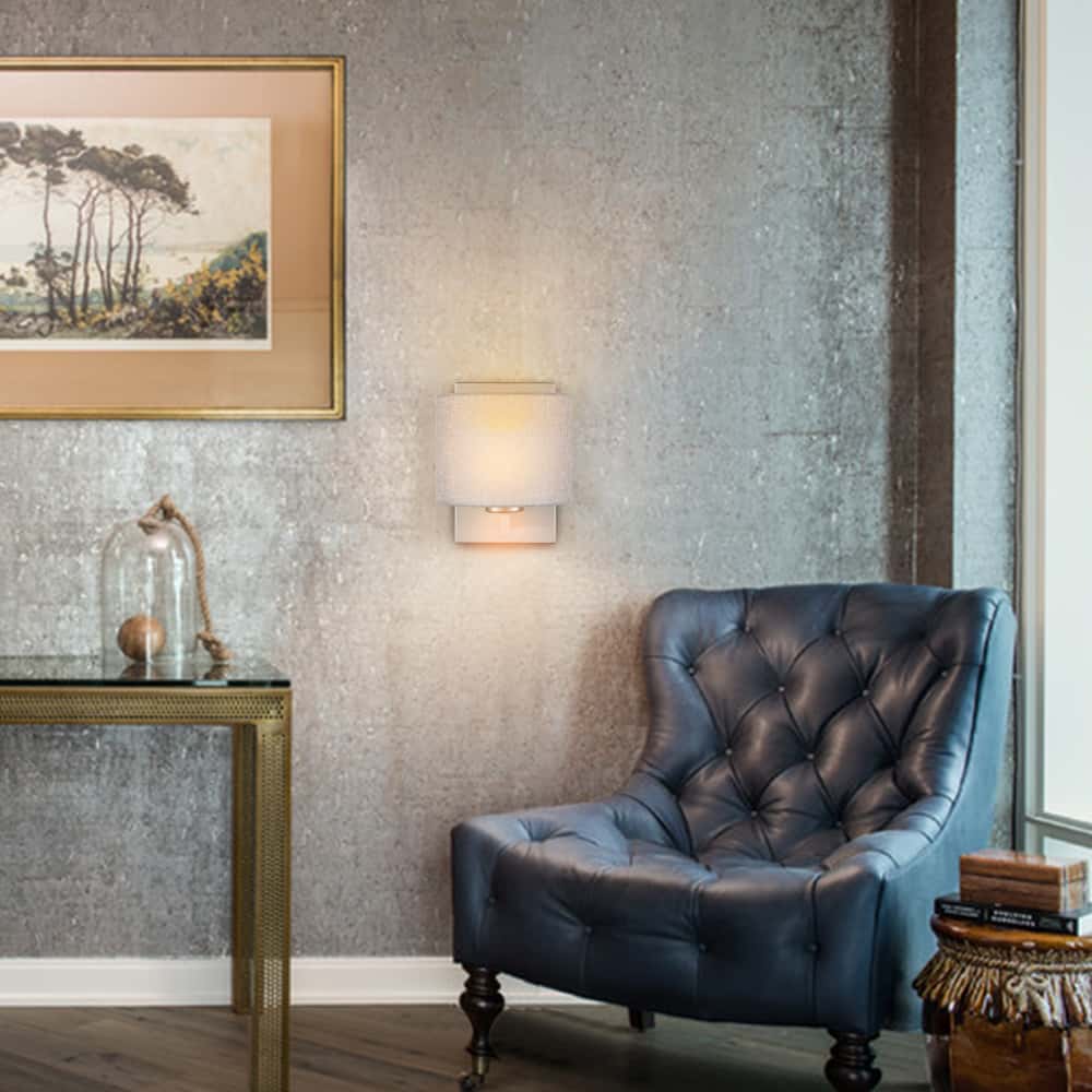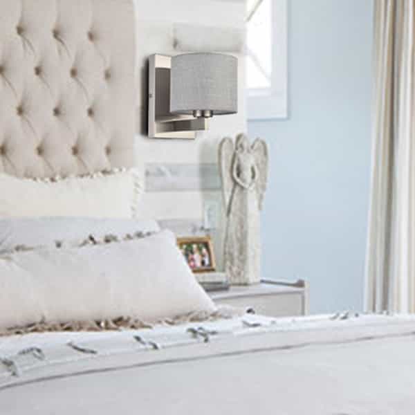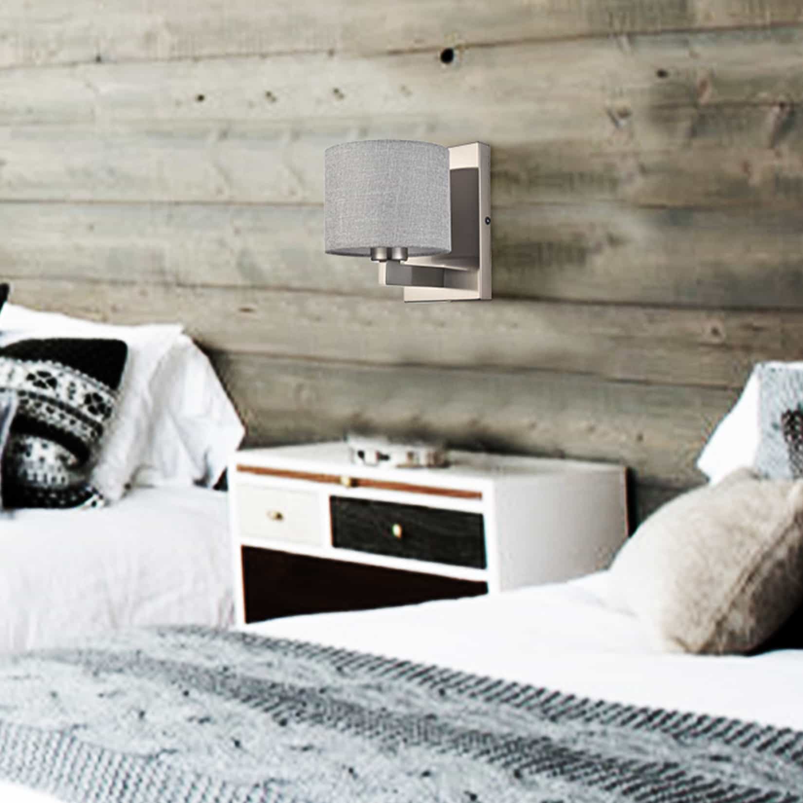 The wall sconces boast a rustproof electroplated brushed nickel finish, invigorating your interior with a boost of brightness. Sporting the covered edge workmanship, their light gray linen cylinder lampshades complete the aesthetic with a large dose of texture. Their rectangular canopies showcase the beauty of geometry and convey a refined touch. The light pouring through the fabric shades is gently muted and distributed evenly, filling the space without any glare. They provide a strong visual presence to the living space and stand out and shine on their own with their glossy accent.