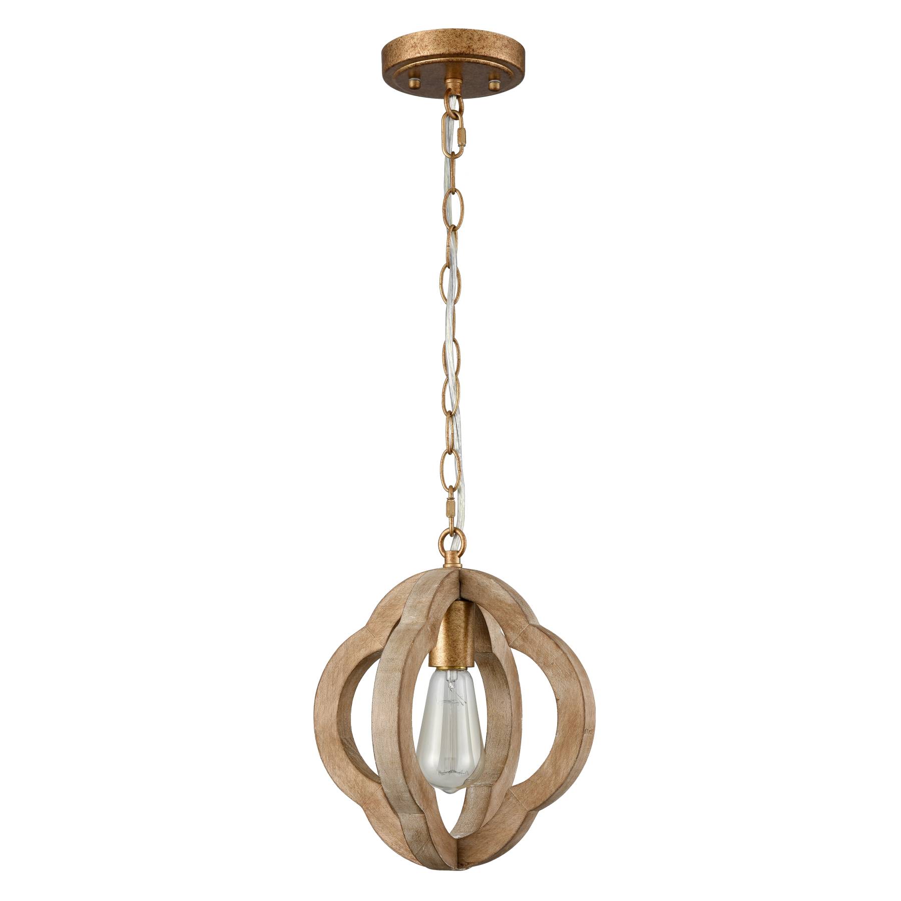 The farmhouse brown wooden pendant light’s canopy, chain, and lamp holder sport a rusty gold finish, delivering a boost of sparkle to the space. Its wooden lampshade gives the space a hint of rusticity with an antique brown finish. Its beautiful dual finish encompasses both nature-inspired qualities and shimmery accent, yet maintains a farmhouse edge. Offering an eye-catching airy design, it brings a ton of eye appeal to your home with two intersecting quatrefoil-inspired frames. Add this striking piece to your bar, bedroom, dining room, entryway, foyer, hallway, kids room, kitchen, and living room.