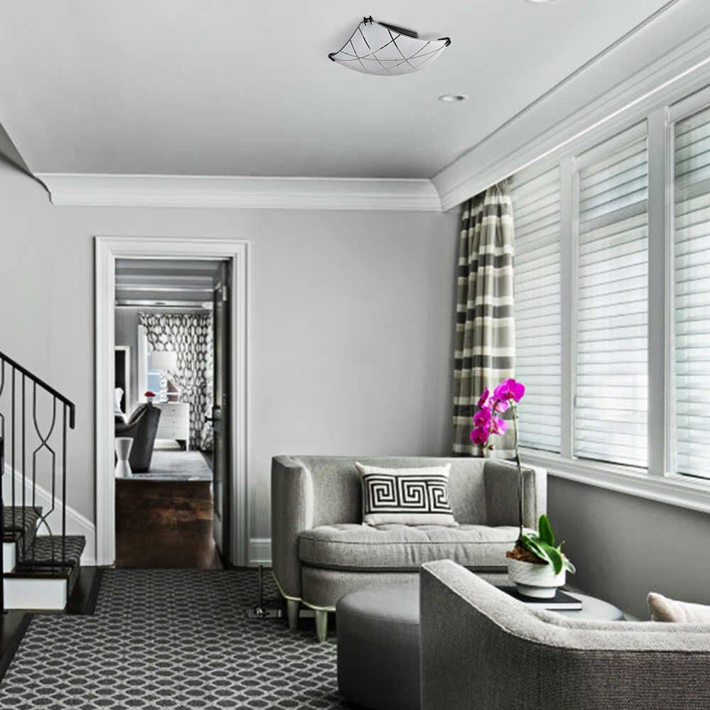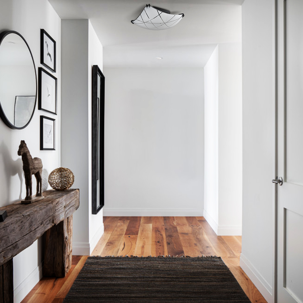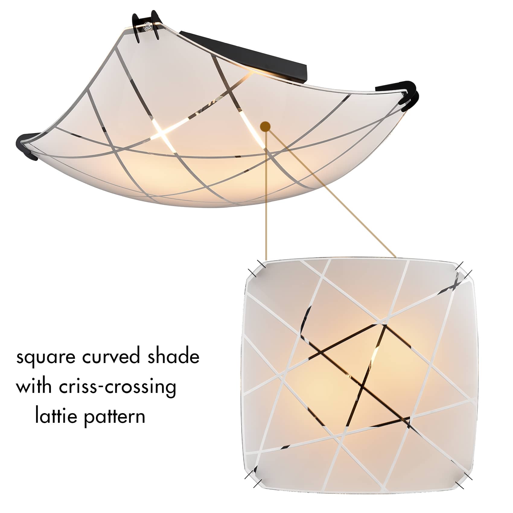 This 2-light fixture features a black finish with a square, curving criss-cross pattern, adding visual interest and elegance to any room. It provides ample lighting while creating a warm and inviting atmosphere. Easy to install and well-constructed, this ceiling light is ideal for living rooms, kitchens, or entryways.