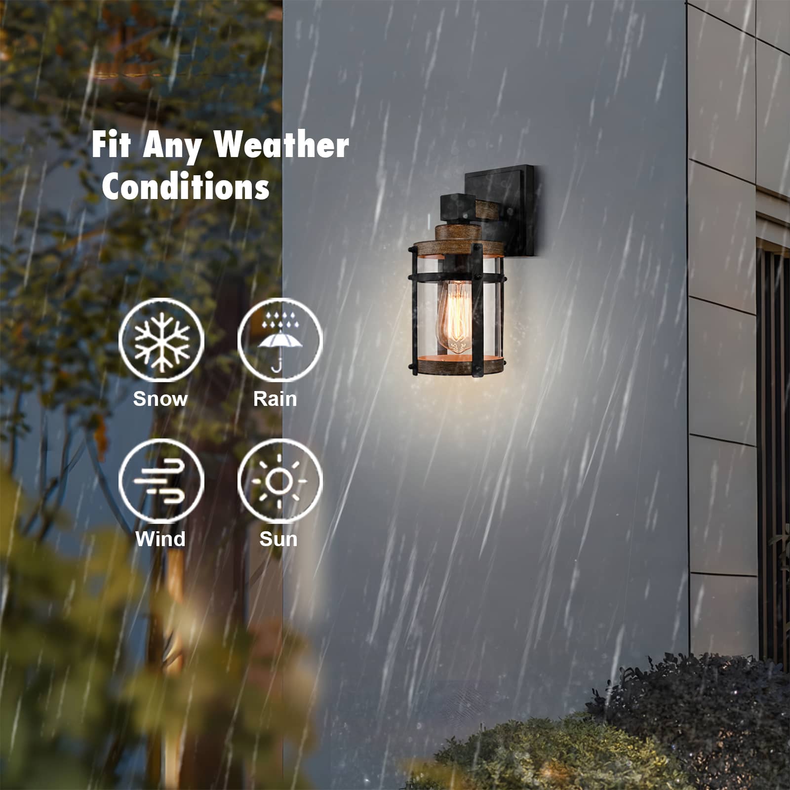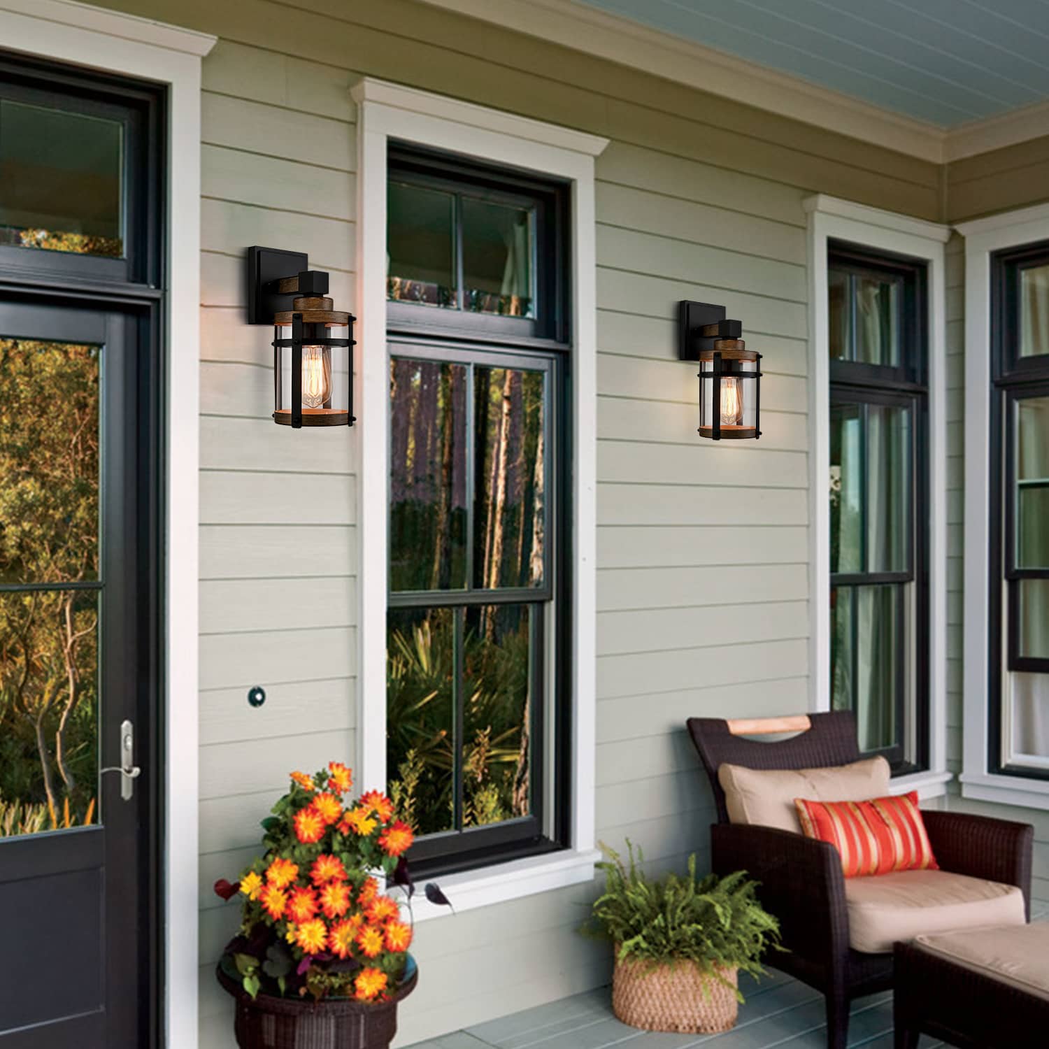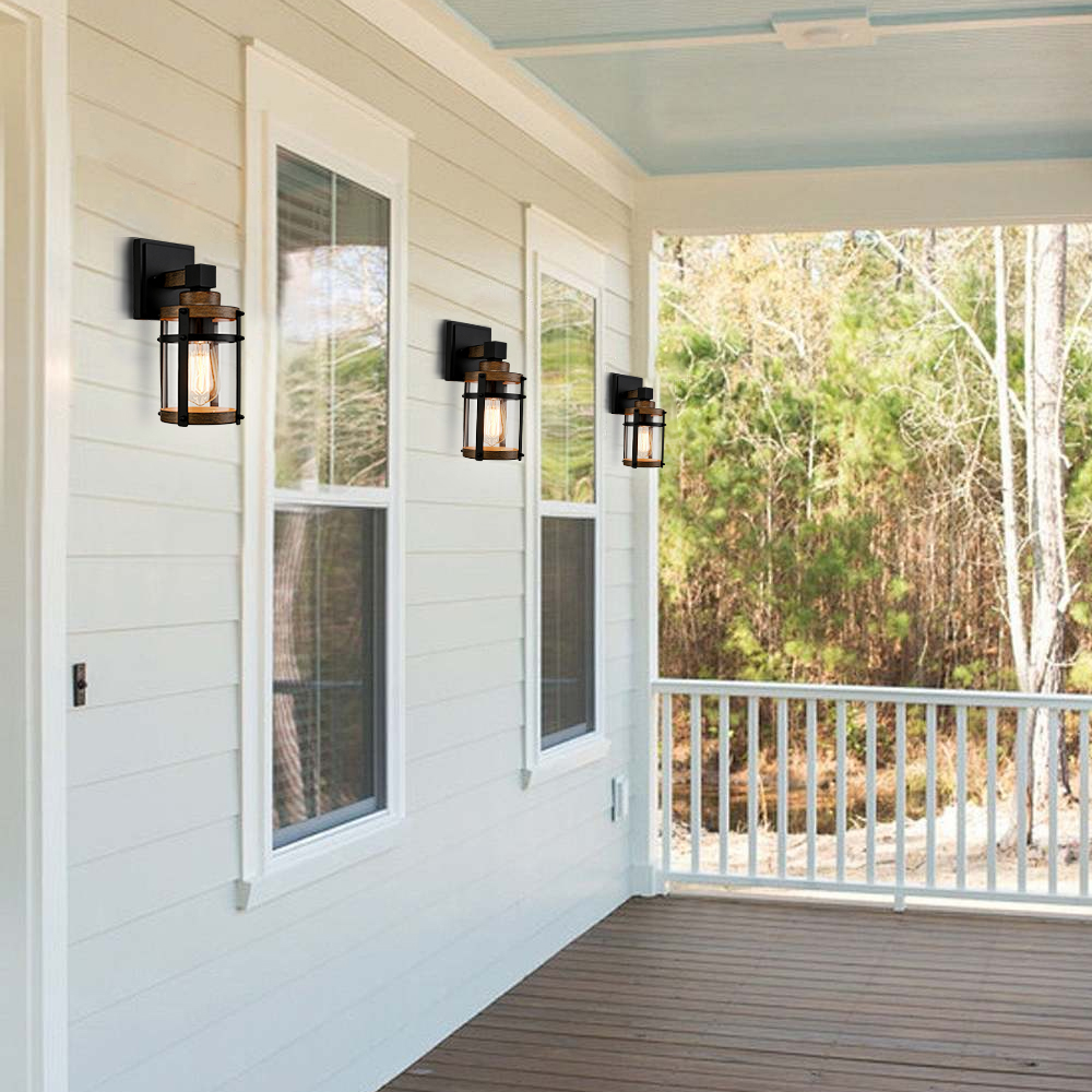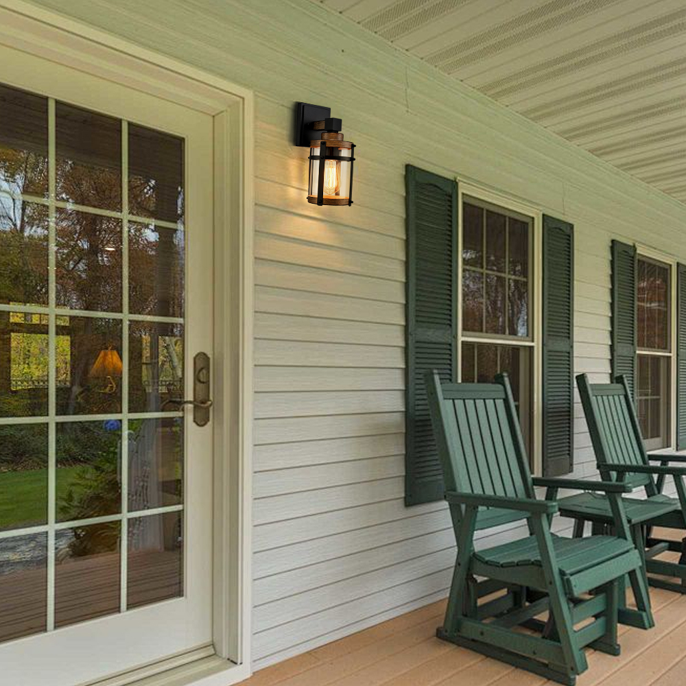 The outdoor wall sconce’s canopy, lamp holder, and intersecting framing accents gracefully embracing the glass shade gives your alfresco space a touch of modern sophistication with a matte black finish. The other parts of the wall sconce add a ton of texture to the alfresco space with a brown finish. A mix of finishes encompasses both nature-inspired qualities and farmhouse elements, yet maintains an industrial edge. Its cylinder clear glass shade shows off the beauty of geometry and conveys a refined touch to the space. The black finish contrasts the brown hue on the light and adds alluring eye appeal to the alfresco space. Its open bottom design makes it particularly easy for bulb replacement and cleaning. Being weather-resistant, it is perfect for outdoor use.