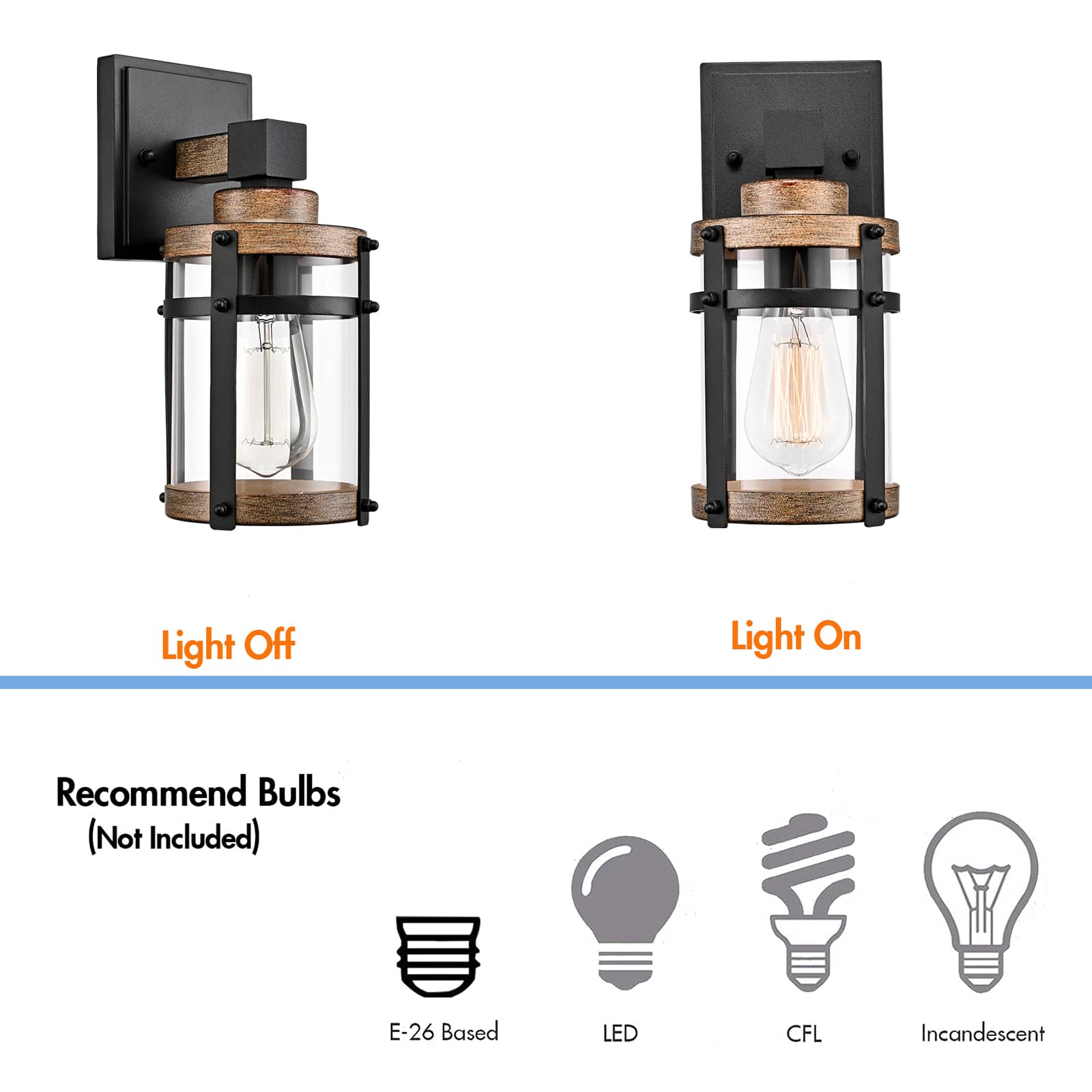 The outdoor wall sconce comes with 1 E26-base socket, which is compatible with a variety of bulb types: LED, INCANDESCENT, CFL.