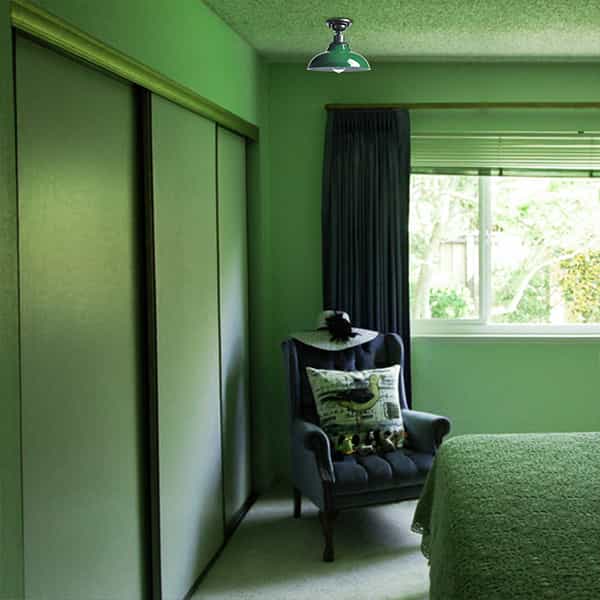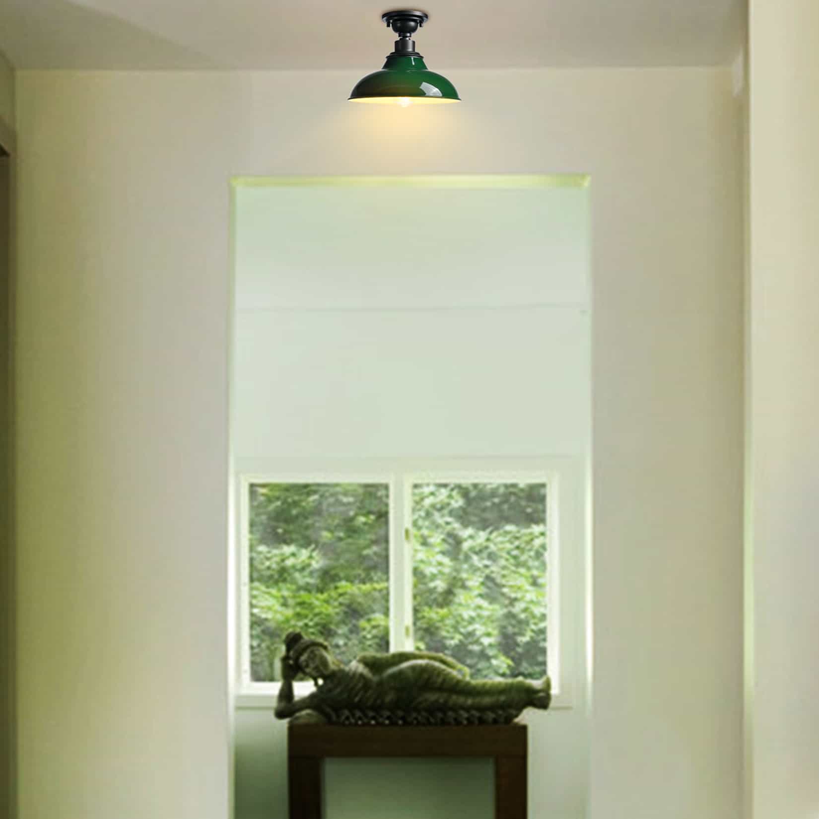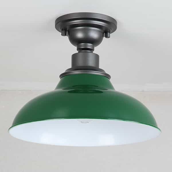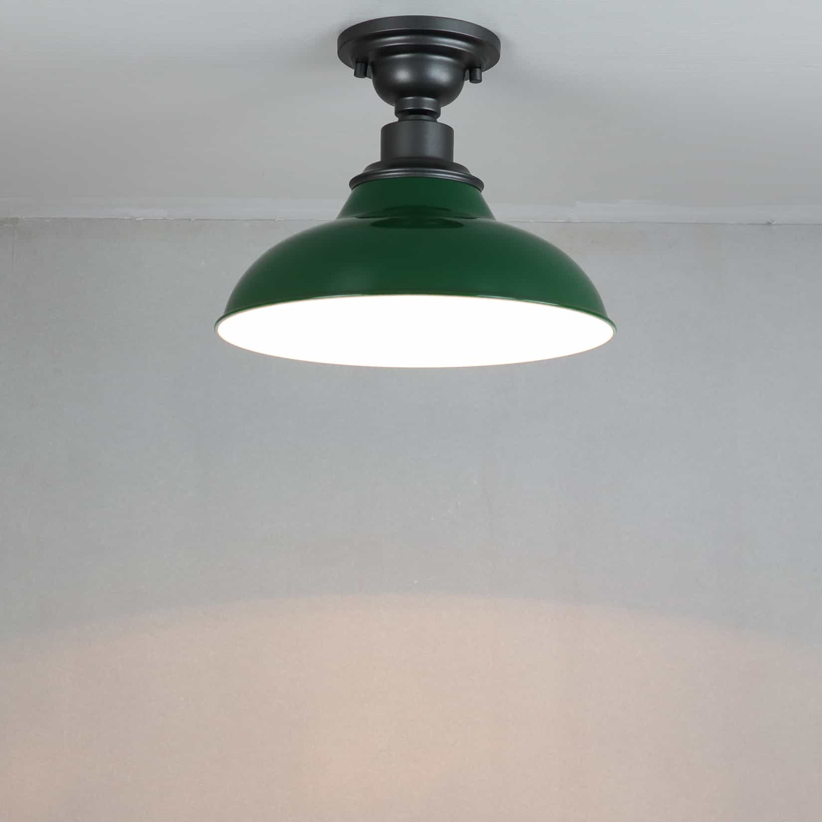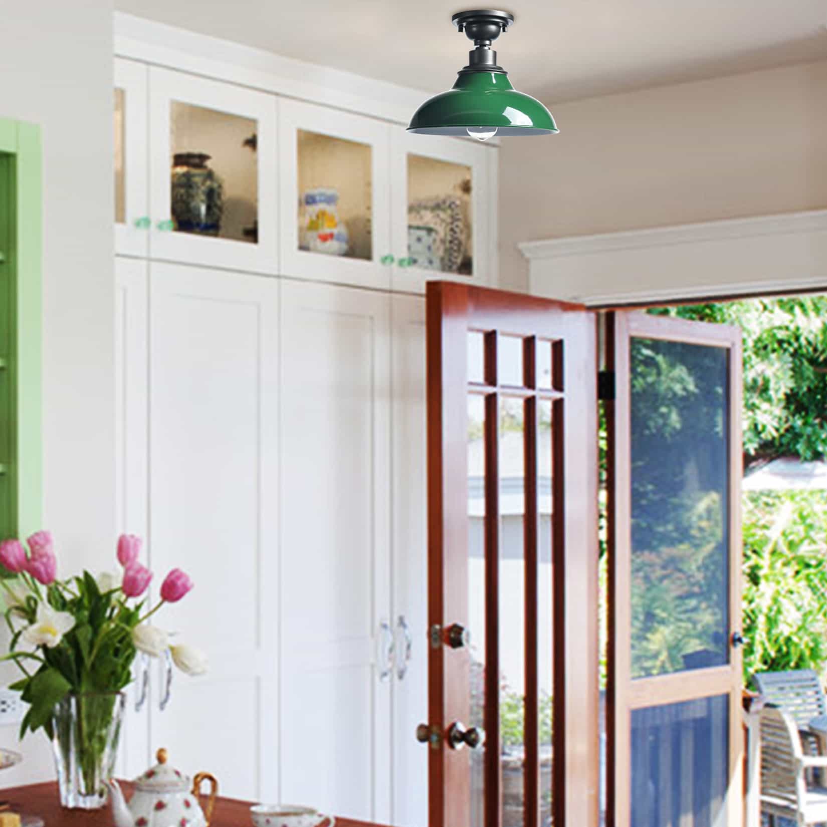 The farmhouse ceiling light’s canopy and lamp holder are coated in a dark gray finish while its barn shade flaunts a green finish. Its mix of finish encompasses both a dash of drama and a touch of rusticity, yet maintains an industrial edge. Its green lampshade gives your home a snappy look and a glamorous, refreshing vibe. It sports a durable green finish and a barn shade to bring a bit of factory-inspired elements to your living space. Its dark gray finish offers a stark contrast to the green finish and adds alluring eye appeal to the space.