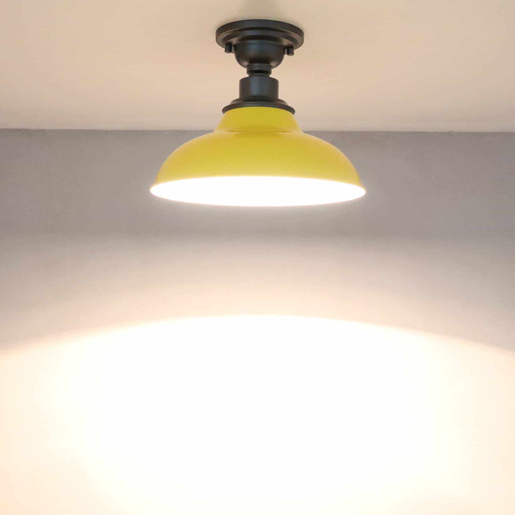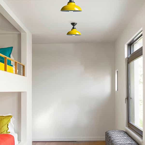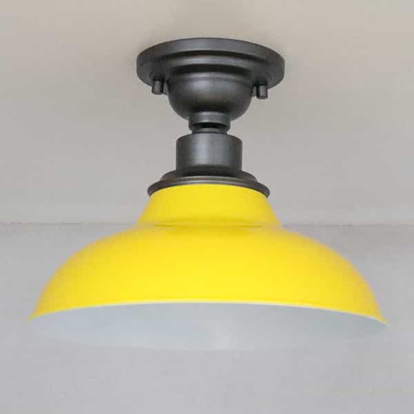 The farmhouse ceiling light’s canopy and lamp holder are coated in a dark gray finish while its barn shade flaunts a yellow finish. Its mix of finish encompasses both a dash of drama and a touch of rusticity, yet maintains an industrial edge. Its yellow lampshade gives your home a snappy look and a glamorous, refreshing vibe. It sports a durable yellow finish and a barn shade to bring a bit of factory-inspired elements to your living space. Its dark gray finish offers a stark contrast to the yellow finish and adds alluring eye appeal to the space.