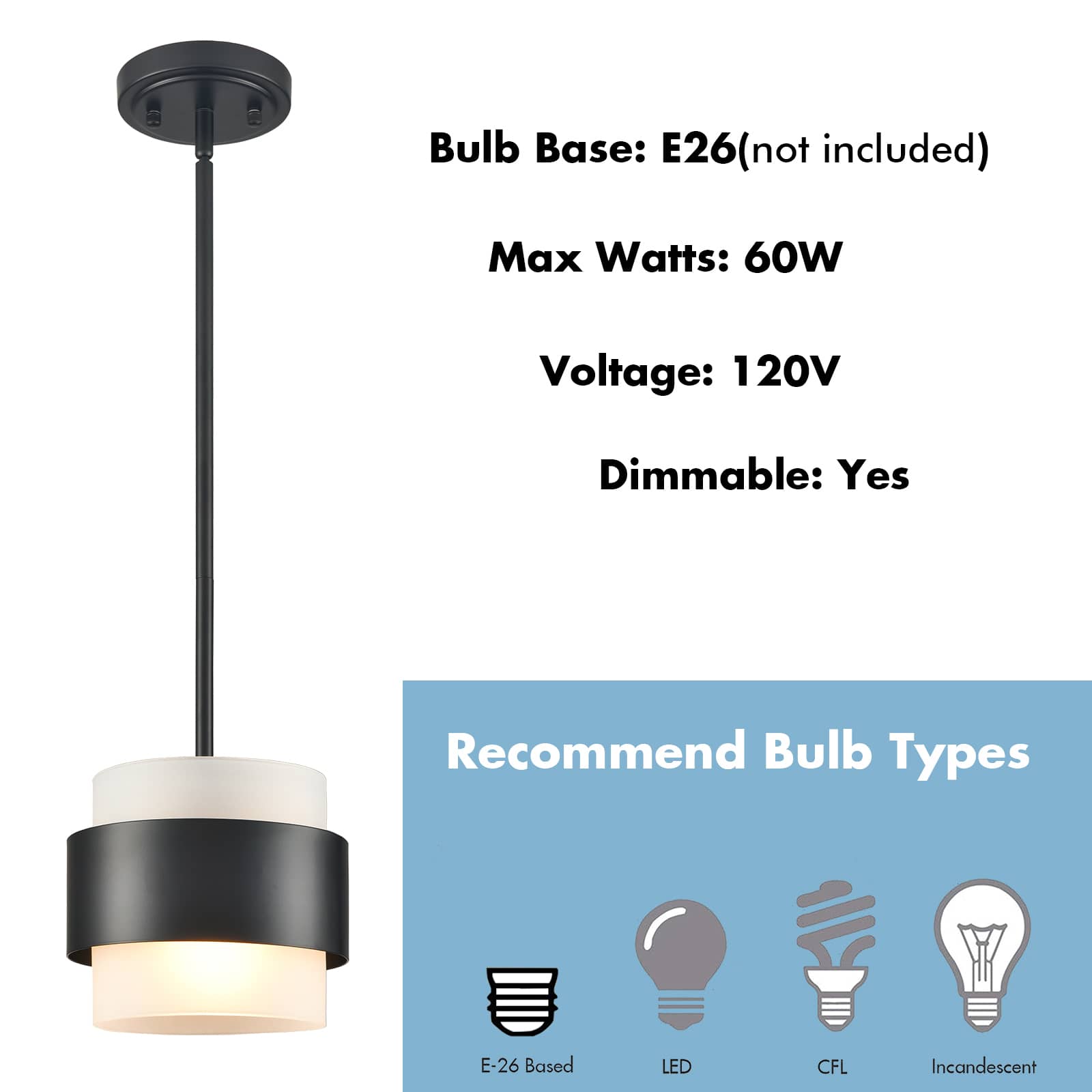 The farmhouse glass kitchen pendant light comes with 1 E26-base socket which is compatible with a variety of bulb types: LED, INCANDESCENT, CFL.