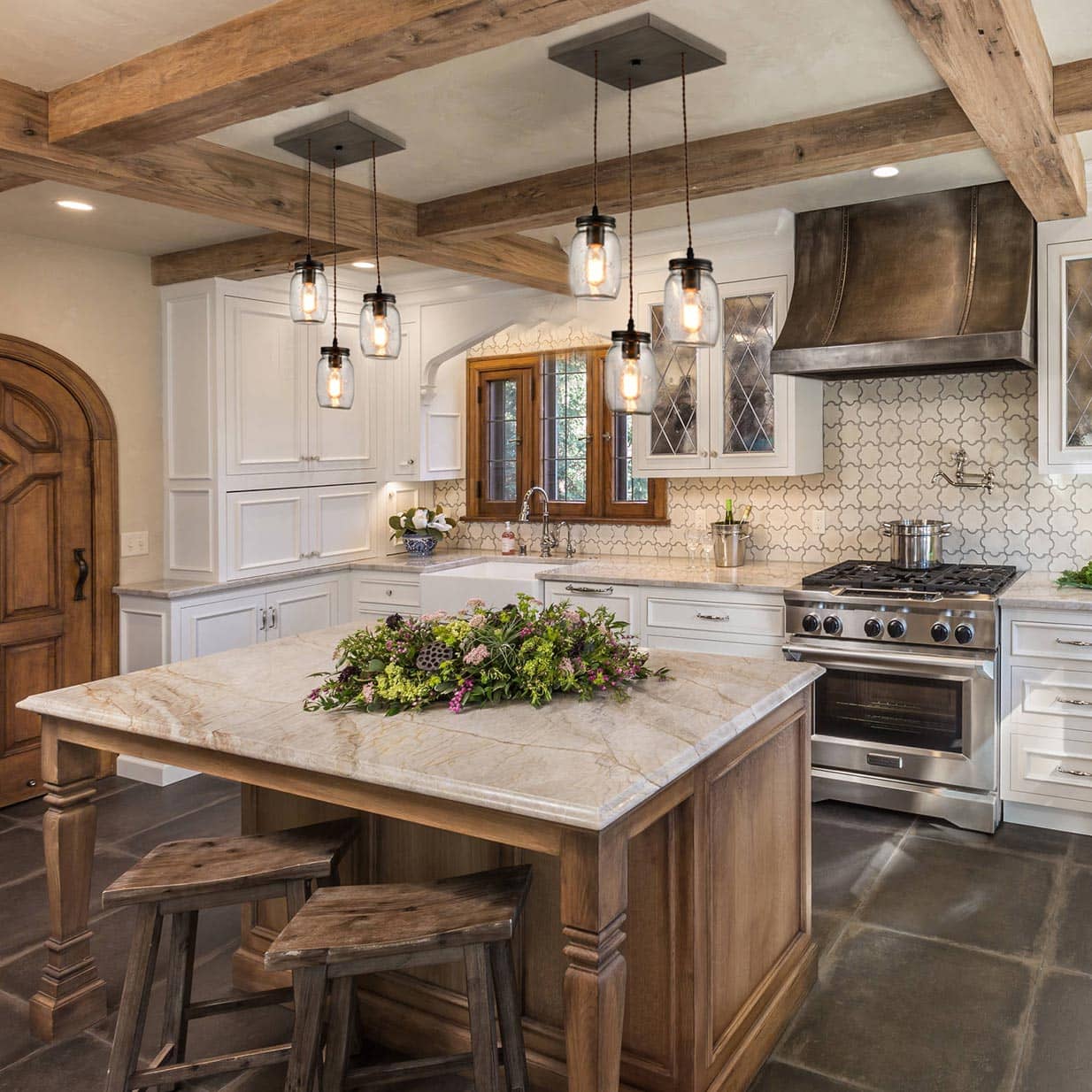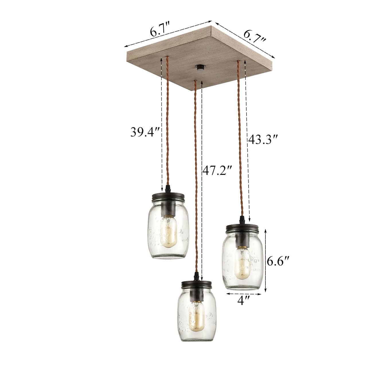 The pendant light’s lamp holders and the lids of mason jars boast an oil rubbed bronze finish, giving a refined timeworn feel to your home decor. Crated of impurity-free clear class, three shades are suspended from a square oak wood canopy finished in distressing off-white, delivering a stunning visual effect to your interior.
