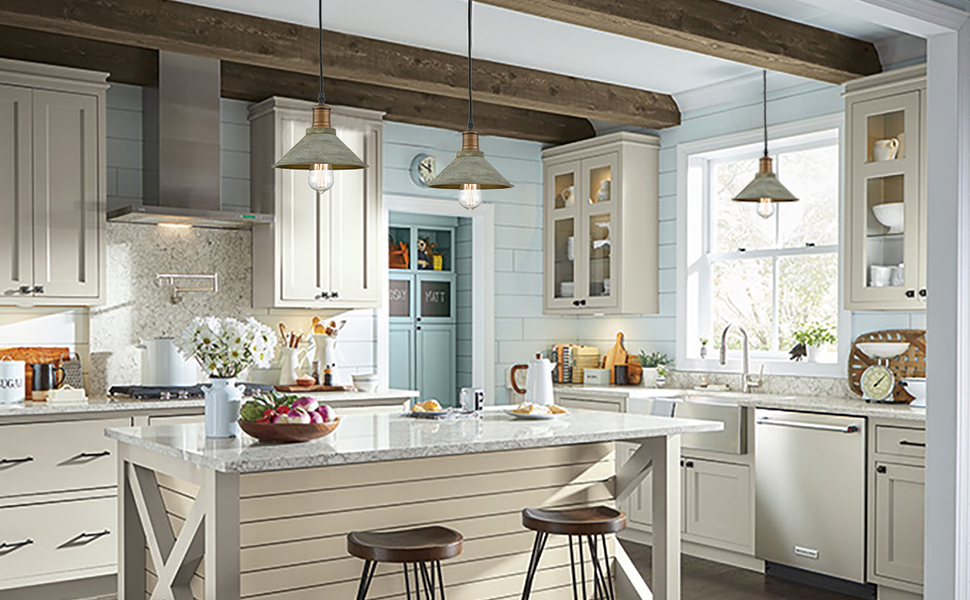 The farmhouse mini pendant light’s canopy and lampshade flaunt an antique gray finish while the interior of the lampshade is finished in brass, conveying a hint of rusticity to your living space. Crafted with solid metal and featuring exquisite workmanship, it is durable and rustproof. Its lamp holder is dressed in a bronze finish for a vintage appeal. The pendant light’s mix of finishes encompasses both farmhouse-inspired qualities and classic elements, yet maintains an industrial edge. It is a lovely addition to your space with a mix of finishes. It comes with a 47.24-inch adjustable braided fabric cord.