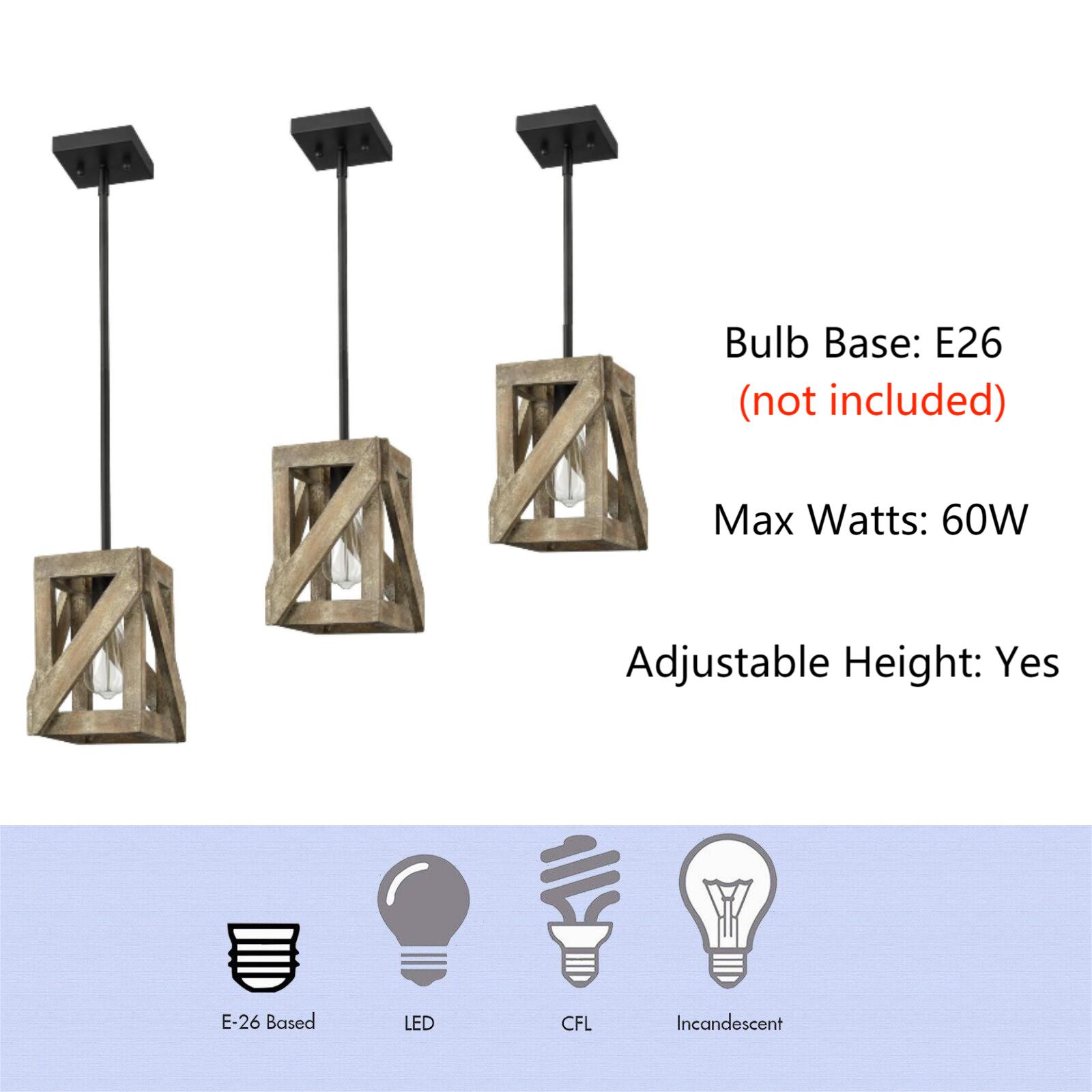 The farmhouse pendant light fixture comes with 1* E26-base socket which is compatible with a variety of bulb types: LED, INCANDESCENT, and Edison bulbs.
