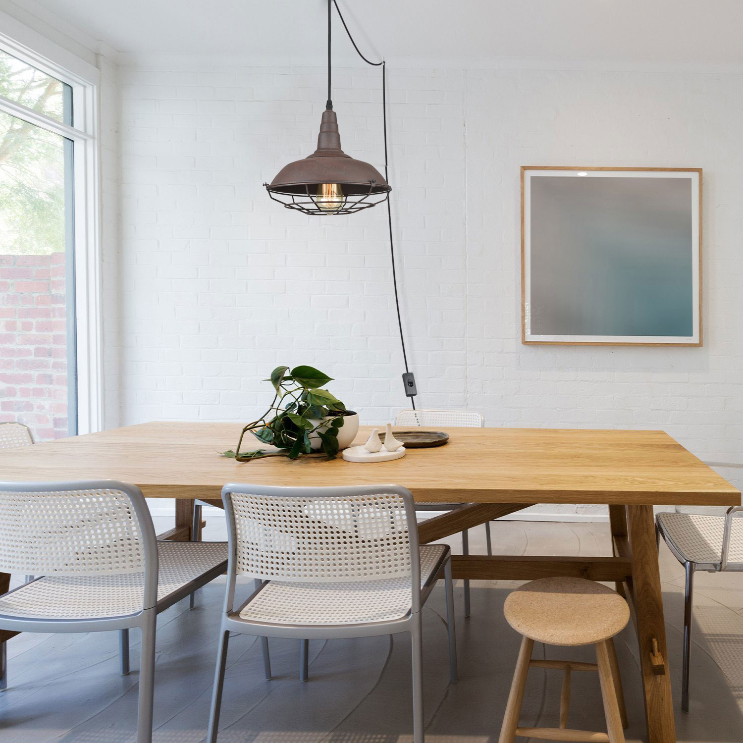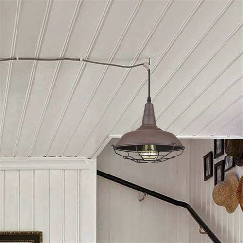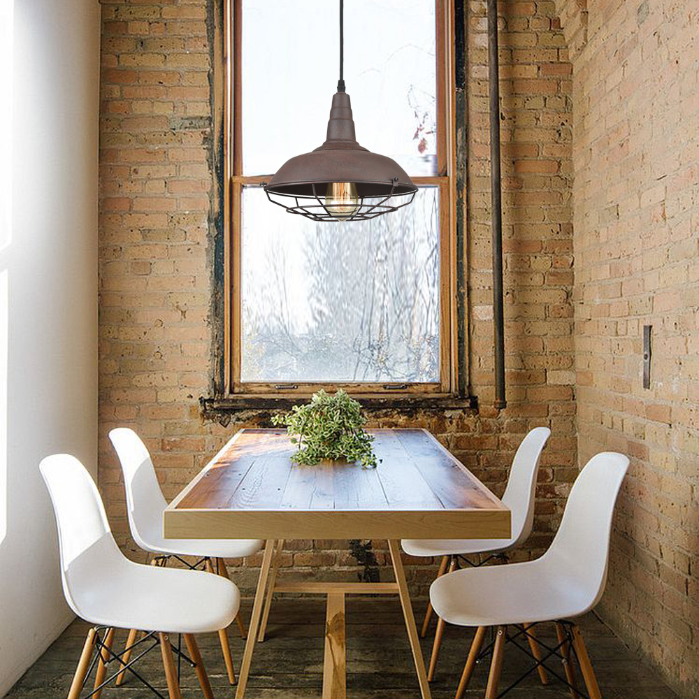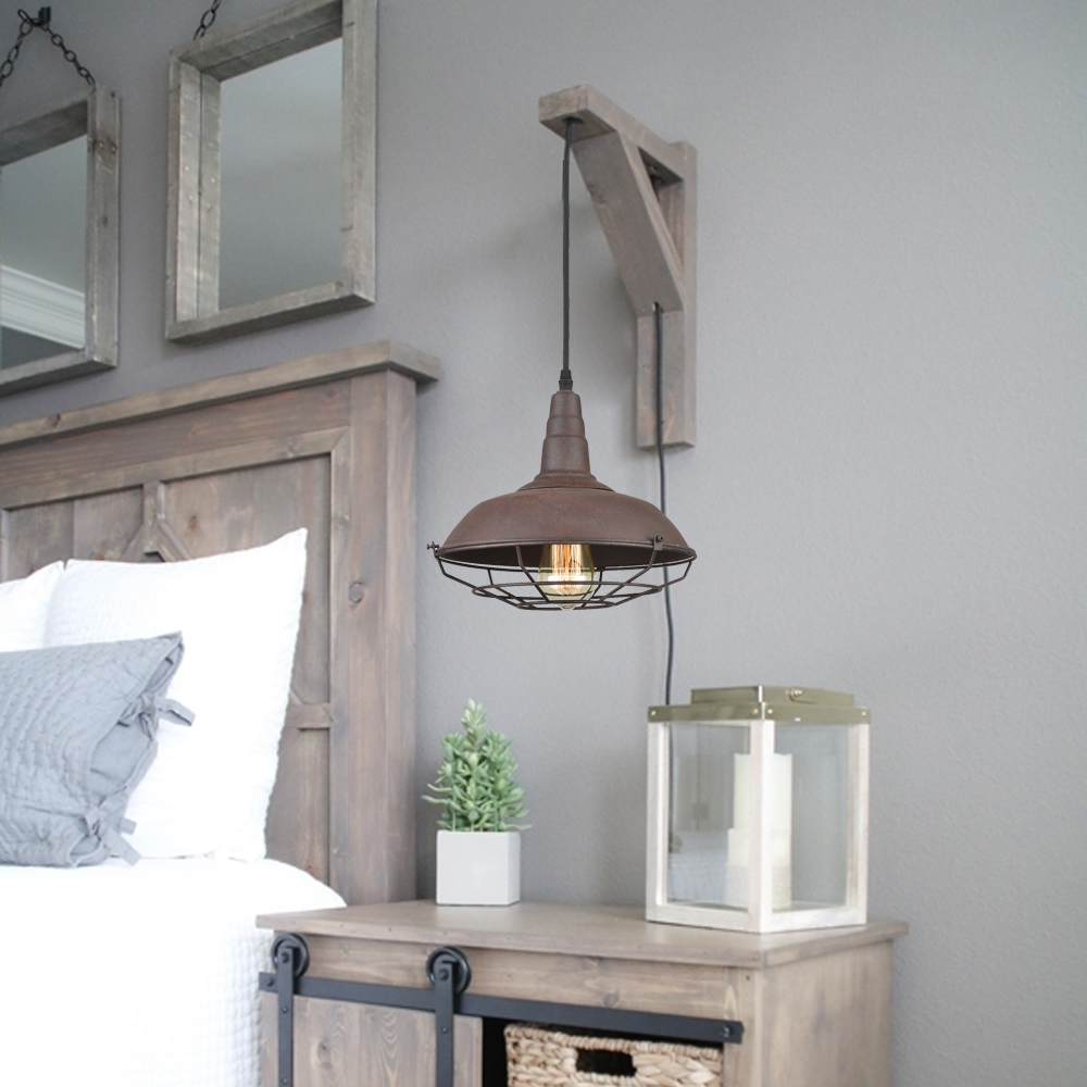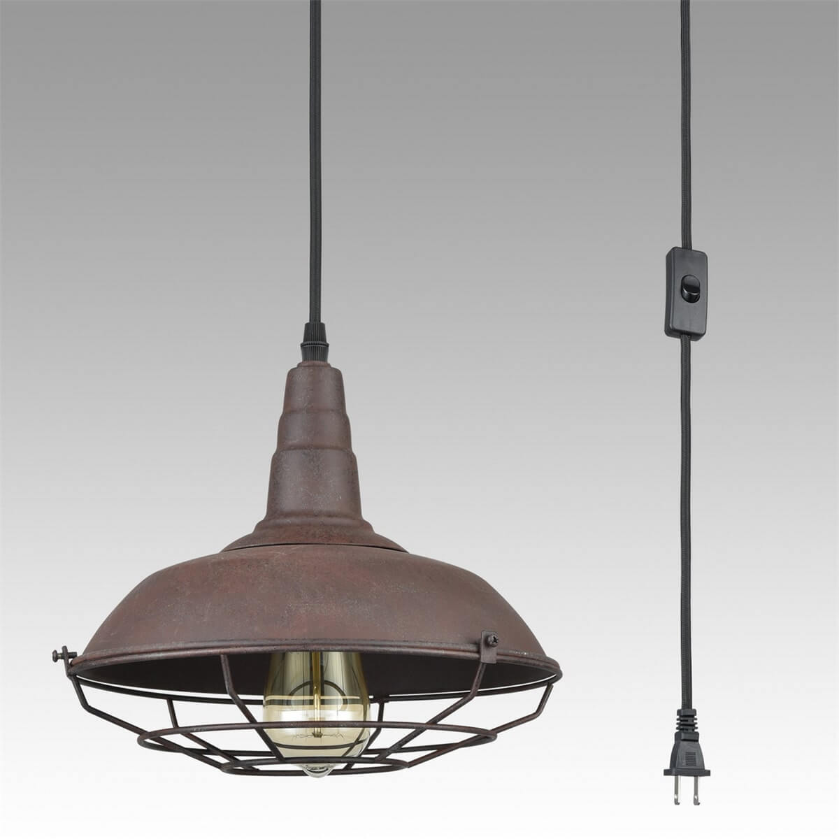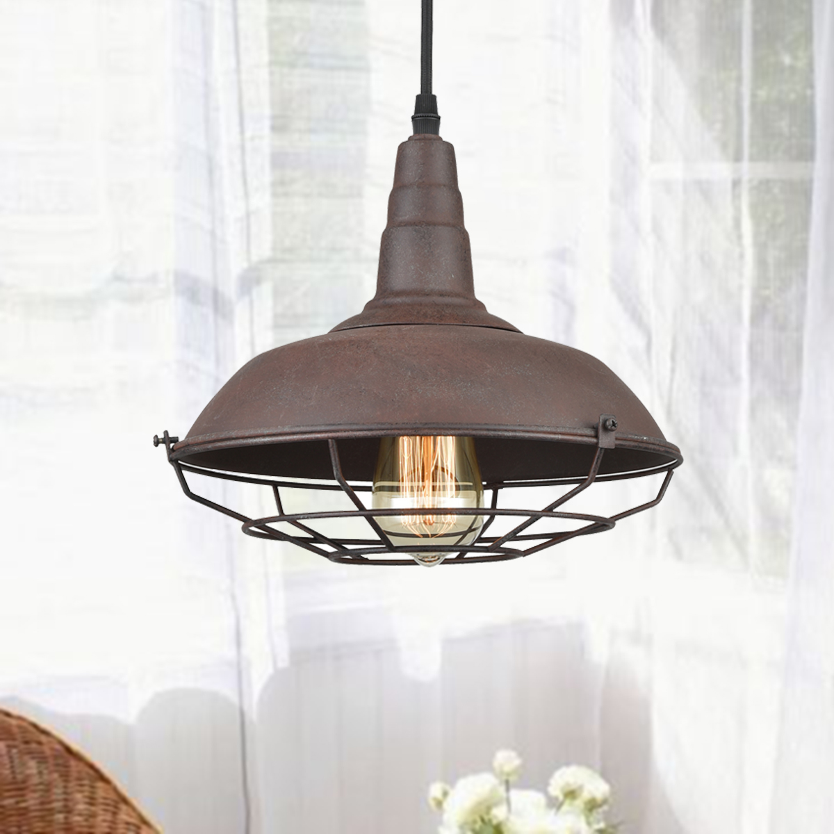 Crafted with solid wrought iron, this farmhouse plug-in pendant light’s rust finish brings a distinct rustic style to your living space. This pendant light’s exquisitely welded metal cage shade injects a large dose of industrial chic into your home decor. Featuring fine workmanship, this farmhouse pendant light with a metal cage shade is durable and sturdy. You can easily turn on/off the pendant light with the rocker switch on the black fabric power cord.