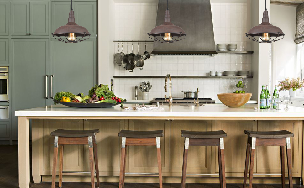 This was the best choice for my old farmhouse. I have two edison lights on either side of my 8 ft kitchen window and this rustic pendant is so charming and matches perfectly... Even feels rusty....I added a dimmer switch for the Edison Bulb I bought to go with this light. It's perfect, it's charming, just buy it.