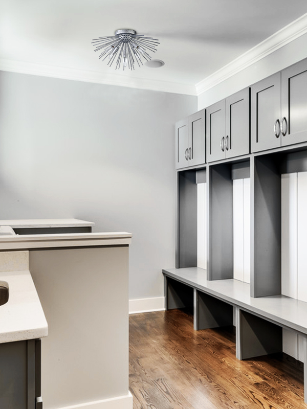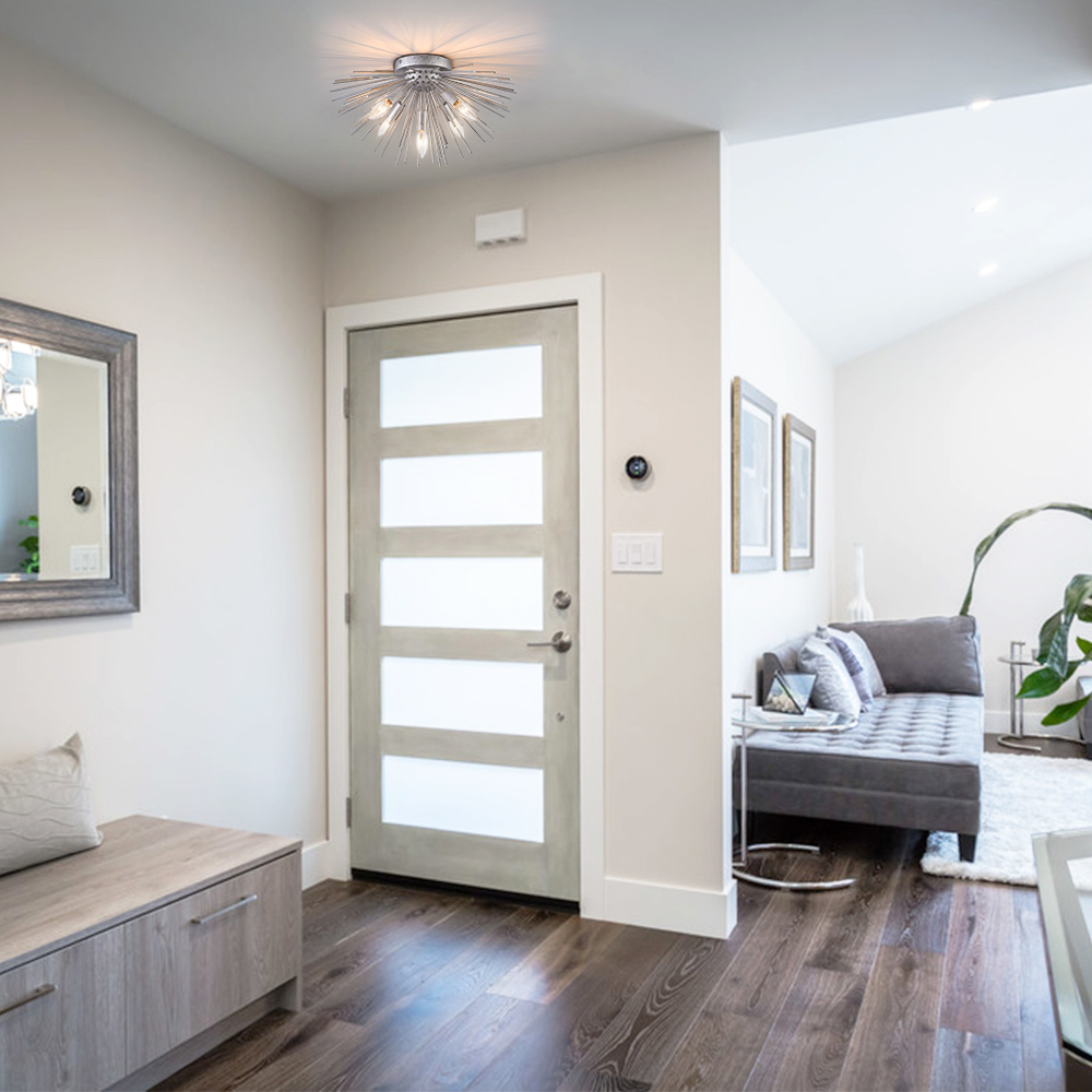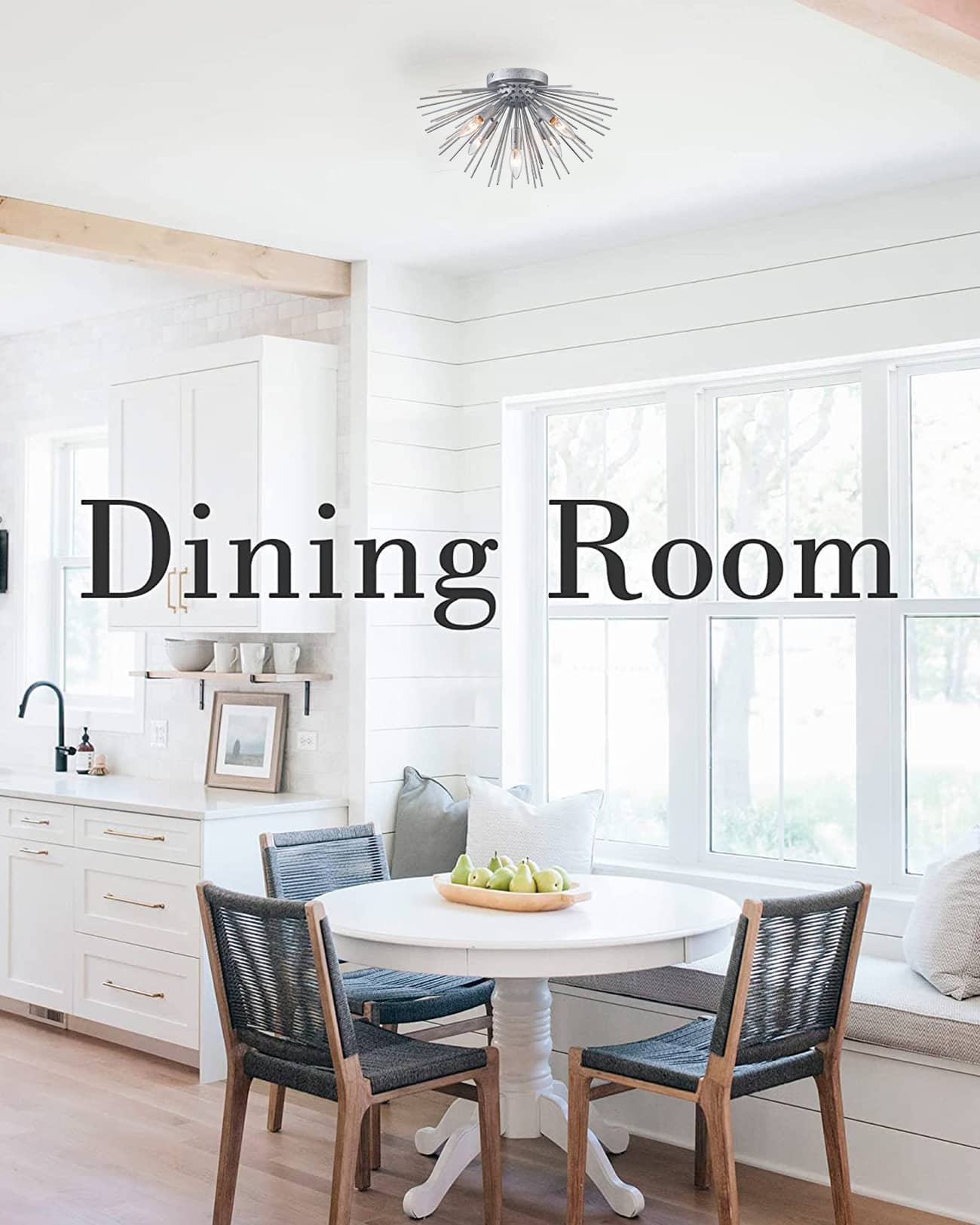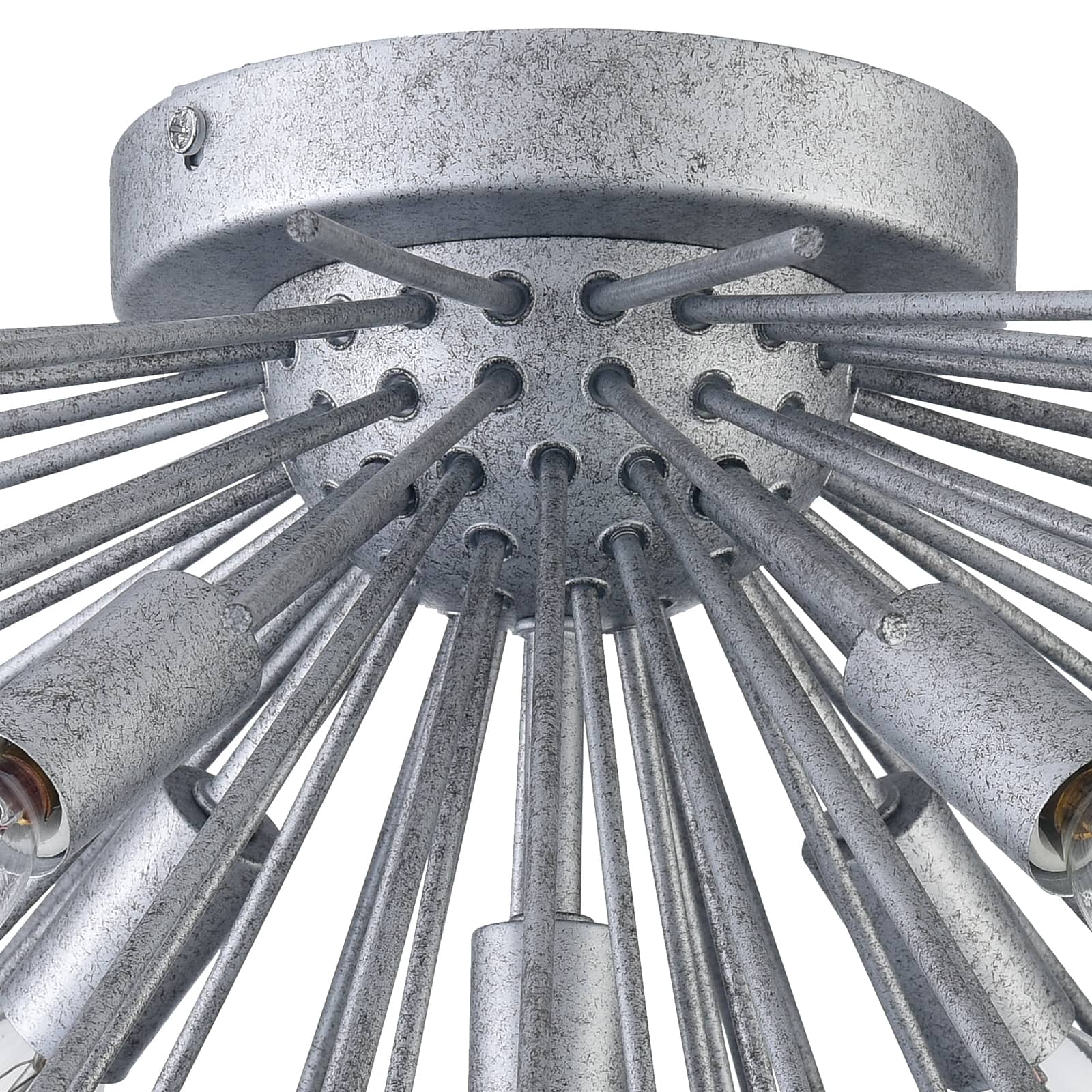 Boasting a distressed silver finish, the sputnik flush mount ceiling light brings a dash of drama and an industrial touch to your home. It sports pointed, spindly arms intermingled with other arms fitted with an exposed bulb. A multitude of metal arms of varying lengths that jut out from the center make for an alluring, sophisticated silhouette. Showing off a stunning starburst design, it provides depth, character, and a whimsical touch to your space.