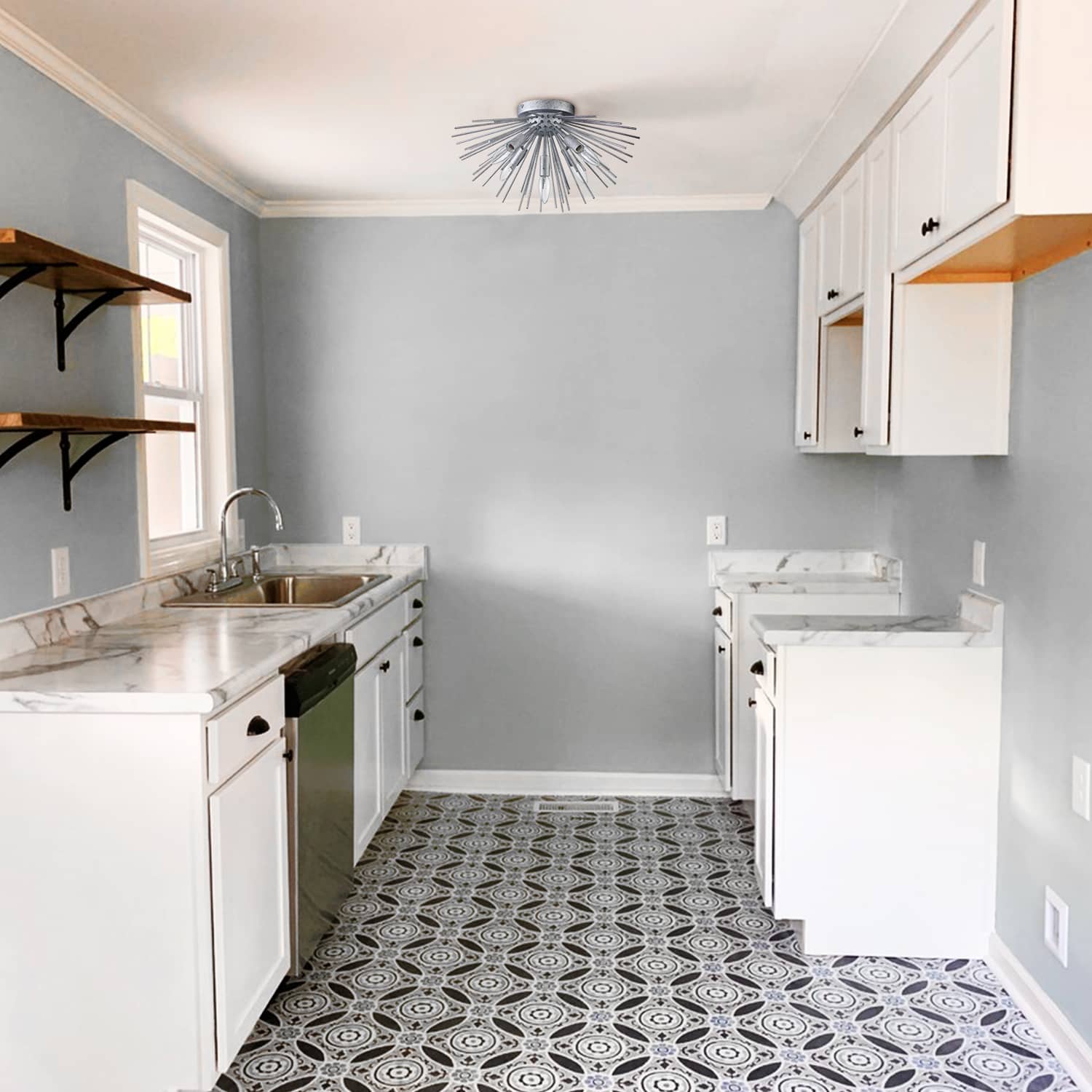 This is the perfect statement piece ceiling light! It’s easy to put together and comes with instructions and needed hardware. If you needed a different color, you could even spray paint it!