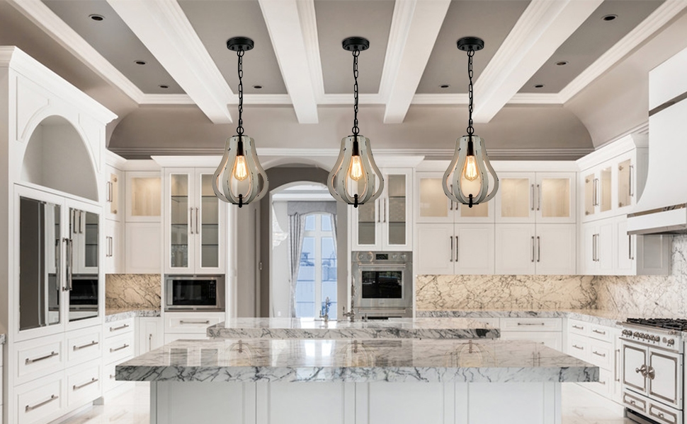 Crafted from weathered oak, the wooden pendant light flaunts an antique wooden frame and distressing off-white finish with blackish tinges, introducing a dash of farmhouse vibe to your home. Four curvy wood slats are put together to form a pear shape, bringing a ton of eye appeal to your aesthetic. Featuring exquisite workmanship, the pendant light is durable and rustproof. The pendant light is insect-resistant and corrosion-proof. It serves as a tasteful addition to your overall design scheme with its French country design. It is a striking piece for gracing bar, bathroom, bedroom, dining room, entryway, foyer, hallway, kids room, kitchen, and living room.