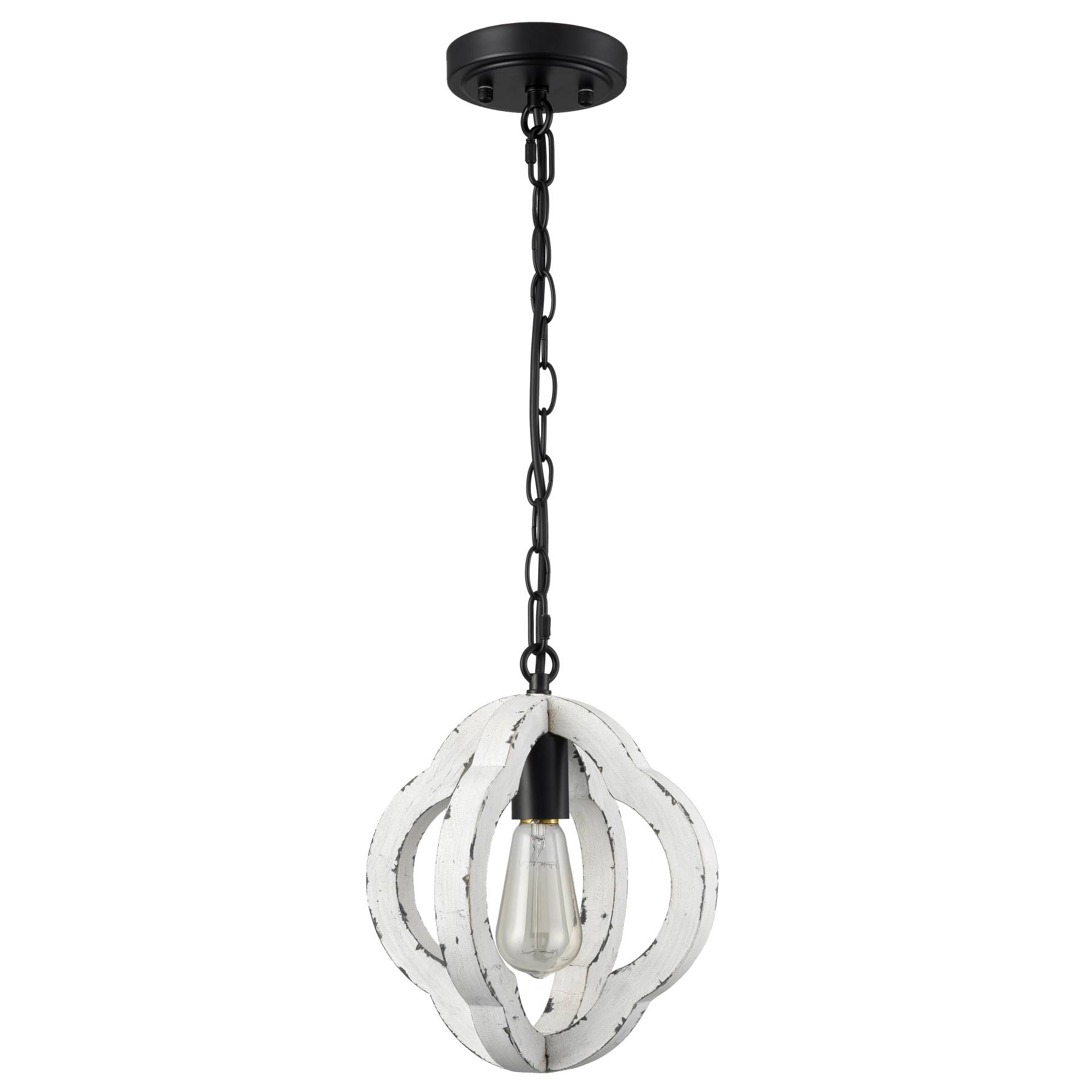 The distressed white wood pendant light’s canopy, chain, and lamp holder sport a semigloss black finish, delivering a dramatic decorative impact to the space. Its wooden lampshade gives the space a hint of rusticity with a distressed white finish. Its beautiful dual finish encompasses both nature-inspired qualities and farmhouse elements, yet maintains an industrial edge. Offering an eye-catching airy design, it brings a ton of eye appeal to your home with two intersecting quatrefoil-inspired frames. Add this striking piece to your Bar, bedroom, dining room, entryway, foyer, hallway, kids room, kitchen, and living room.
