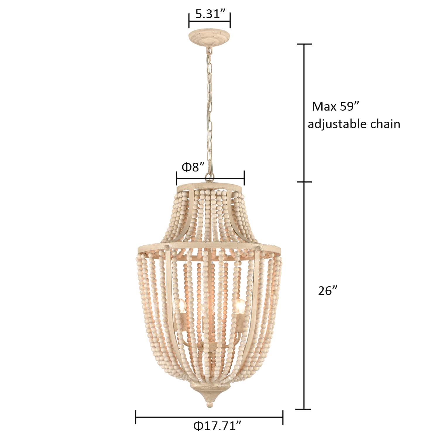 The chandelier’s farmhouse element is further enhanced with its distressed beige finish. Its lovely wood bead detailing and clean lines make the fixture a breath-taking addition to your interior. Capturing attention in a way other fixtures can't, it is definitely an instant conversation starter.