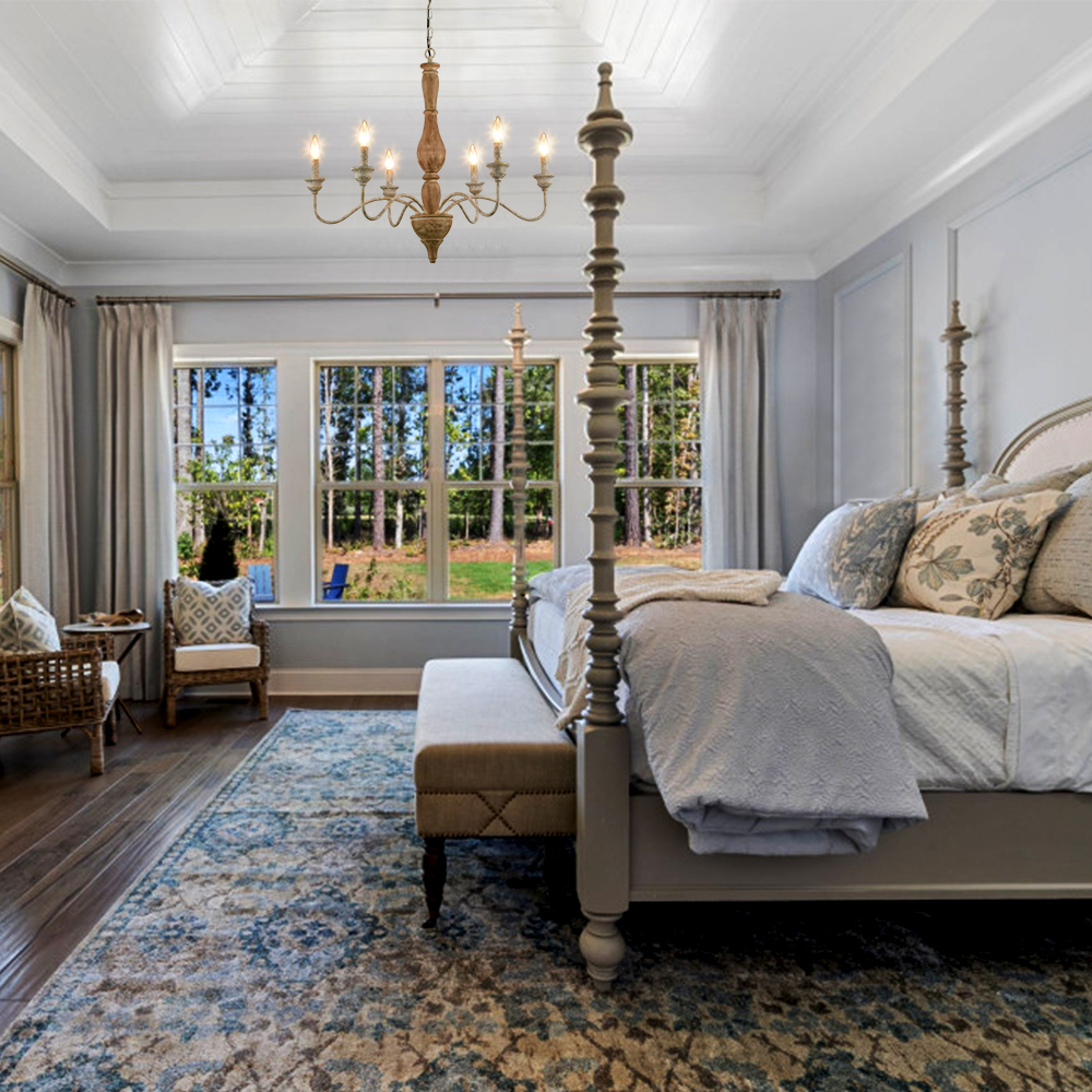 The wooden chandelier light features E12 base socket which is compatible with a variety of bulb types: LED, INCANDESCENT, CFL.