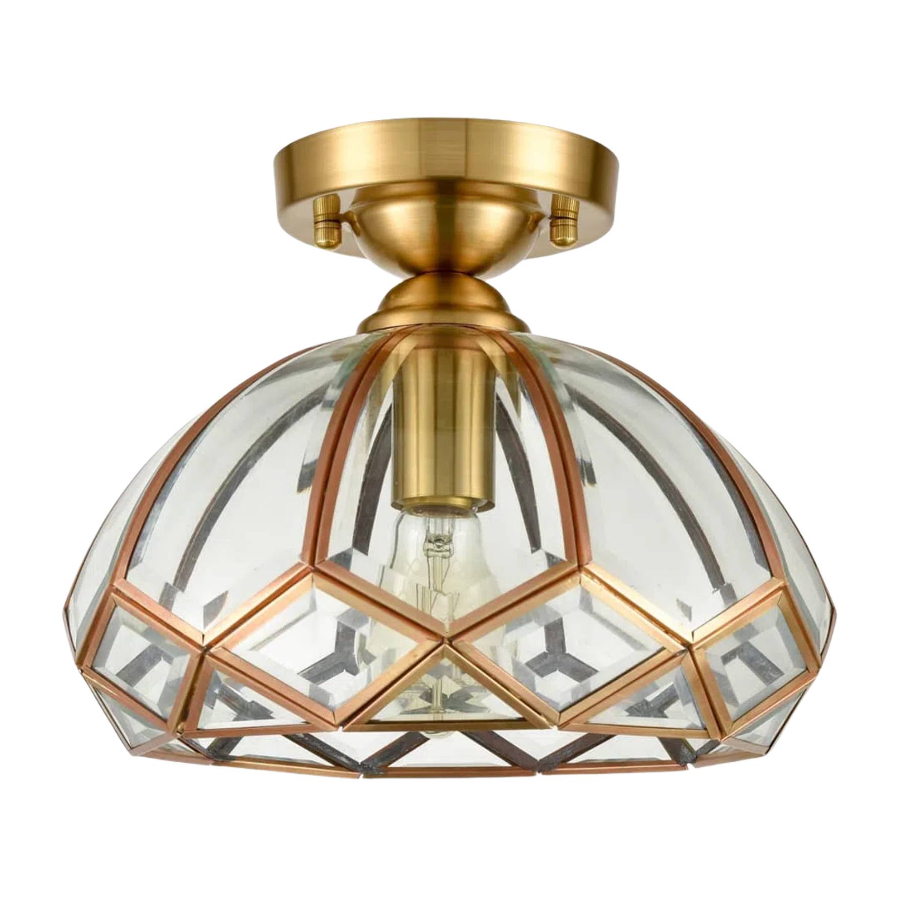 With hand-pasting the glass pieces on the brass metal frame, the flush mount ceiling light distributes lighting and forms beautiful shadow, bringing a stylish flair to your home interior.