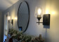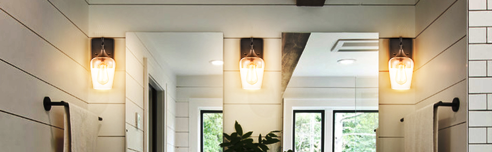 Searched long and hard and struck gold. Easy to install, replaced old outdated ones. Can install upright or globe facing down. Bought the light bulbs recommended, they dim nicely. Look great! Mirror also from amazon