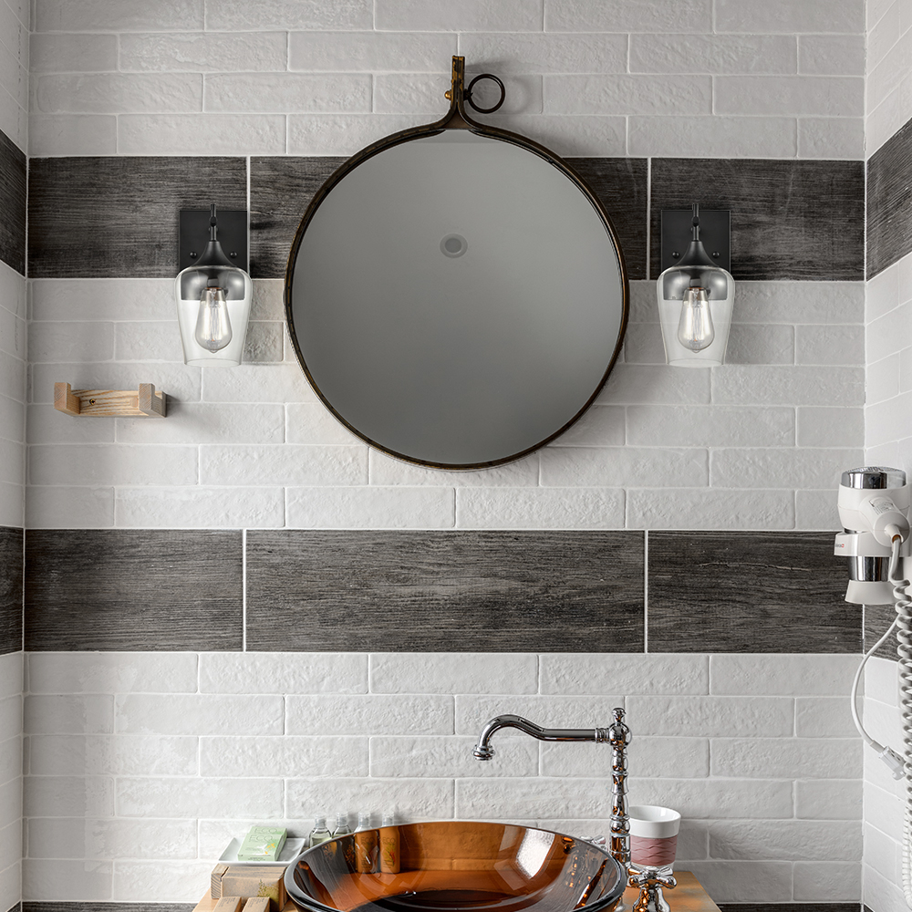 The wall sconces’ backplates, arms, and lamp-holders show off a matte black finish. Crafted of impurity-free hand-blown glass, their clear glass shades are exquisitely embedded into the arm, making a tasteful statement in your aesthetic.
