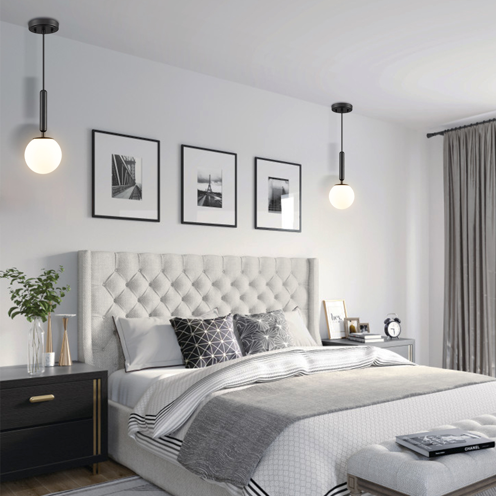 The globe pendant light’s canopy, hanging cord, and lamp-holder showcase a semigloss black finish, conveying understated glamour to your home. Crafted from impurity-free hand-blown opaque opal glass, it provides the perfect blend of mid-century modern element and classic touch. Offering a sleek sphere silhouette, the globe pendant light completes the aesthetic with an elegant vibe. Its opal glass shade contrasts the black finish and adds alluring visual interest to the living space. It is a stunning addition to your home with its modern sophistication. It serve as a statement piece for gracing your bedroom, dining room, entryway, hallway, and kitchen. It comes with a 47.2-inch adjustable cord.