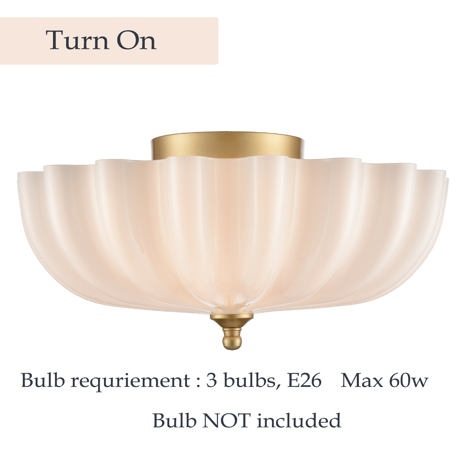 Flaunting a gold finish, the 3-light ceiling light livens up your home with a nice pop of brightness. The light fixture’s milk glass shade with the softened, elegant grooves gives your living space a dose of whimsy and artistic charm. Its gold finish glistening finish offers a stark contrast to the milk glass shade, adding charisma and drama to the space. The amazing texture of the glass shade is the perfect finishing touch for your home. The milk glass shade with the softened, elegant grooves diffuses a soft, subdued light and casts intricate shadows. It adds depth and character to the space, creating an alluring eye appeal.